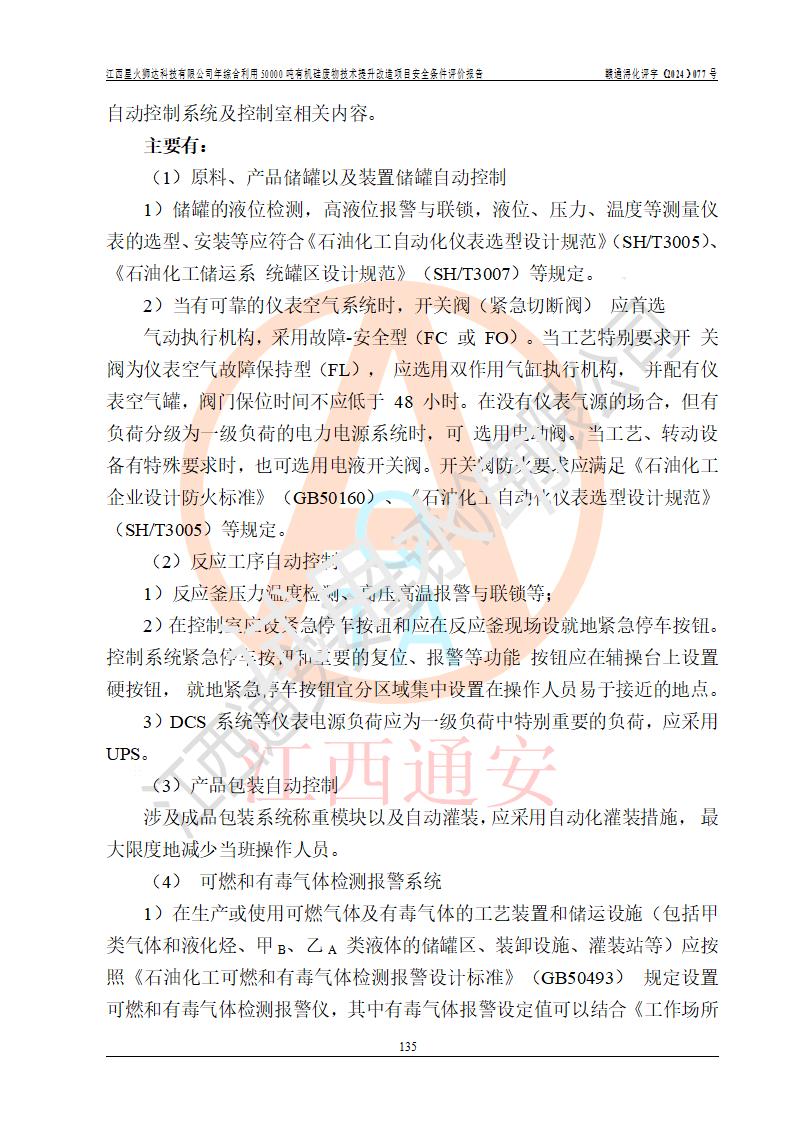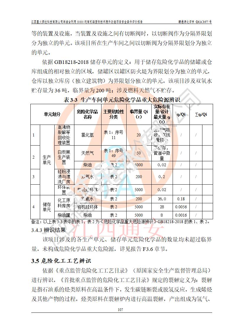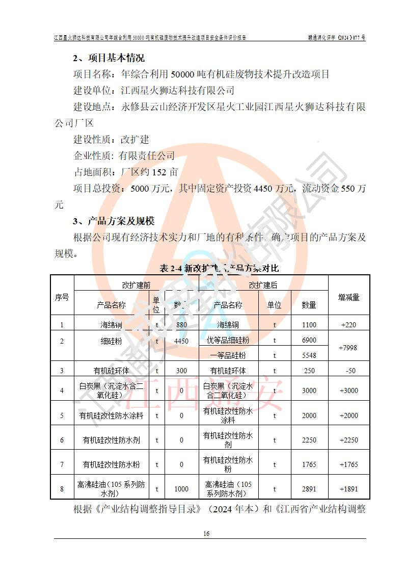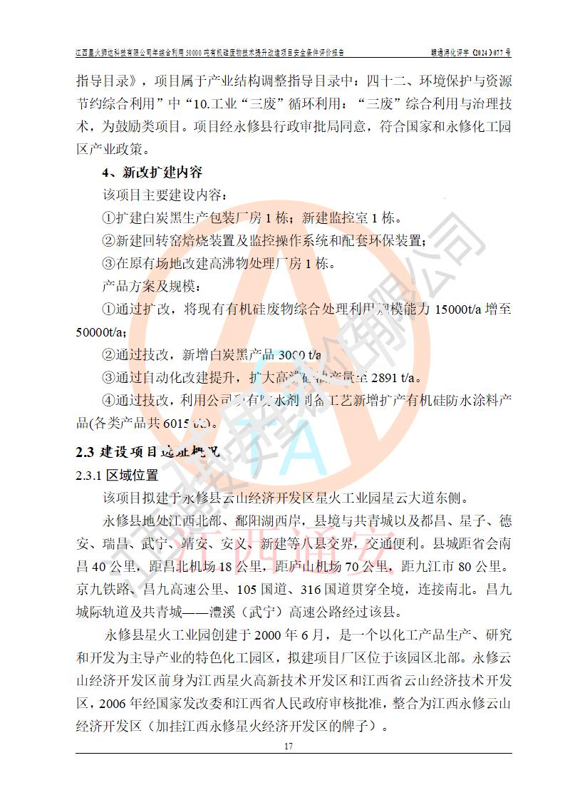 江西星火狮达科技有限公司年综合利用50000吨有机硅废物技术提升改造项目安全条件评价报告
