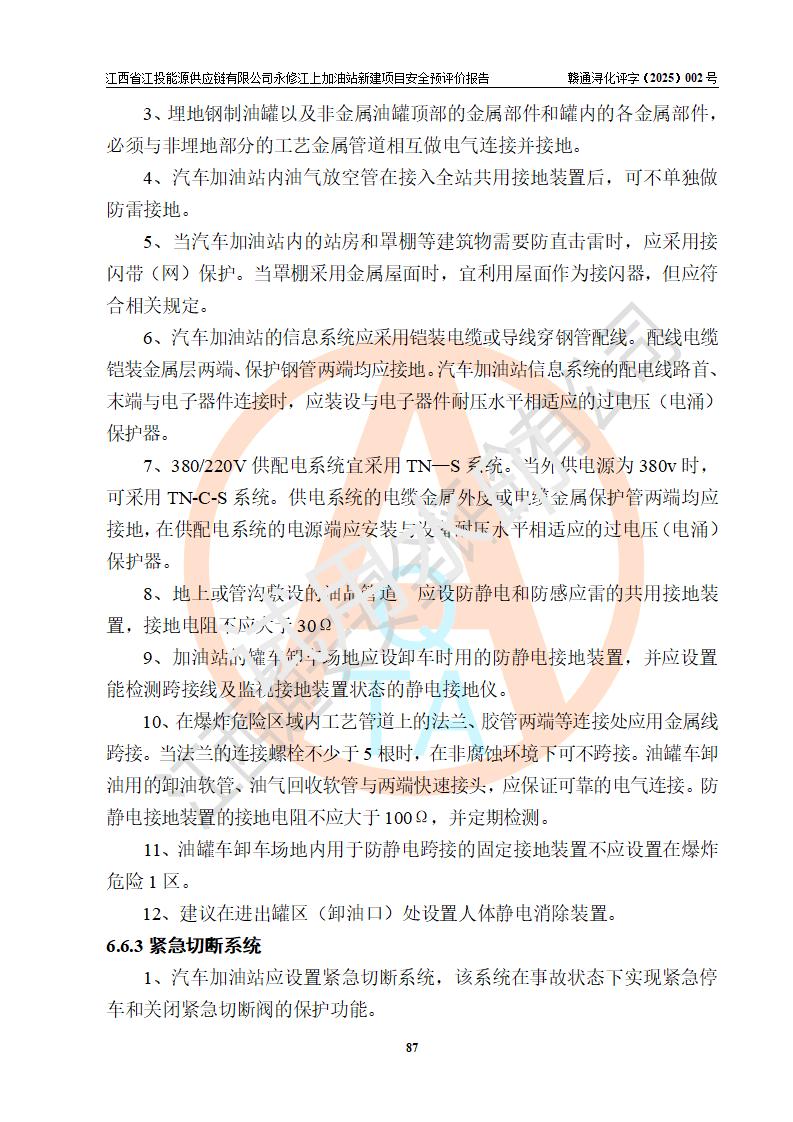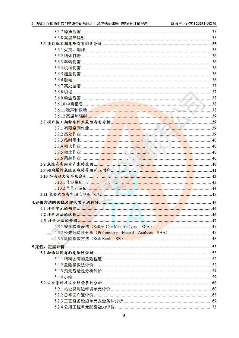 评价结论 | 江西省江投能源供应链有限公司永修江上加油站新建项目的选址、自然条件适宜该项目工程的建设;项目规划设计中的总体布局方案可行,符合有关法规、标准要求;项目选择的工艺过程及设备设施的安全可靠性能达到**法规、标准规定要求;项目存在的危险有害因素可控,在落实项目建设方案及评价报告提出的有关安全对策措施后,其危险有害程度能达到可以接受的程度,项目建设能够实现安全运行的目标。 | |||