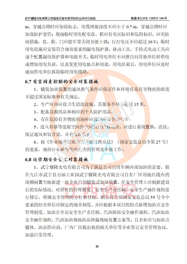 评价报告名称 | 武宁耀隆光电有限公司橇装设备安装项目项目安全预评价报告 | |||