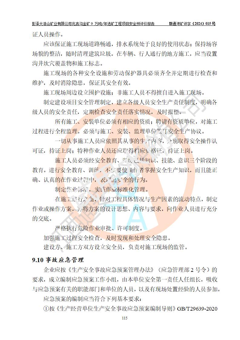 评价报告名称 | 彭泽大浩山矿业有限公司兆吉沟金矿9 万吨/年选矿工程项目安全预评价报告 | |||||