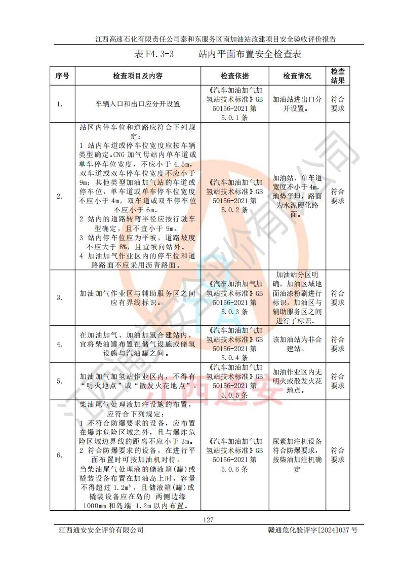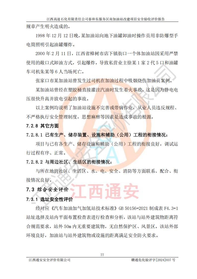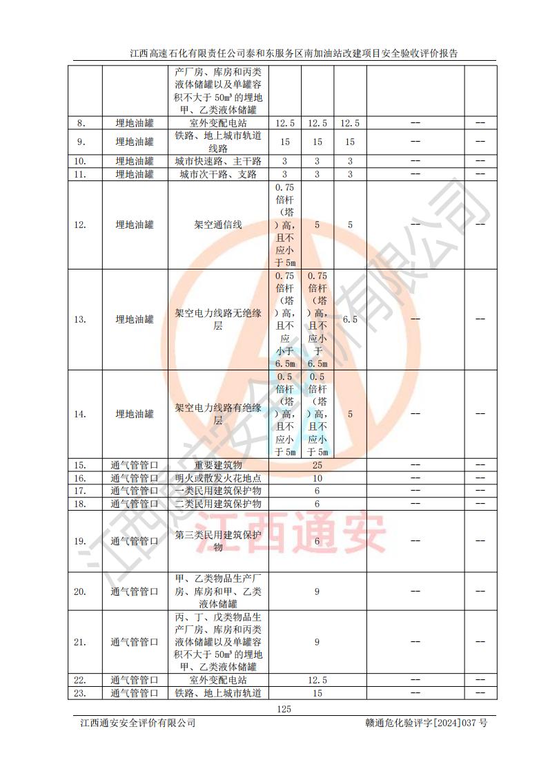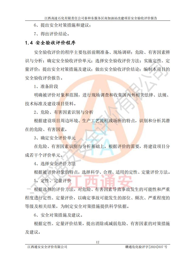 项目名称 | 江西高速石化有限责任公司泰和东服务区南加油站改建项目安全验收评价报告 | ||||