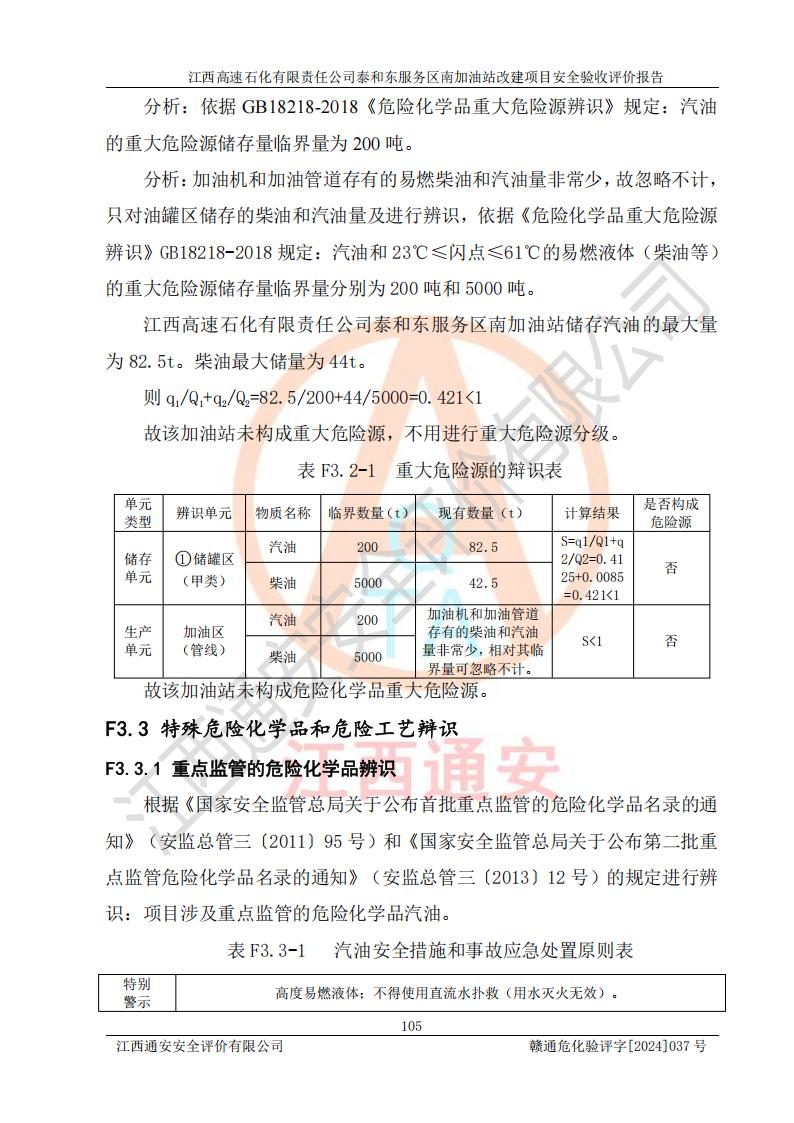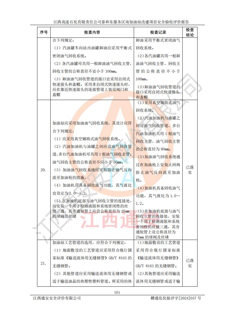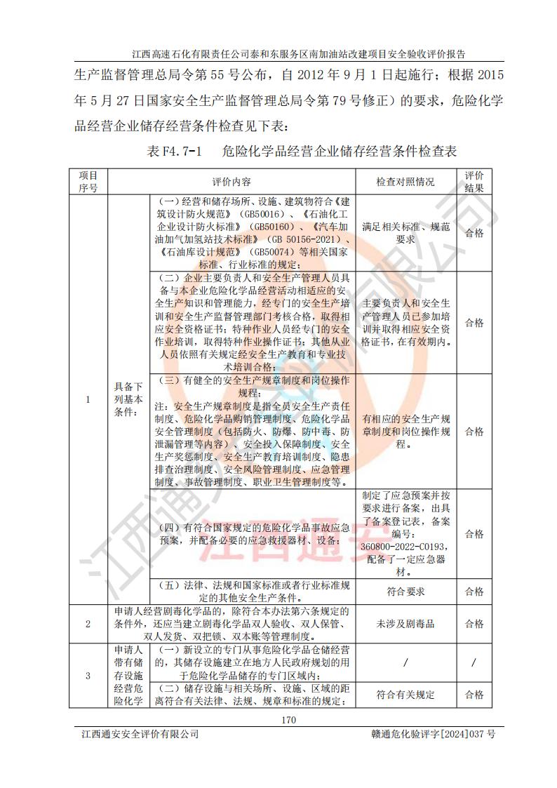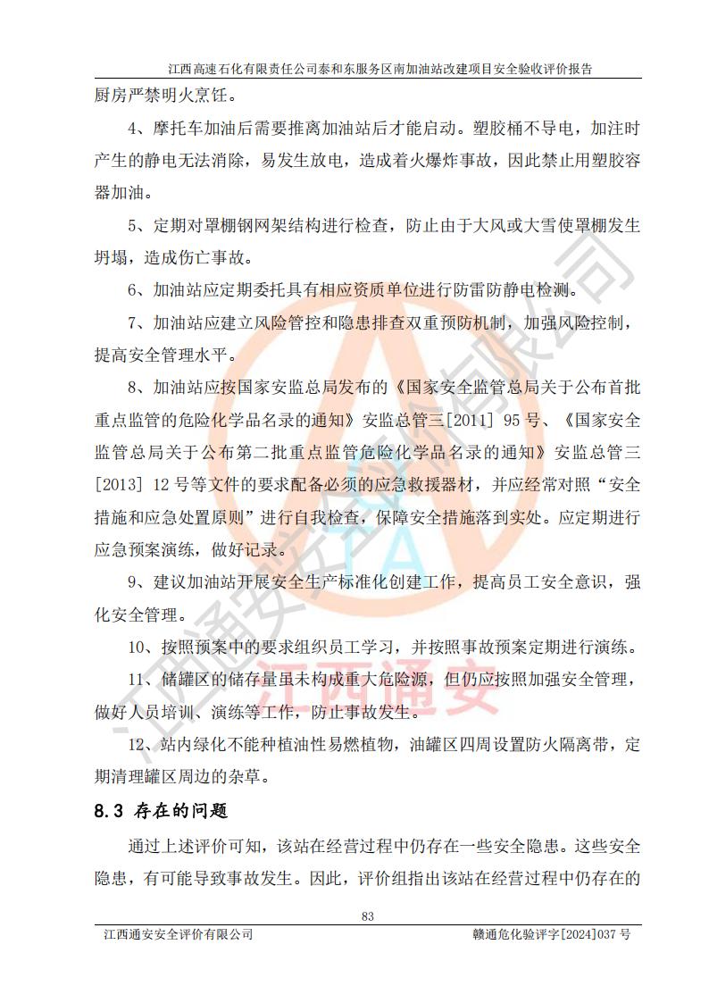 项目名称 | 江西高速石化有限责任公司泰和东服务区南加油站改建项目安全验收评价报告 | ||||