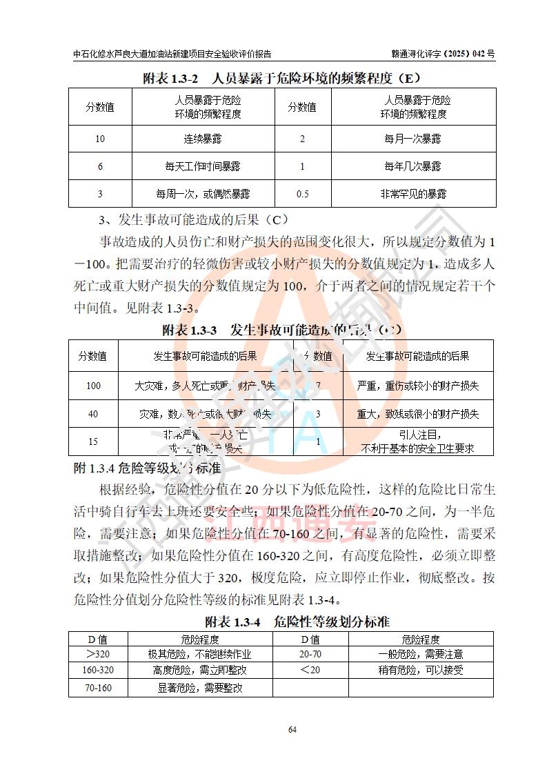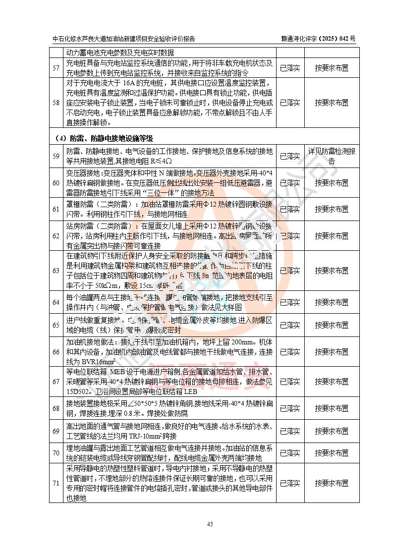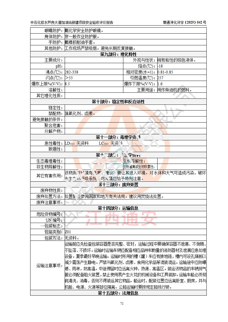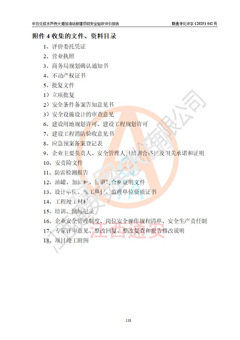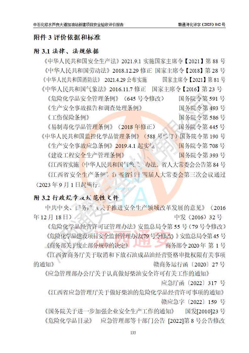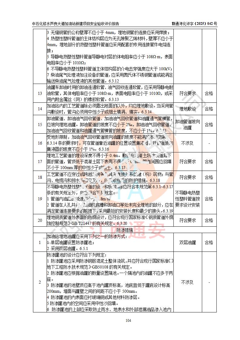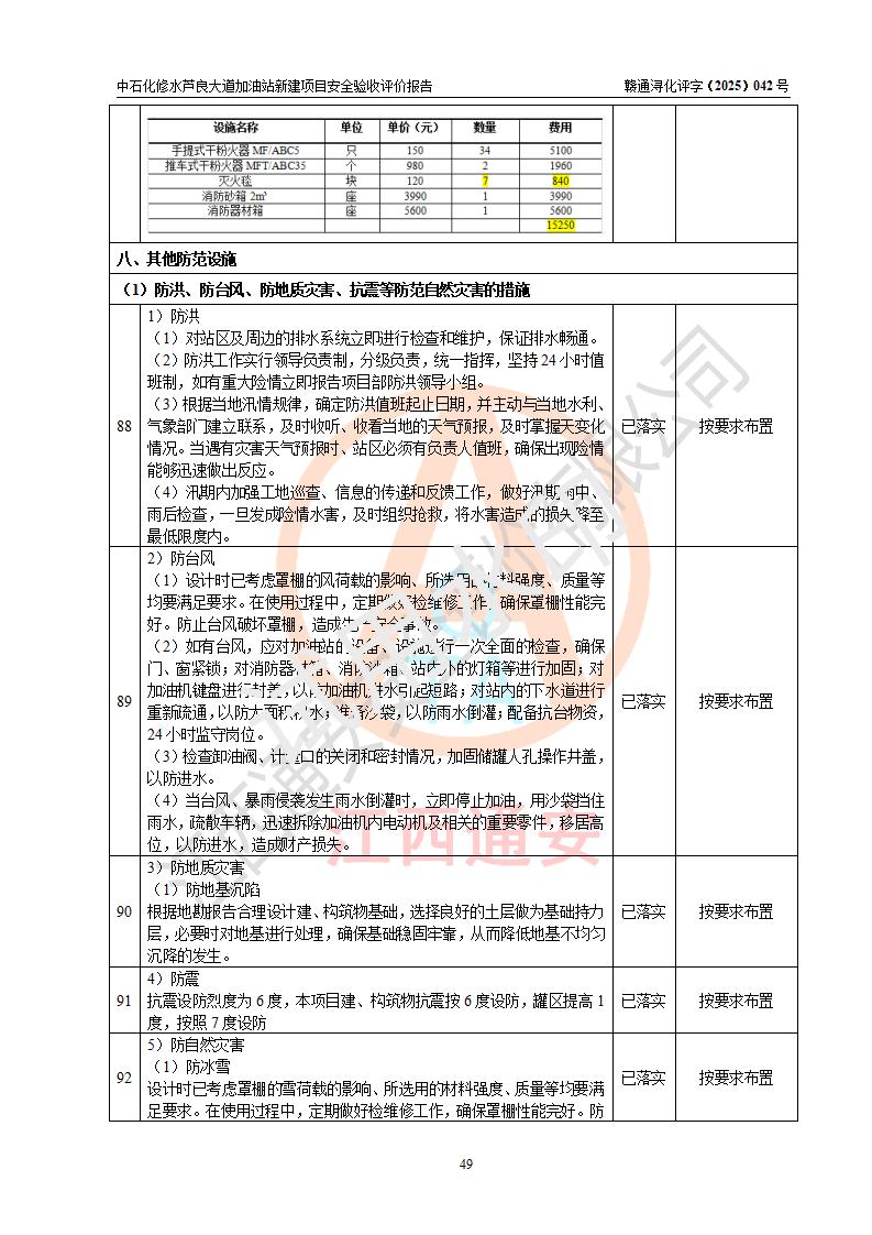 评价结论 | 中国石化销售股份有限公司江西九江修水石油分公司芦良大道加油站新建项目涉及的安全条件、安全生产条件、安全生产管理符合《危险化学品经营许可证管理办法》、《汽车加油加气加氢站技术标准》等**有关法规、标准、规范要求,能满足成品油零售经营单位的安全条件,具备项目竣工验收的条件。 | |||