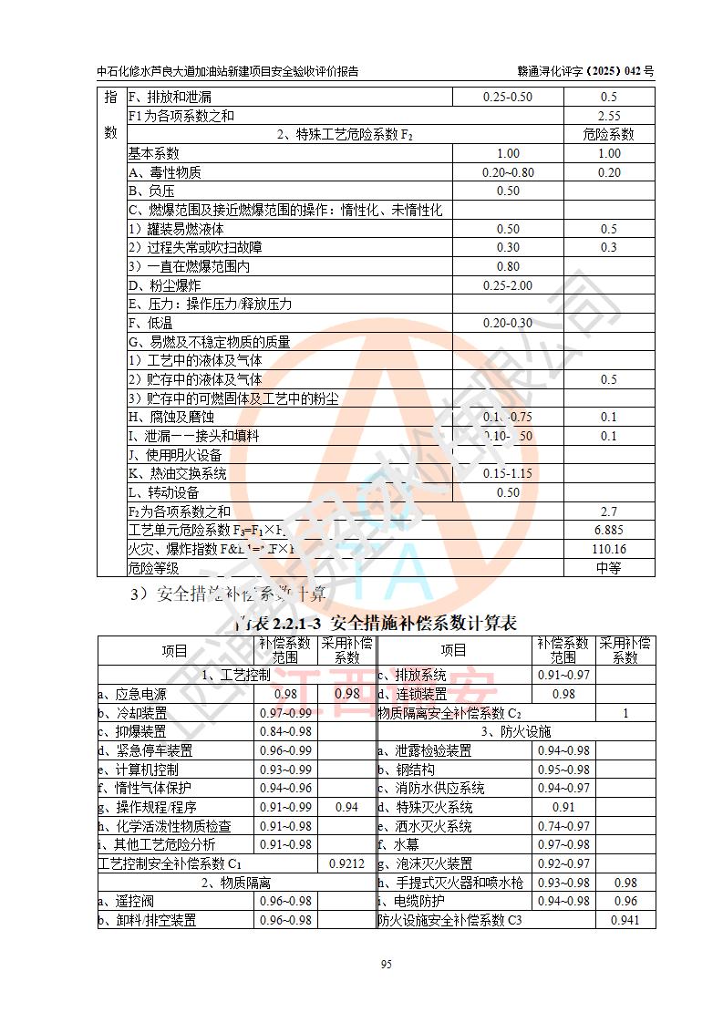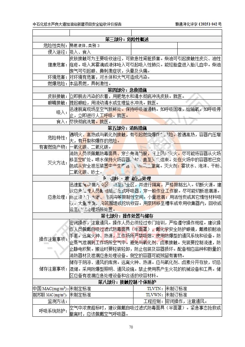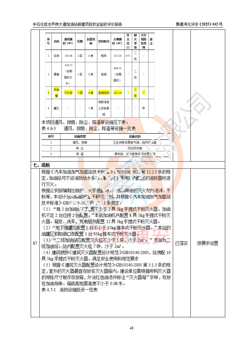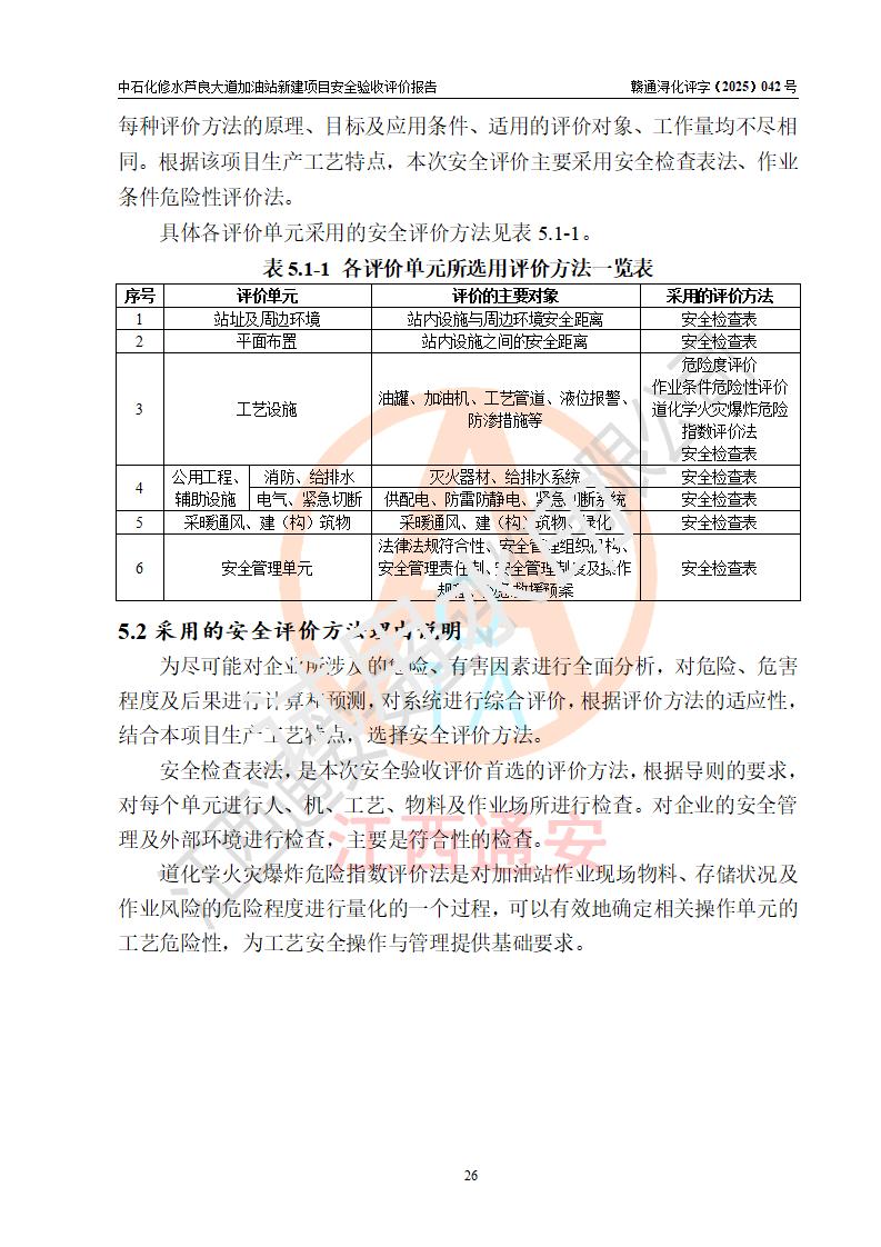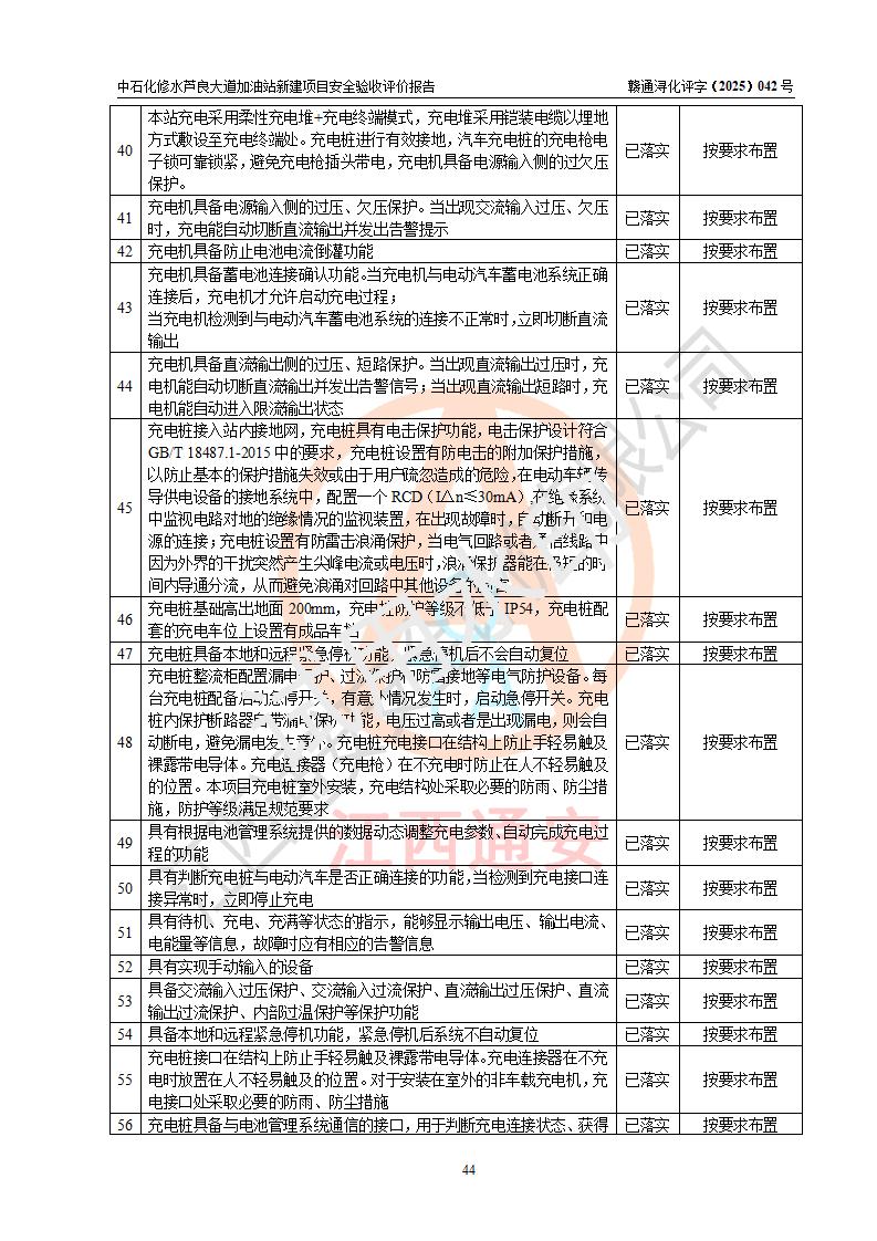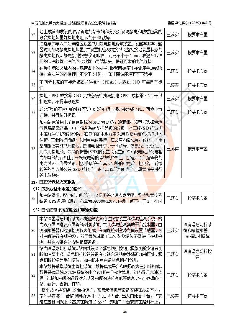 评价结论 | 中国石化销售股份有限公司江西九江修水石油分公司芦良大道加油站新建项目涉及的安全条件、安全生产条件、安全生产管理符合《危险化学品经营许可证管理办法》、《汽车加油加气加氢站技术标准》等**有关法规、标准、规范要求,能满足成品油零售经营单位的安全条件,具备项目竣工验收的条件。 | |||
