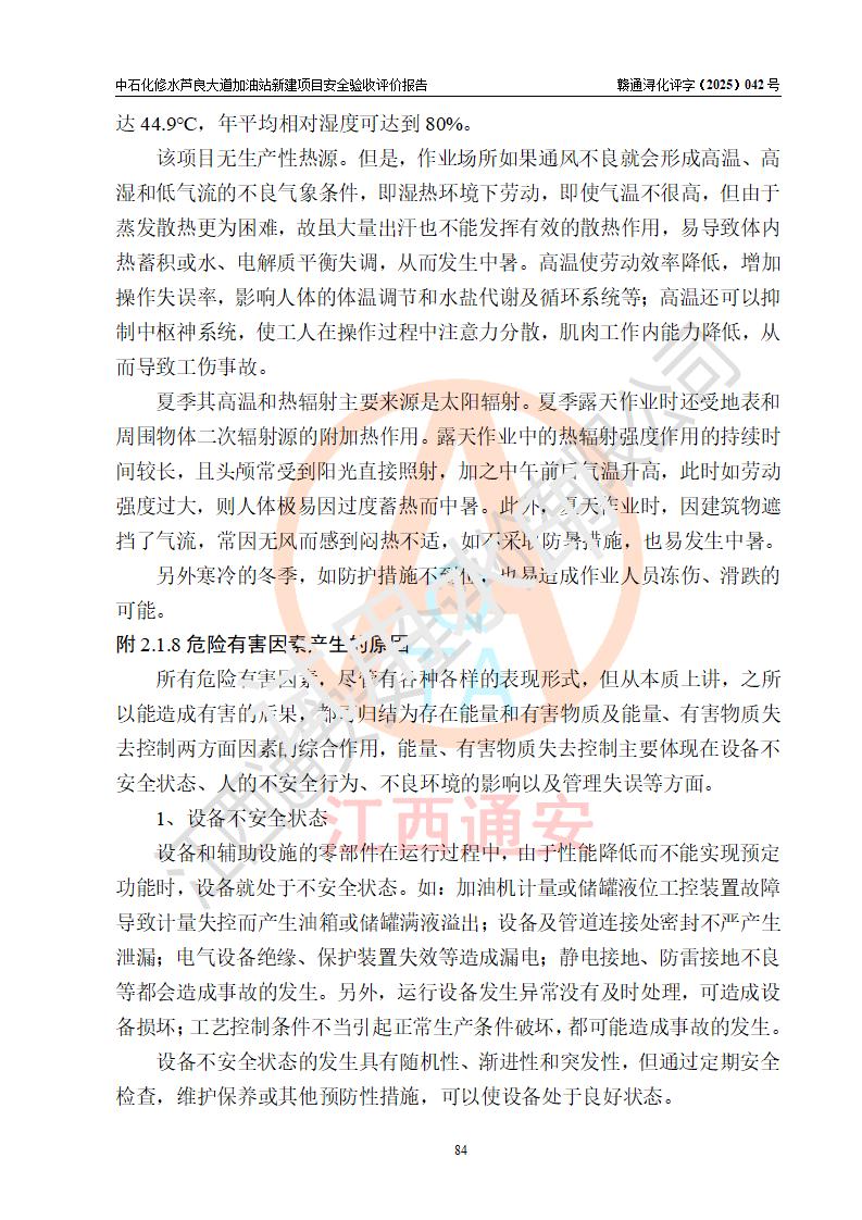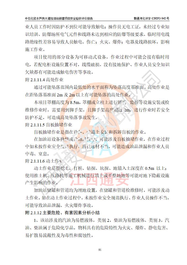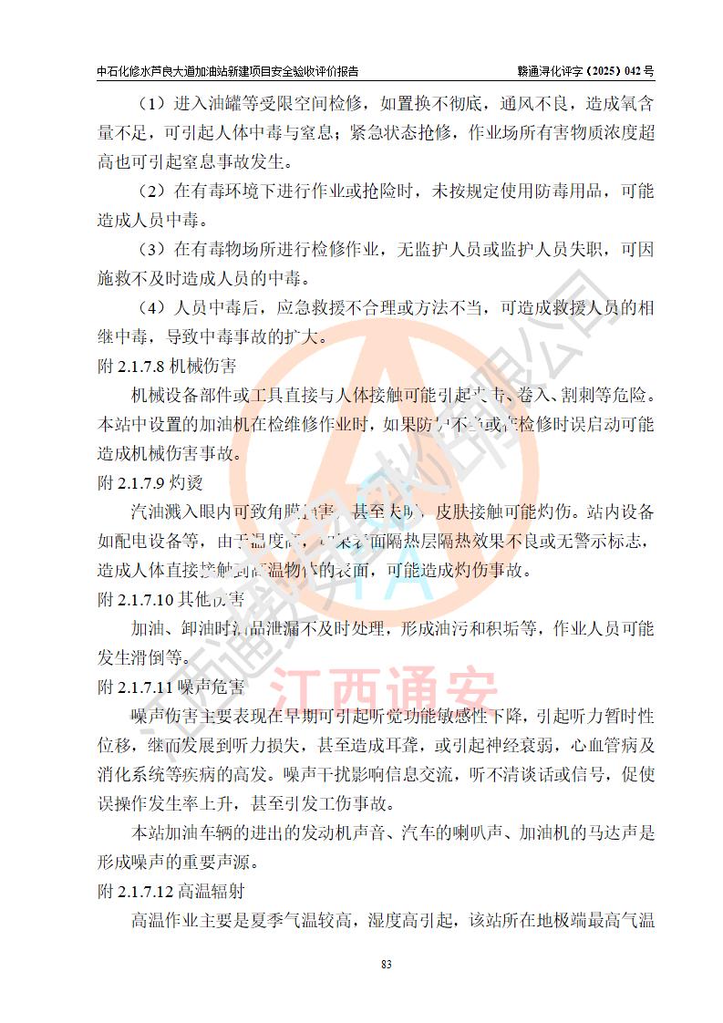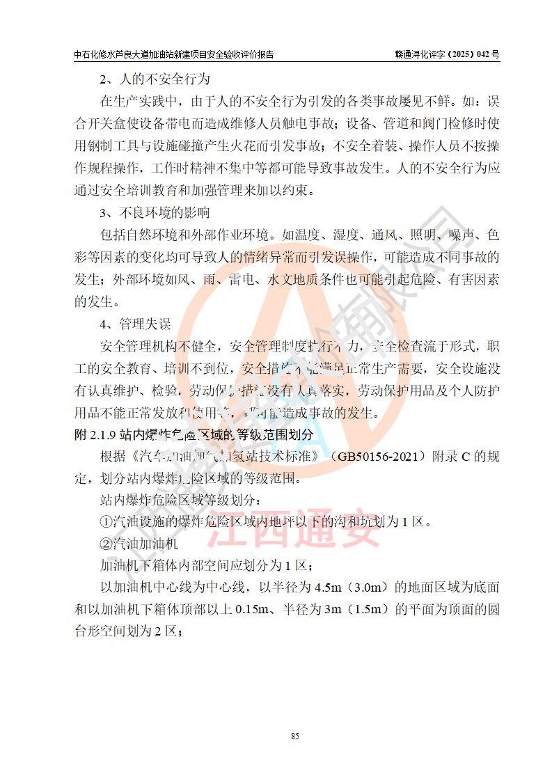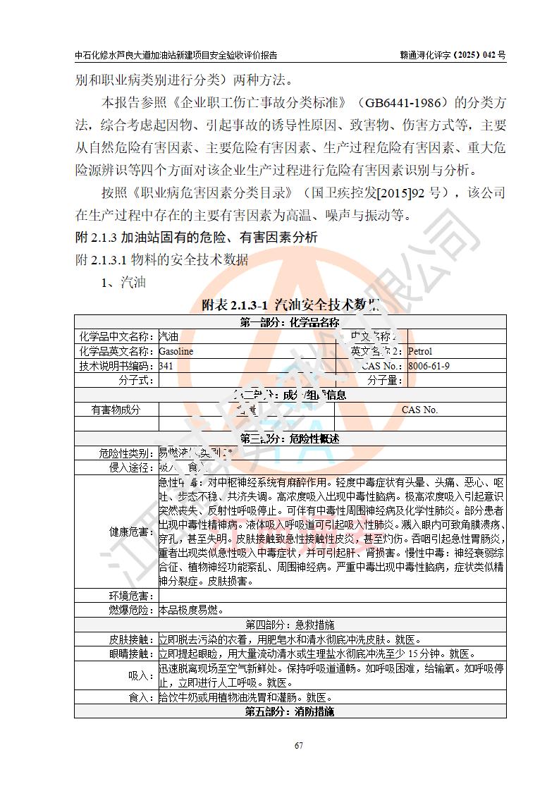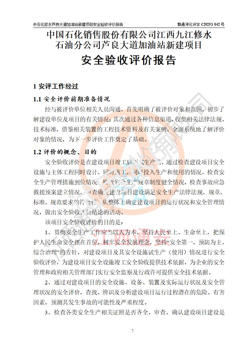 评价报告名称 | 中国石化销售股份有限公司江西九江修水石油分公司芦良大道加油站新建项目安全验收评价报告 | |||