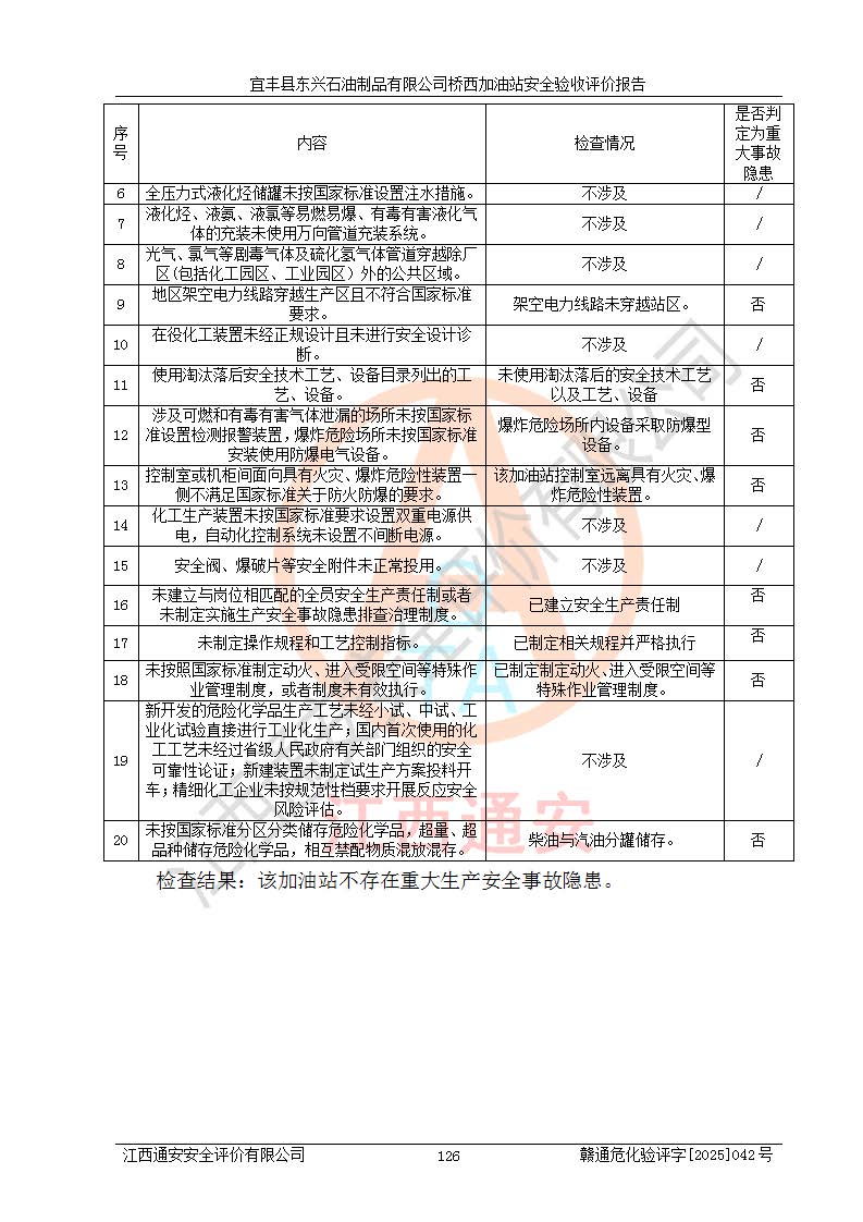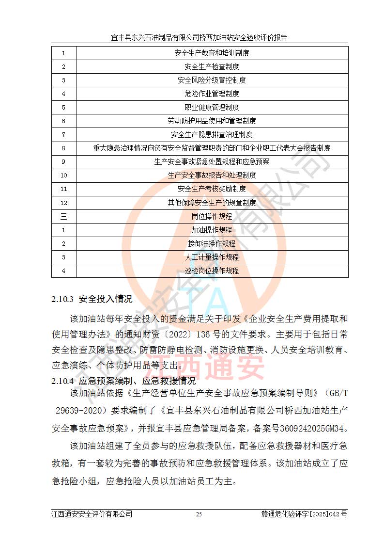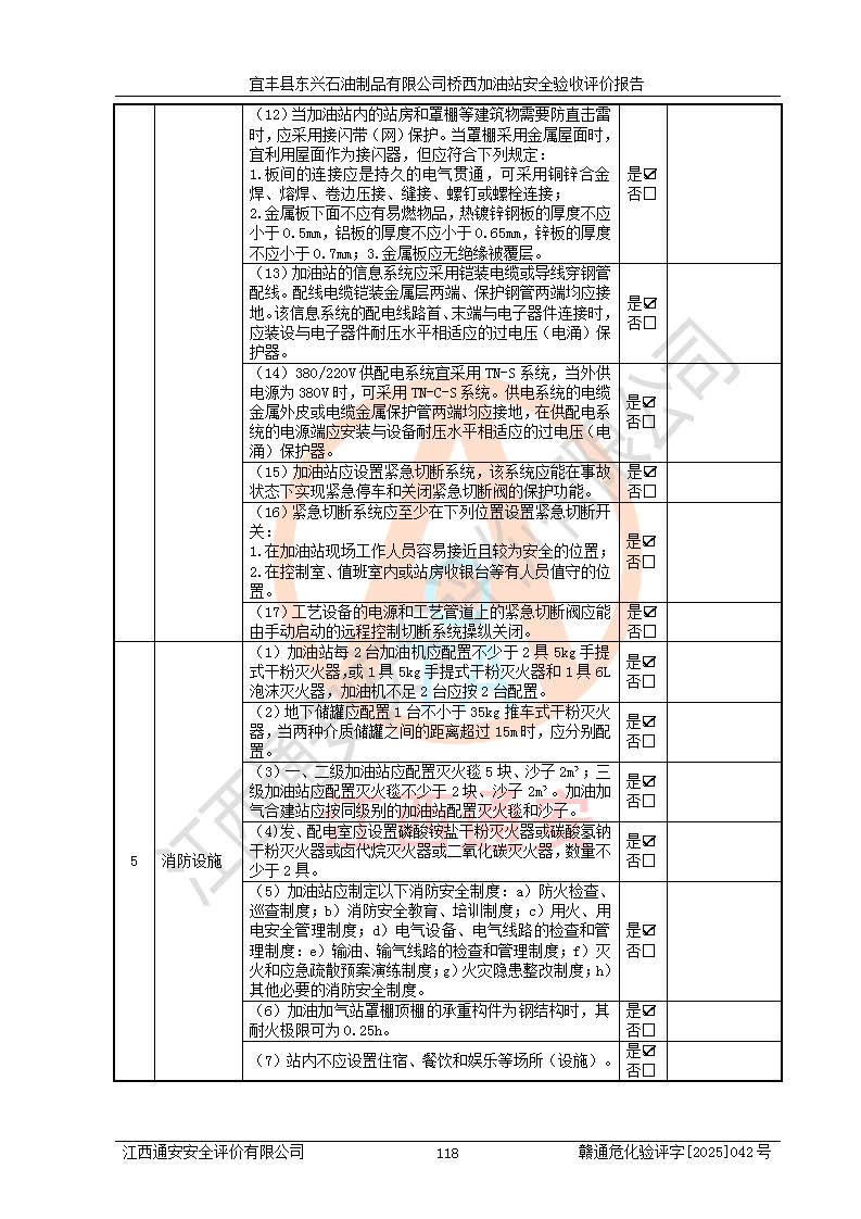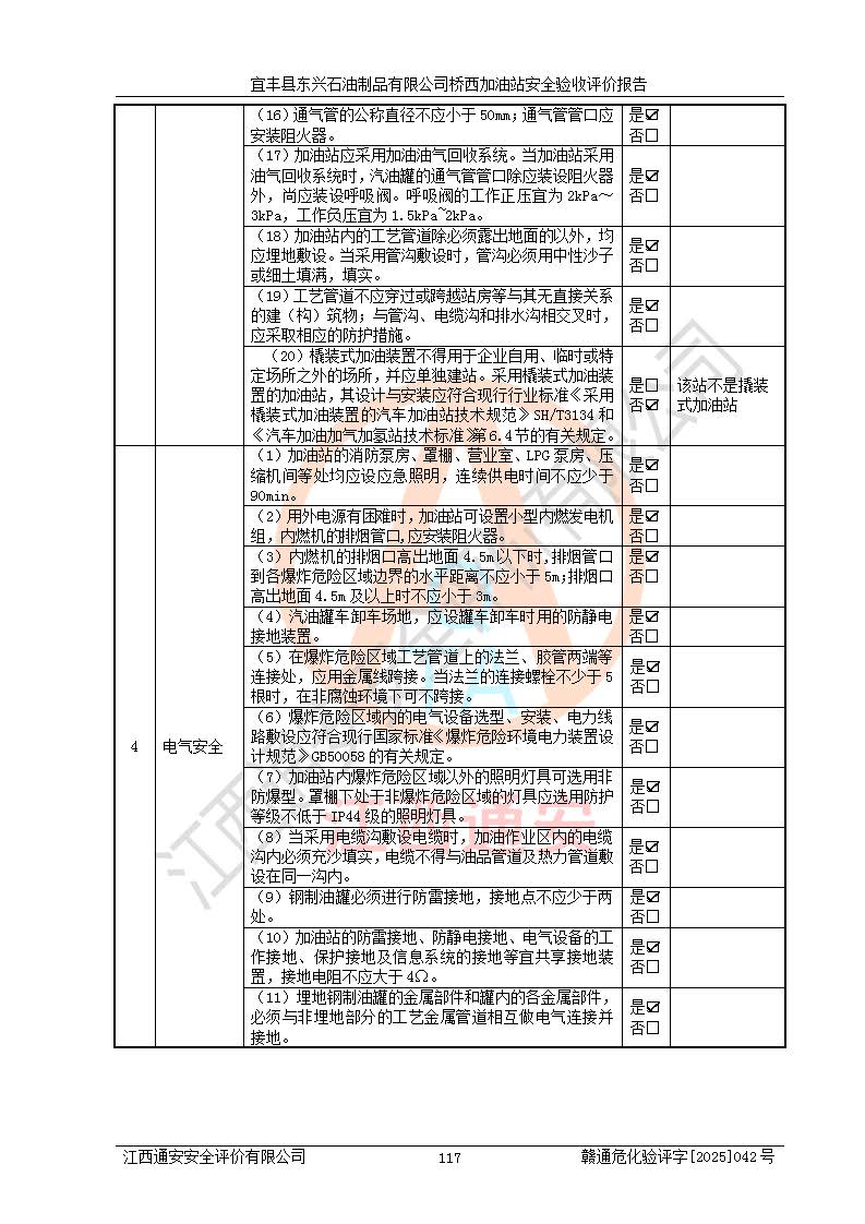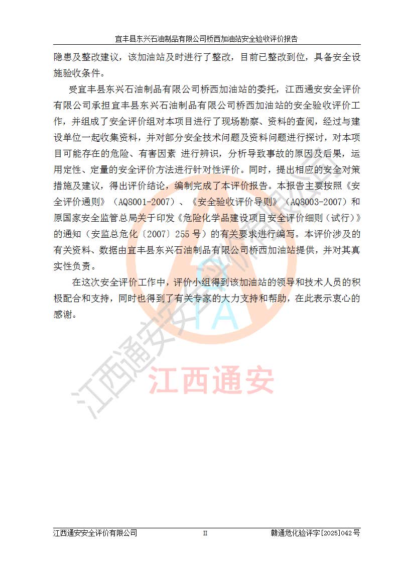 项目名称 | 宜丰县东兴石油制品有限公司桥西加油站安全验收评价 | ||||