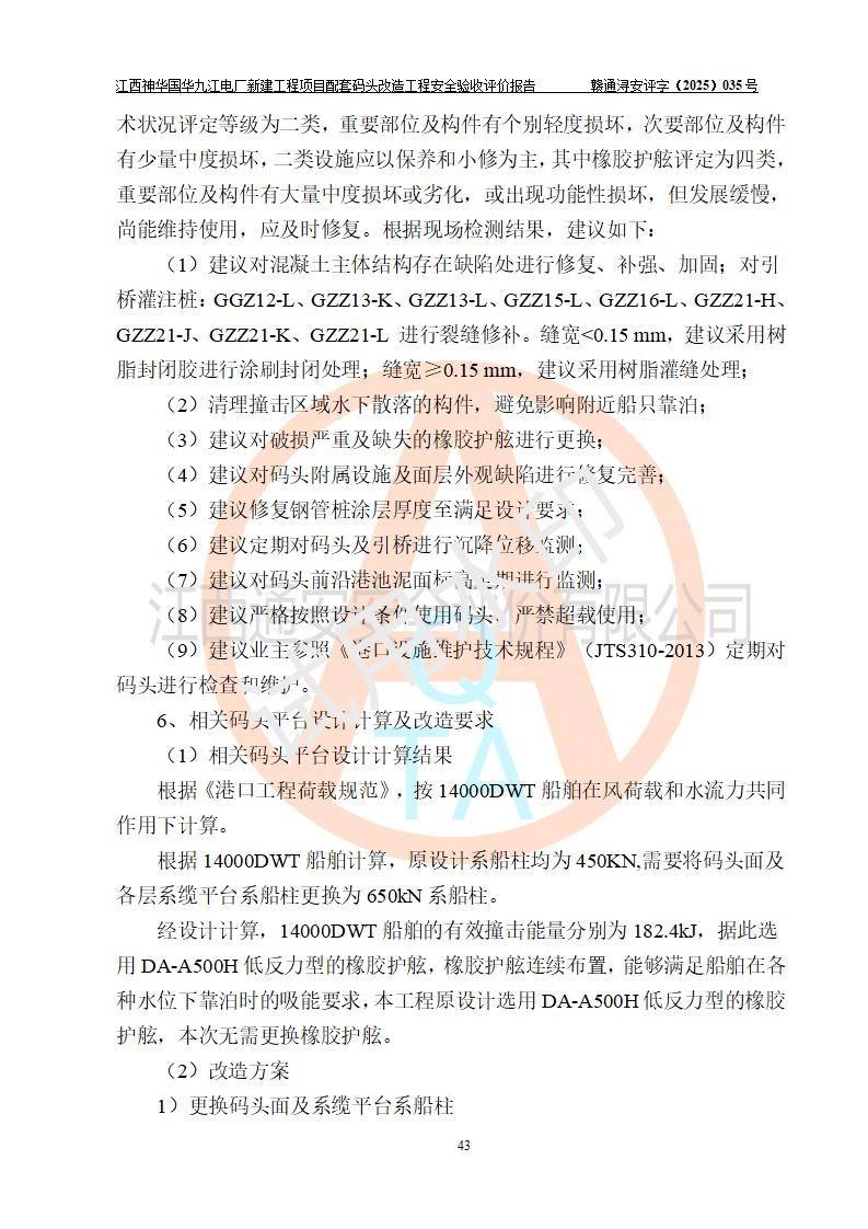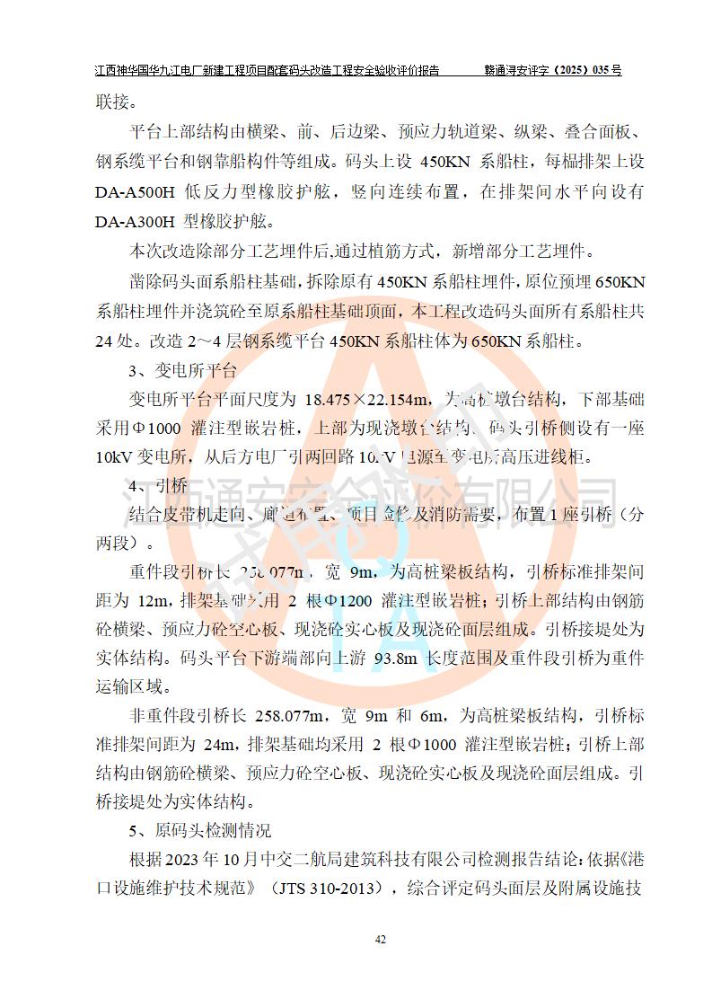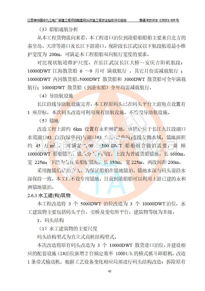 项目名称:江西神华国华九江电厂新建工程项目配套码头改造工程 项目地点:位于长江下游东北水道右岸,九江长江大桥下游约37**,岸线批复总长度为409米 建设单位:国能神华九江发电有限责任公司 勘察设计单位:中交第二航务工程勘察设计院有限公司 设计单位一:中交第二航务工程勘察设计院有限公司(水工建筑物设计分界以大堤为界,大堤以外由二航院设计) ;工艺专业设计分界点以码头平台上的 0#转运站为分界点,0#转运站内部工艺设备由二航院设计 设计单位二:引桥上部管带机(引桥上管带机300m后)由中南电力设计院设计 施工单位一:杭州华新机电工程有限公司 施工单位二:中交二航局第三工程有限公司 施工单位三:中国电建集团江西省水电工程局有限公司 监理单位:中交希迪工程咨询管理(武汉)有限公司 项目性质:改扩建 投资规模:8320.51万元 建设规模:江西神华国华九江电厂新建工程项目配套码头原有 2 个5000DWT 散货**泊位、1 个 5000DWT 散货出口泊位及相应的配套设施。本次改造将原有码头改造为 3 个 10000DWT 散货**泊位。改造后的3个泊位煤炭总通过能力为1051万吨/年。 |