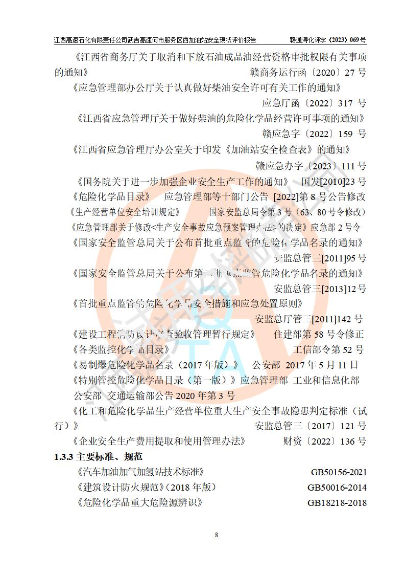 评价报告名称 | 江西高速石化有限责任公司武吉高速何市服务区西加油站安全现状评价报告 | |||