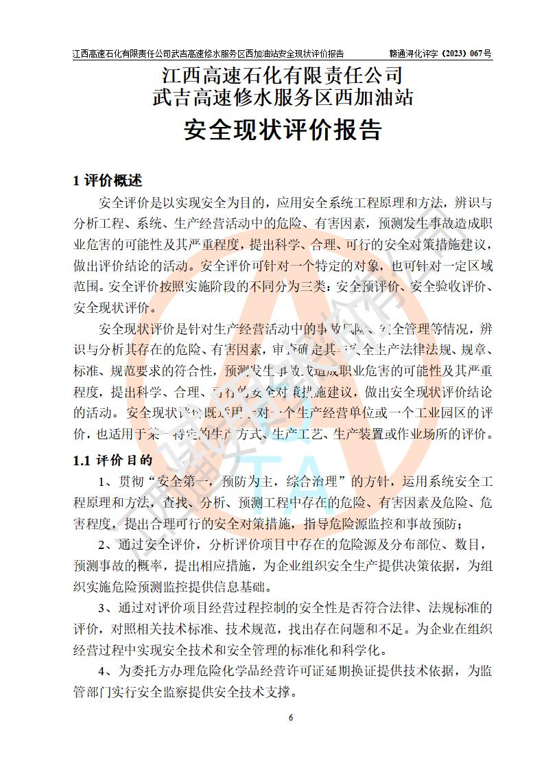 评价报告名称 | 江西高速石化有限责任公司武吉高速修水服务区西加油站安全现状评价报告 | |||