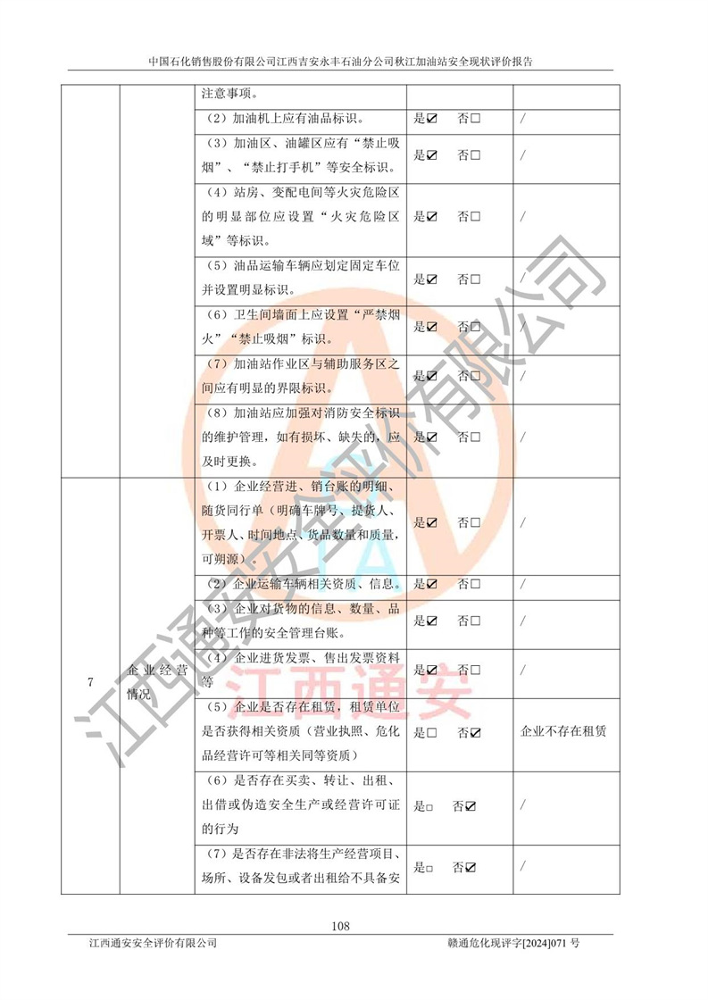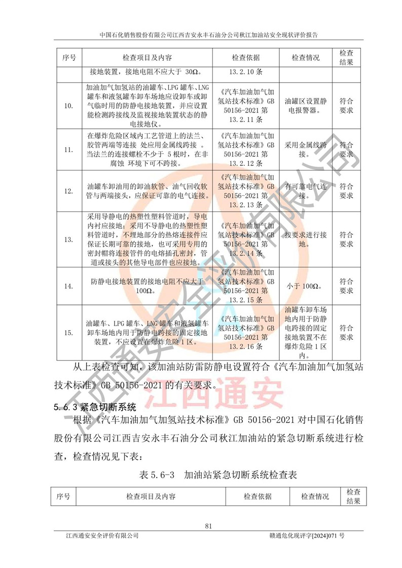 评价报告名称 | 中国石化销售股份有限公司江西吉安永丰石油分公司秋江加油站安全现状评价报告 | |||