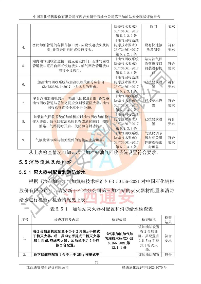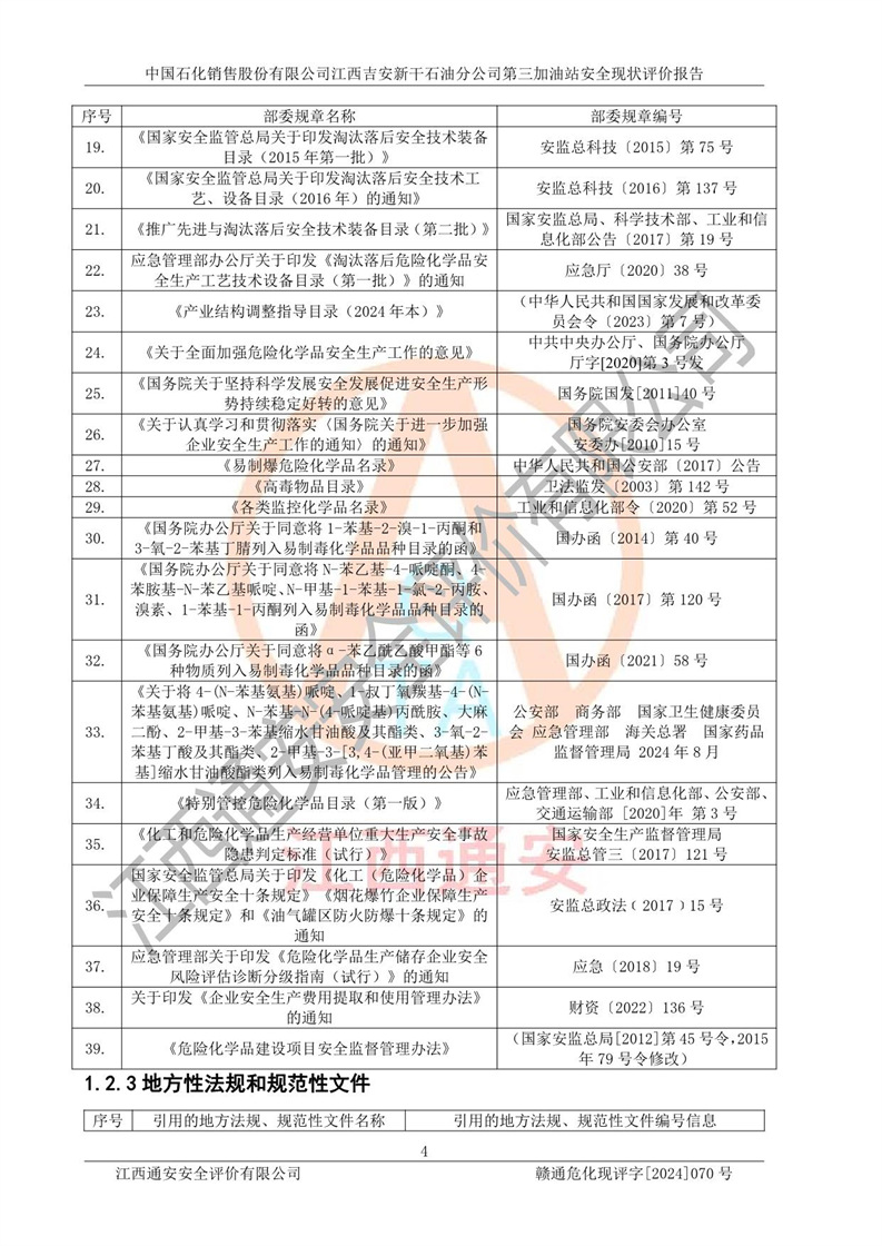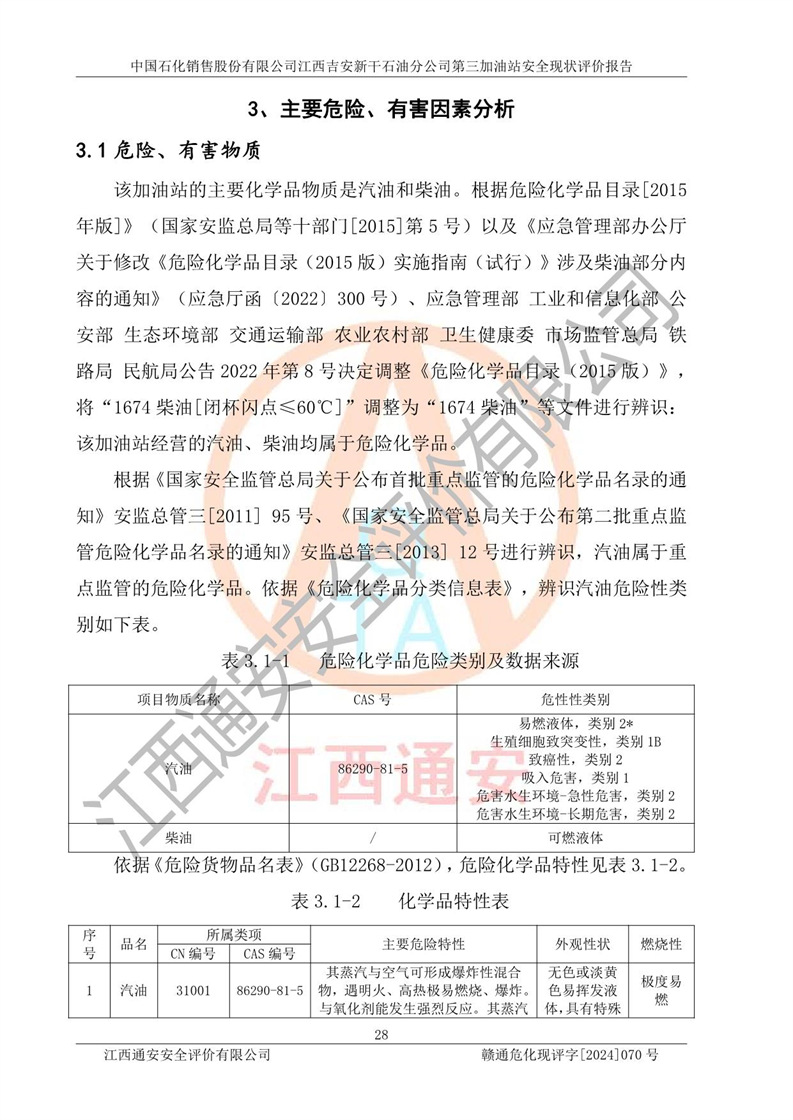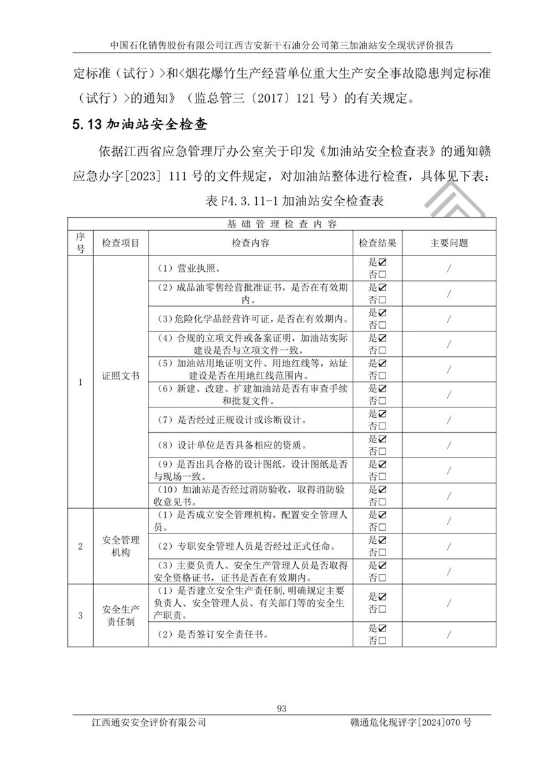 项目名称 | 中国石化销售股份有限公司江西吉安新干石油分公司第三加油站 安全现状评价报告 | ||||