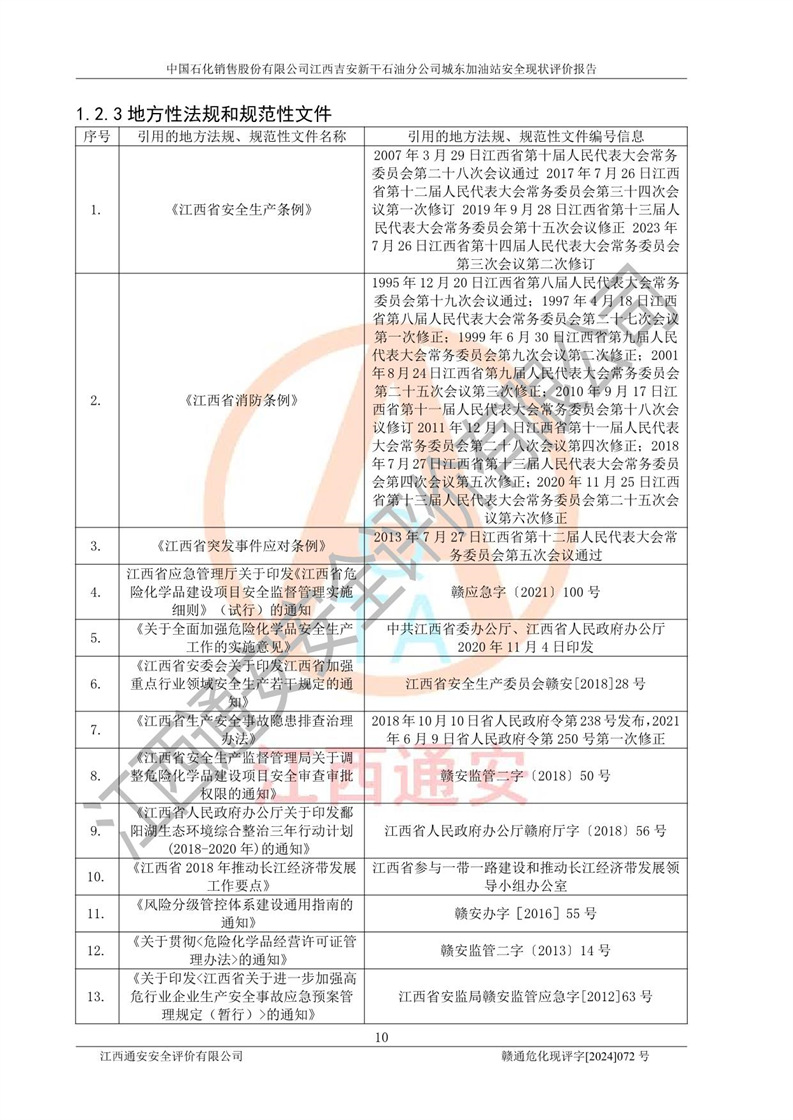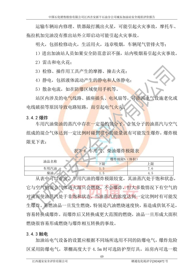 评价报告名称 | 中国石化销售股份有限公司江西吉安新干石油分公司城东加油站安全现状评价报告 | |||
