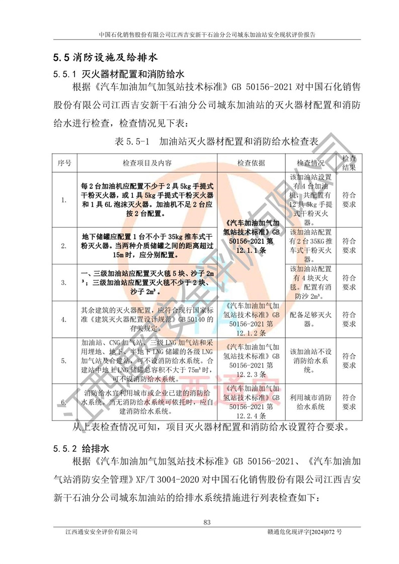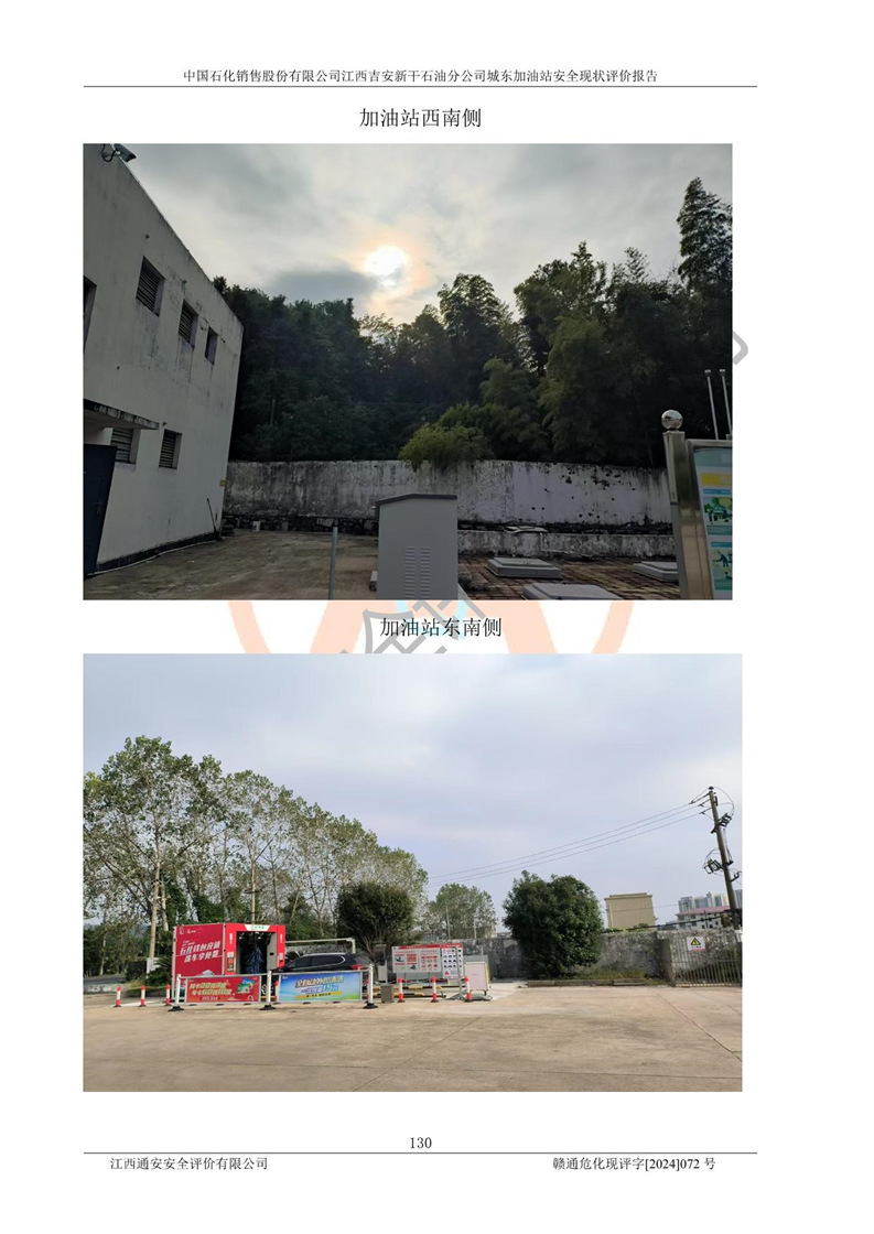 评价结论 | 中国石化销售股份有限公司江西吉安新干石油分公司城东加油站符合《汽车加油加气加氢站技术标准》GB50156-2021等标准规范的要求,安全风险可控,满足危险化学品经营的安全条件。 | |||
