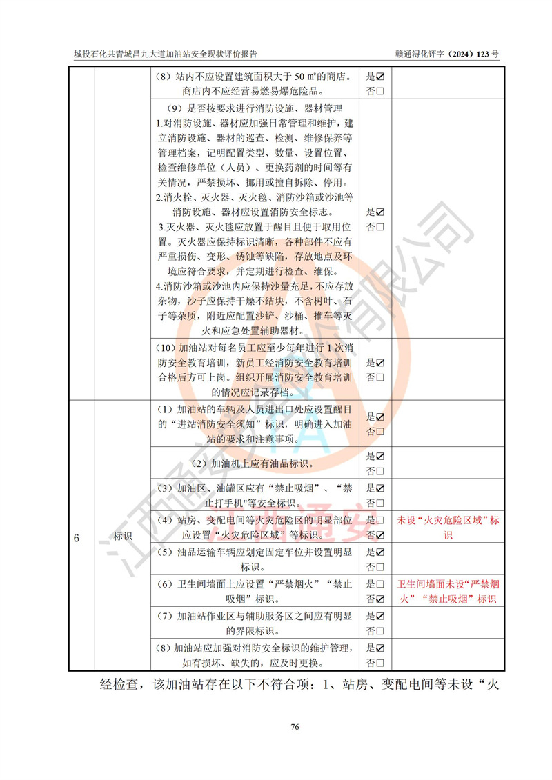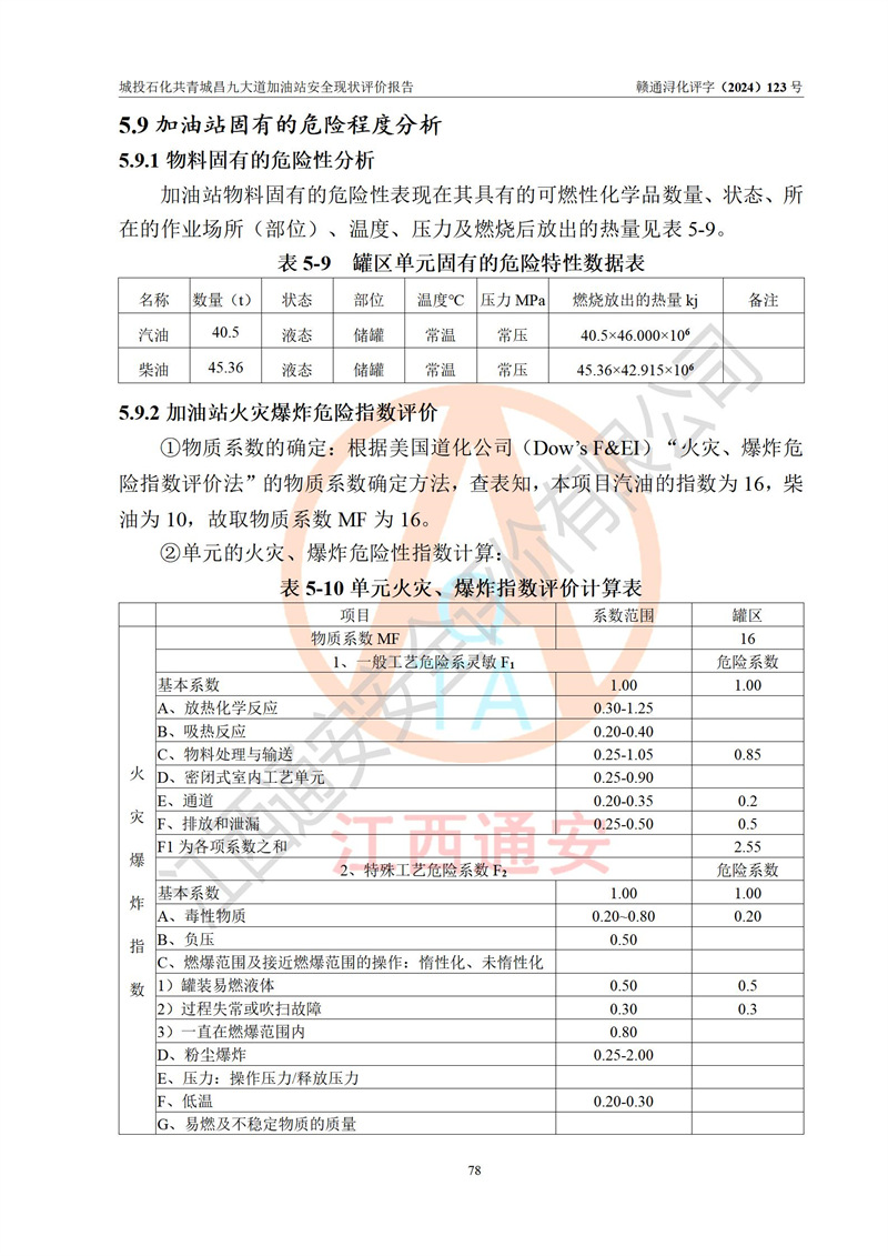 评价结论 | 九江市城投石化能源有限公司共青城昌九大道加油站涉及的安全条件、安全经营条件、安全生产管理符合《危险化学品经营许可证管理办法》、《汽车加油加气加氢站技术标准》等**有关法规、标准、规范要求,能满足危险化学品经营安全条件。 | |||