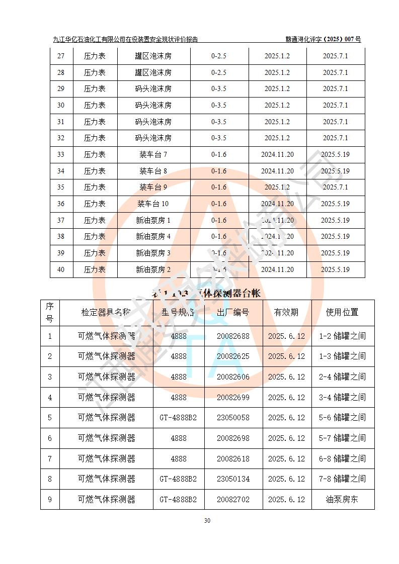 评价报告名称 | 九江华亿石油化工有限公司 在役装置安全现状评价 | |||||