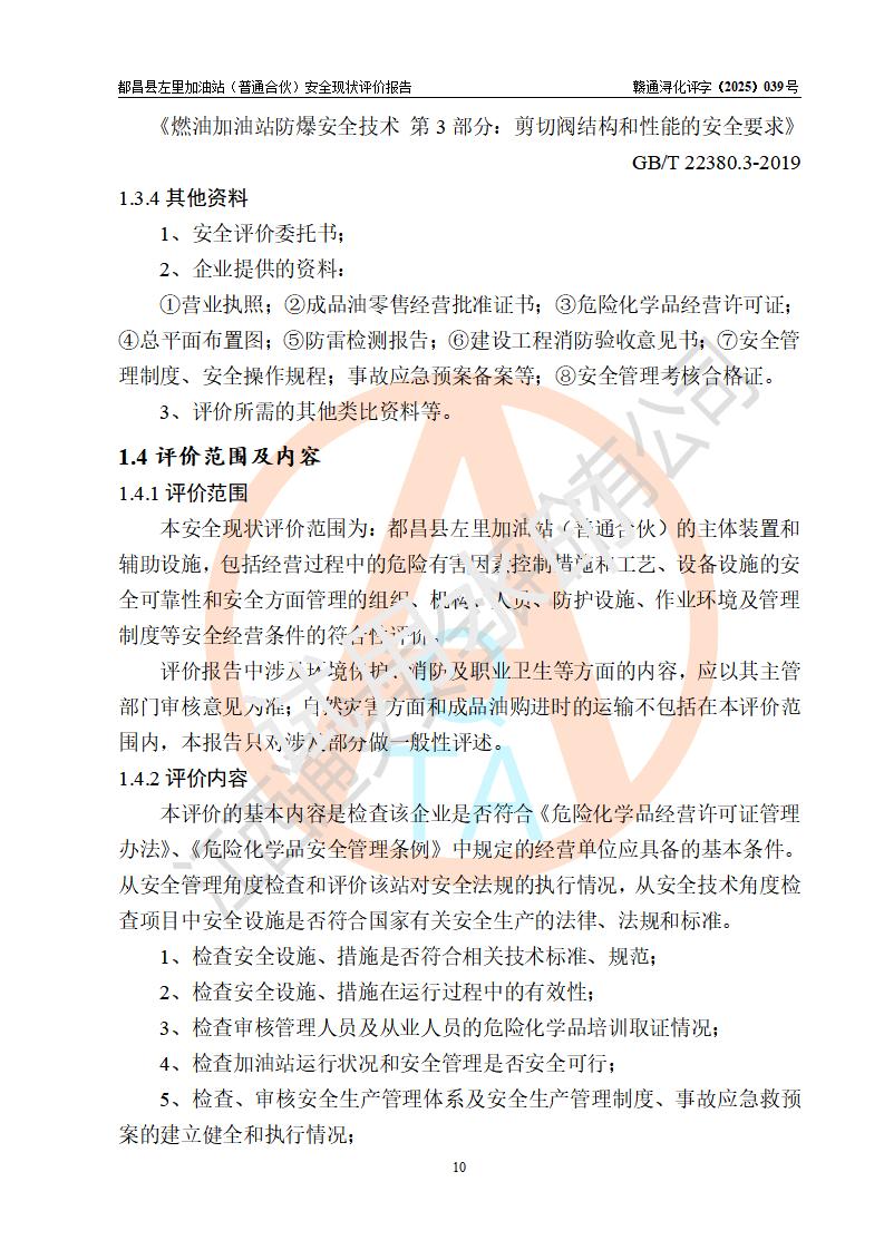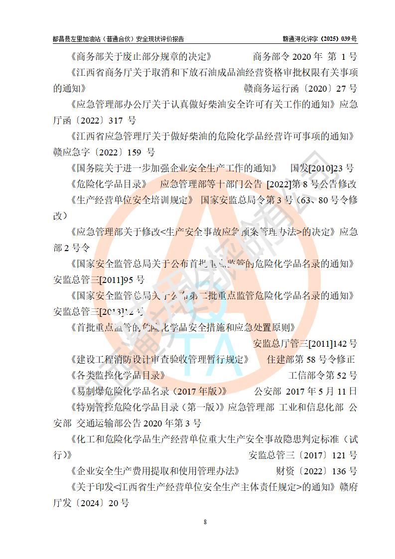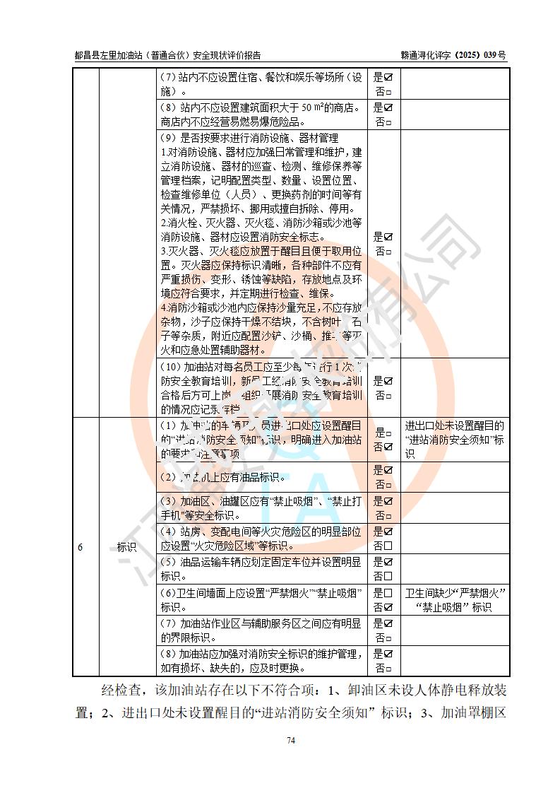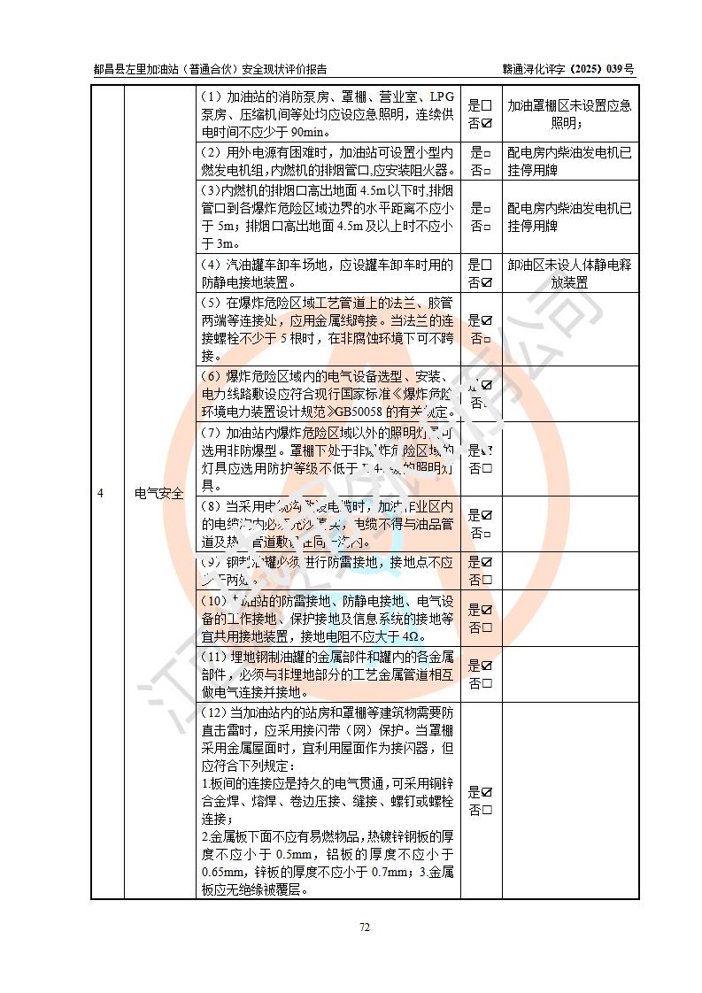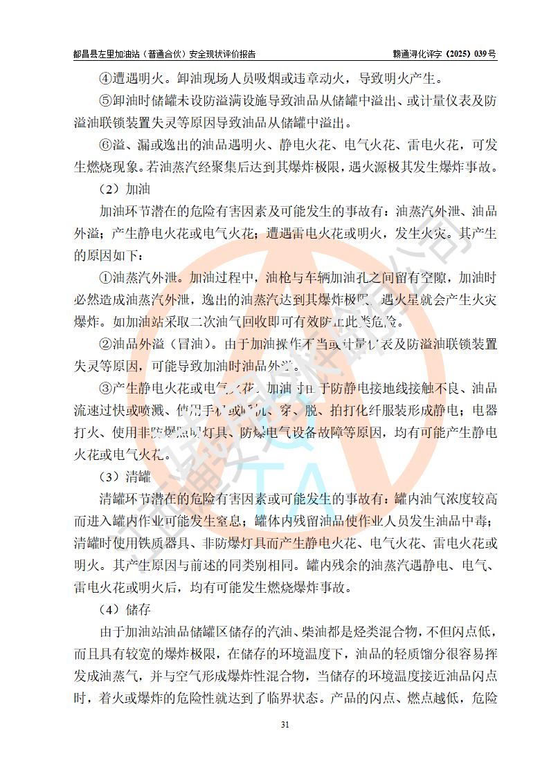 评价报告名称 | 都昌县左里加油站(普通合伙)安全现状评价报告 | |||