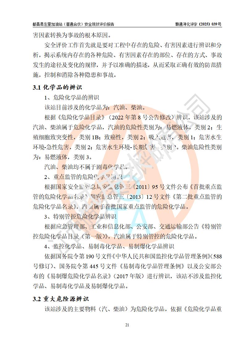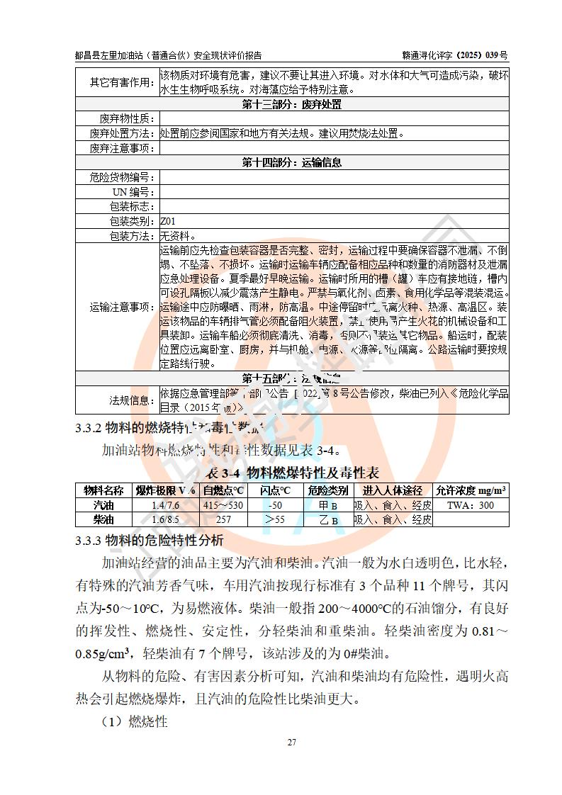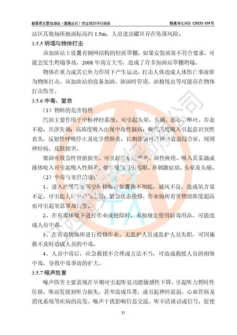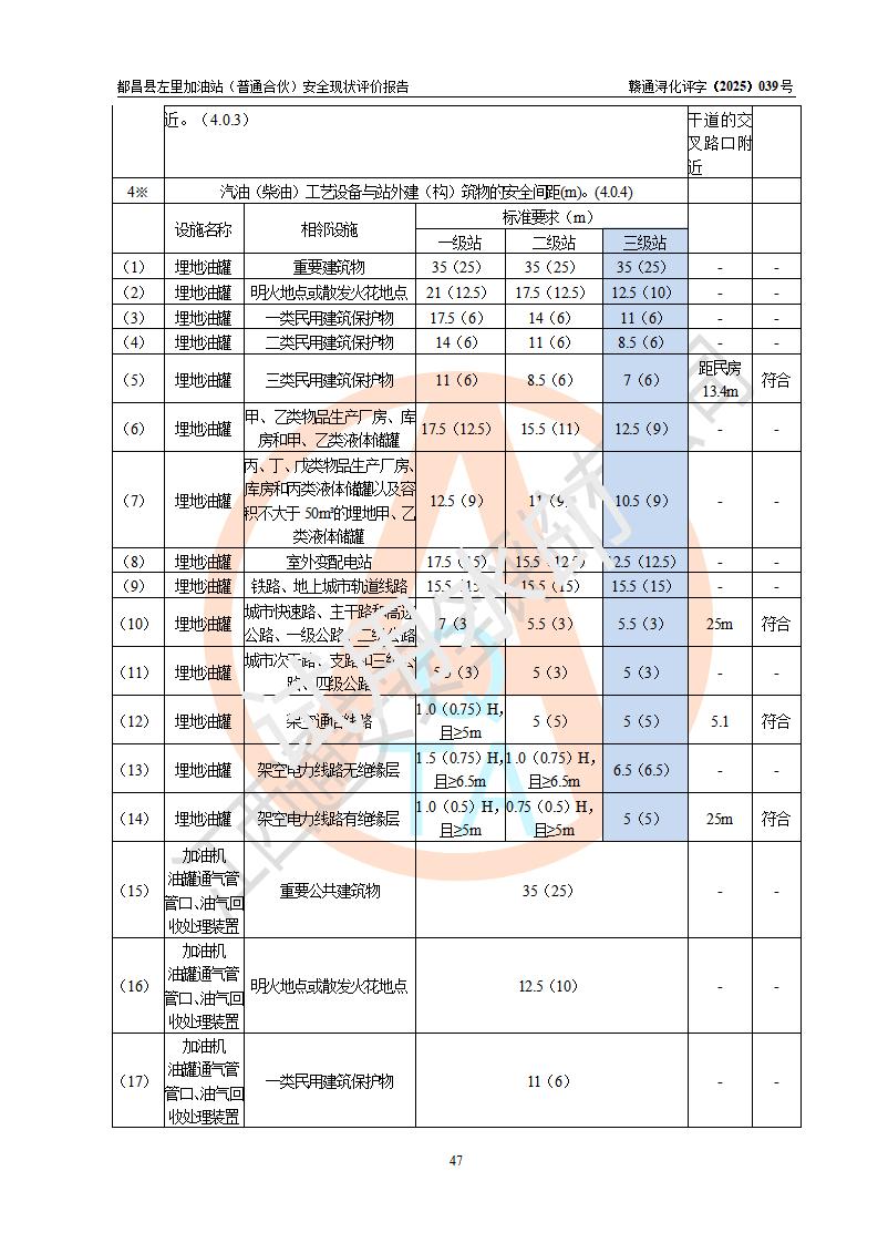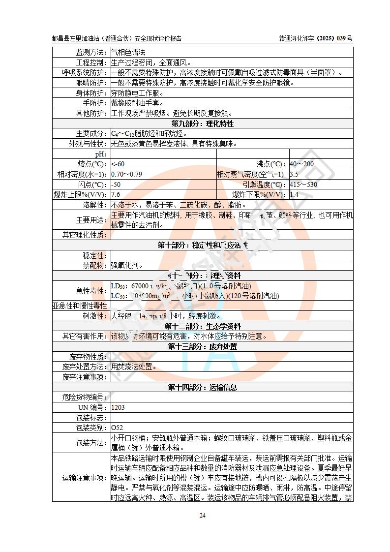 评价结论 | 都昌县左里加油站(普通合伙)涉及的安全条件、安全经营条件、安全生产管理符合《危险化学品经营许可证管理办法》、《汽车加油加气加氢站技术标准》等**有关法规、标准、规范要求,能满足危险化学品经营安全条件。 | |||