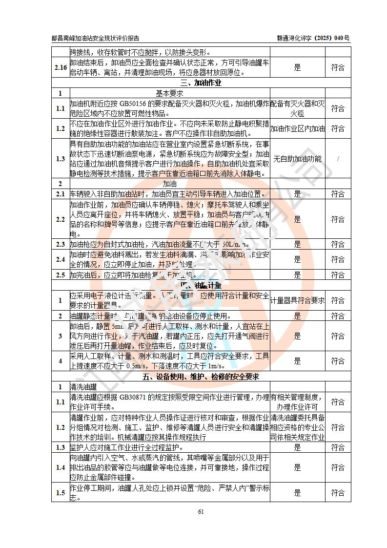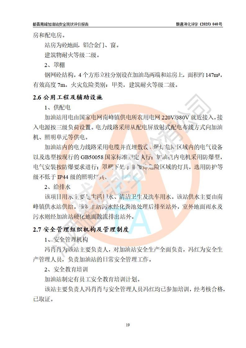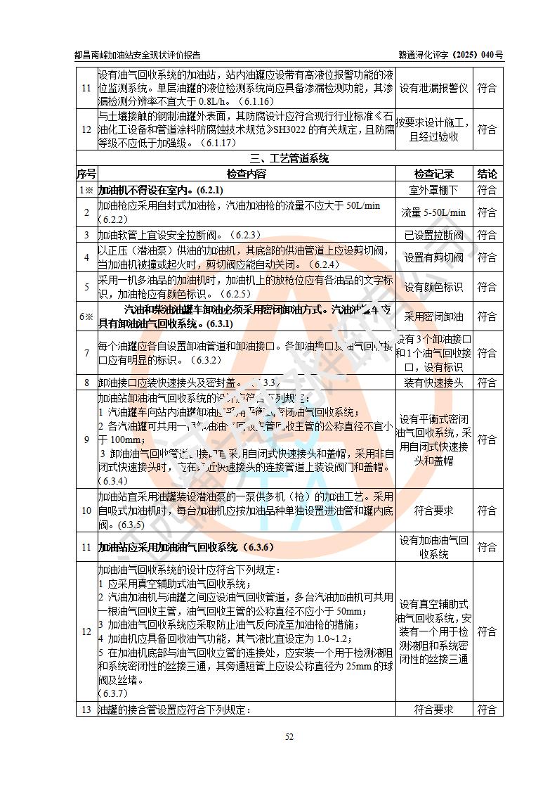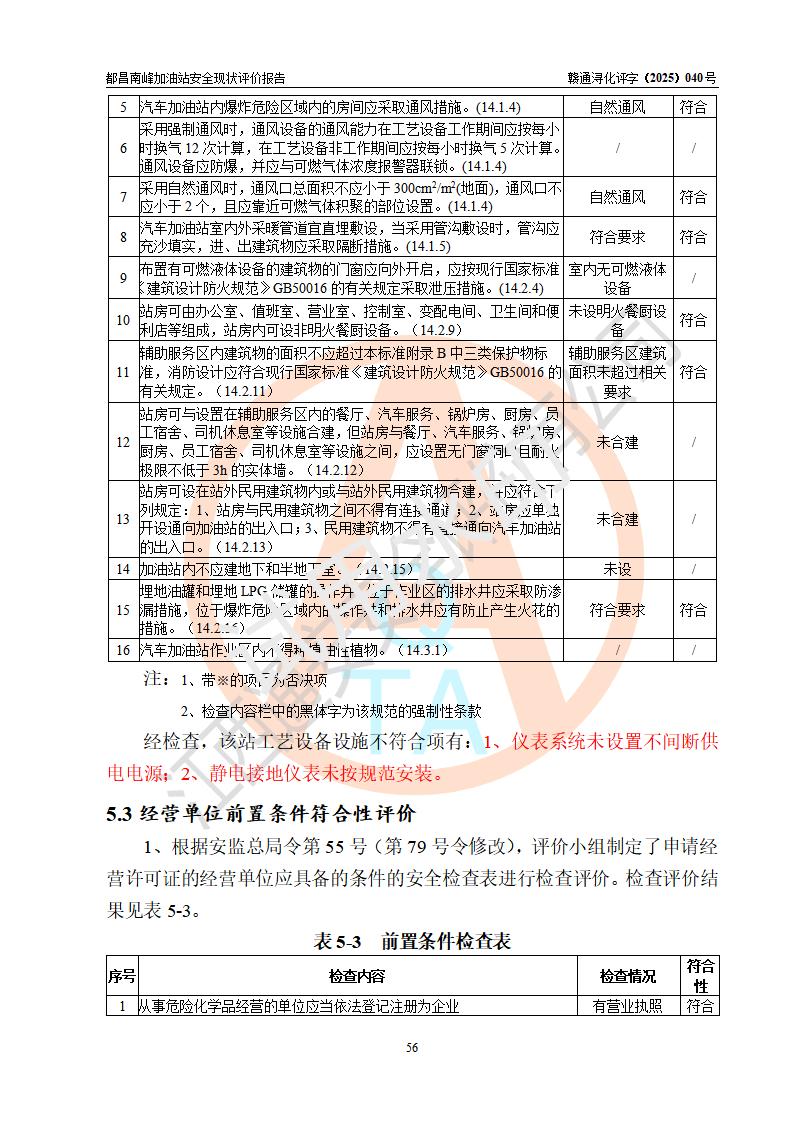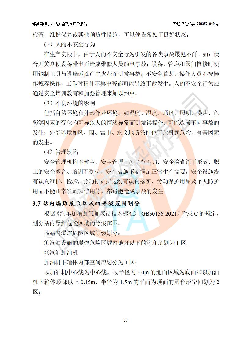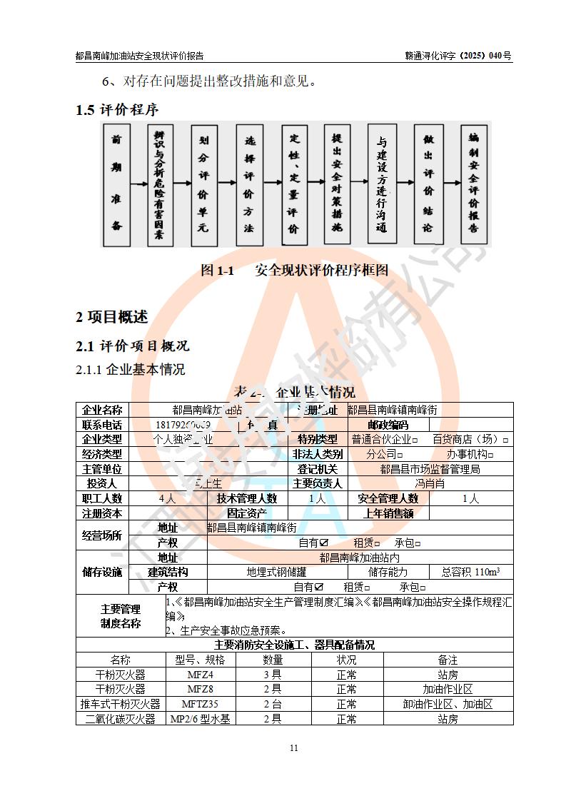 都昌南峰加油站是一家专门从事成品油零售经营的个人独资企业,投资人冯上生,经营场所位于都昌县南峰镇南峰街。该加油站现有从业人员4人,其中安全管理人员1人,主要负责人冯肖肖。 该加油站占地面积约520m2,站区内设置有2台双枪程控燃油加油机及配套的工艺管线、50m3双层0#柴油储罐1台、30m3双层92#汽油储罐1台、30m3双层95#汽油储罐1台,油品储罐总容积为110m3(折算成汽油为85m3),。按现行《汽车加油加气加氢站技术标准》对加油站的等级划分原则,该站属于三级加油站。 该站由九江市行政审批局换发《危险化学品经营许可证》(证号:赣九行审经(甲)字[2022]000075号),**期限2022年06月24日至2025年06月23日。 |