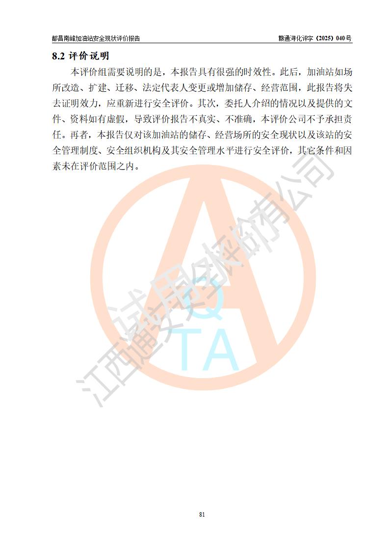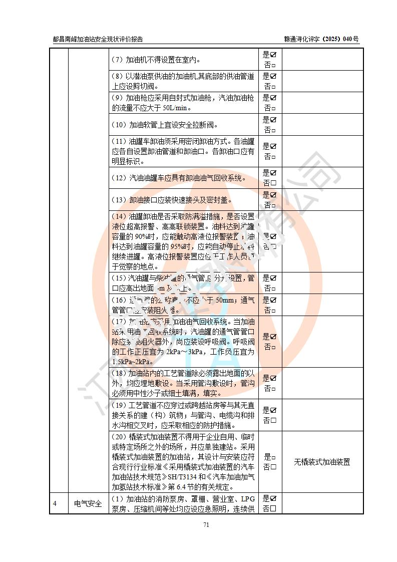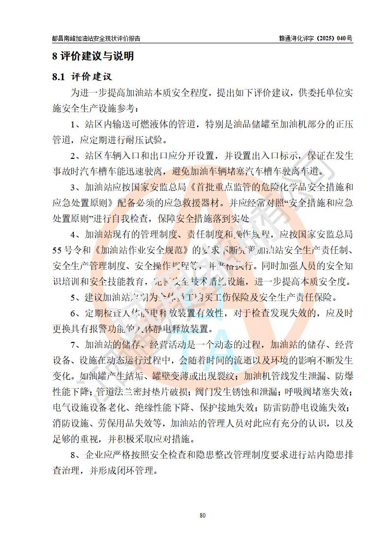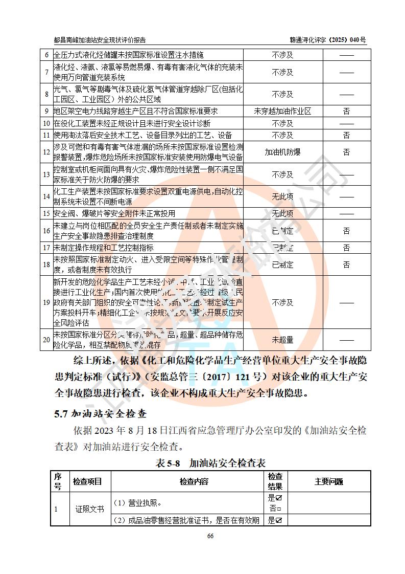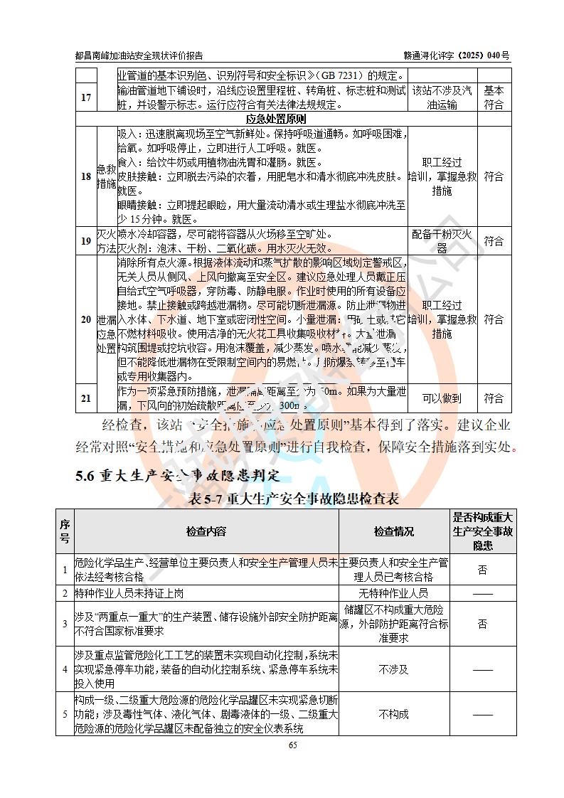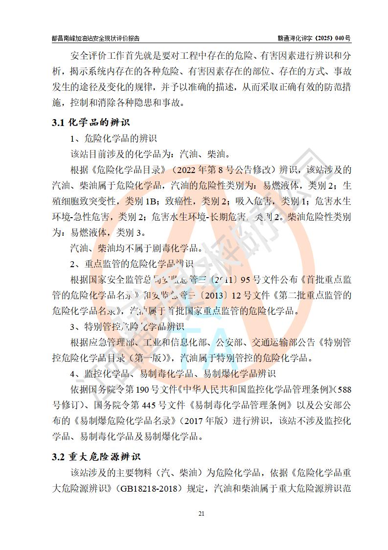 都昌南峰加油站是一家专门从事成品油零售经营的个人独资企业,投资人冯上生,经营场所位于都昌县南峰镇南峰街。该加油站现有从业人员4人,其中安全管理人员1人,主要负责人冯肖肖。 该加油站占地面积约520m2,站区内设置有2台双枪程控燃油加油机及配套的工艺管线、50m3双层0#柴油储罐1台、30m3双层92#汽油储罐1台、30m3双层95#汽油储罐1台,油品储罐总容积为110m3(折算成汽油为85m3),。按现行《汽车加油加气加氢站技术标准》对加油站的等级划分原则,该站属于三级加油站。 该站由九江市行政审批局换发《危险化学品经营许可证》(证号:赣九行审经(甲)字[2022]000075号),**期限2022年06月24日至2025年06月23日。 |