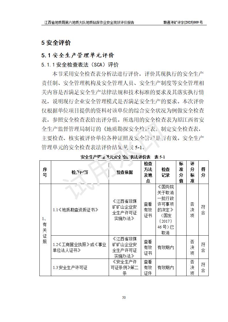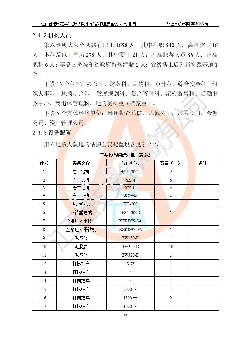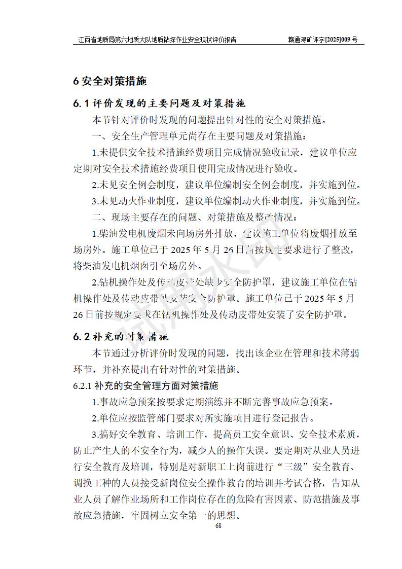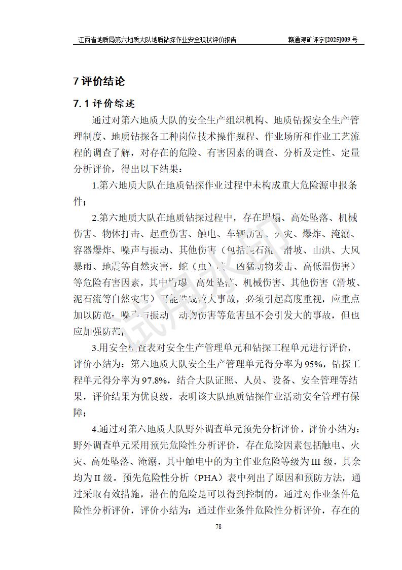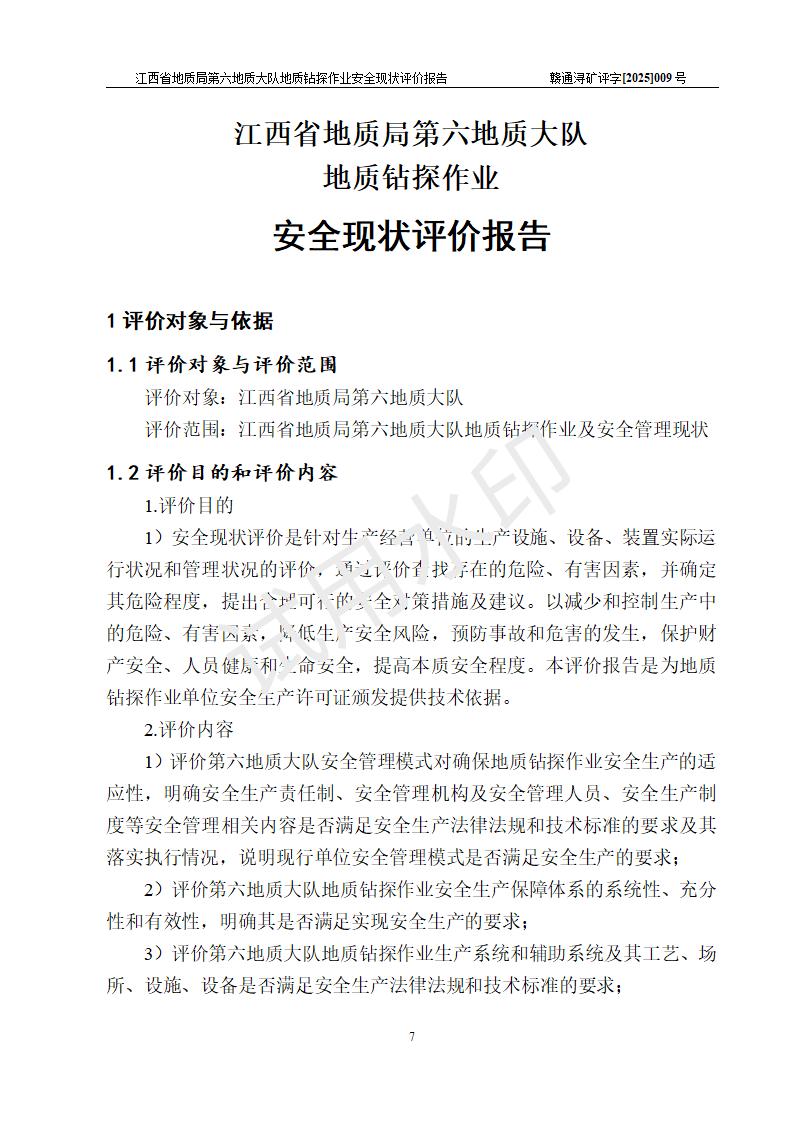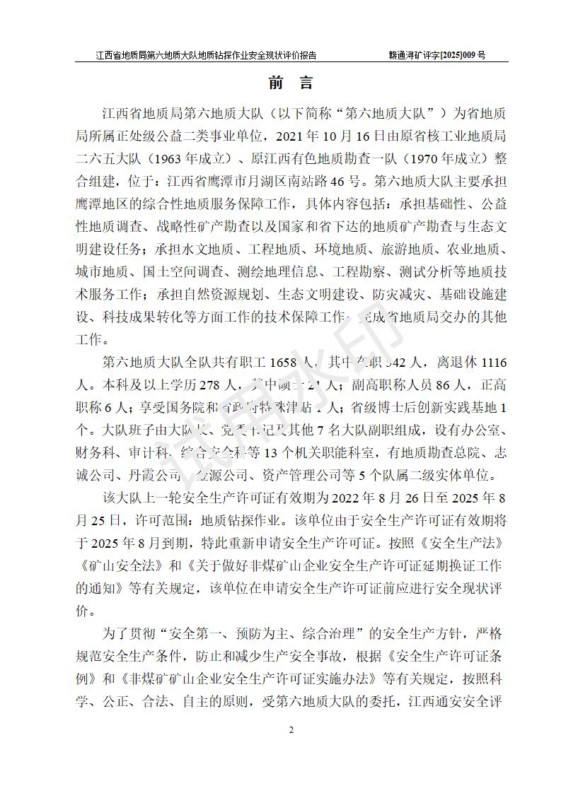 报告名称 | 江西省地质局第六地质大队地质钻探作业安全现状评价报告 | |||||