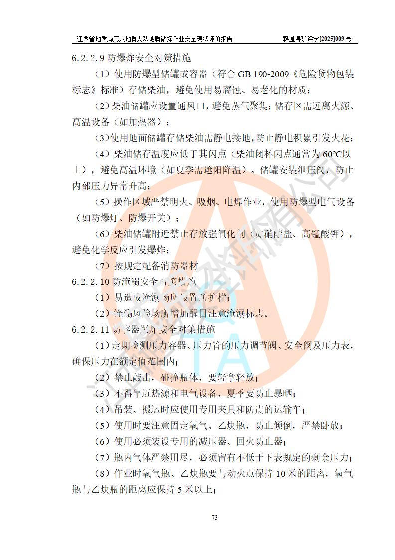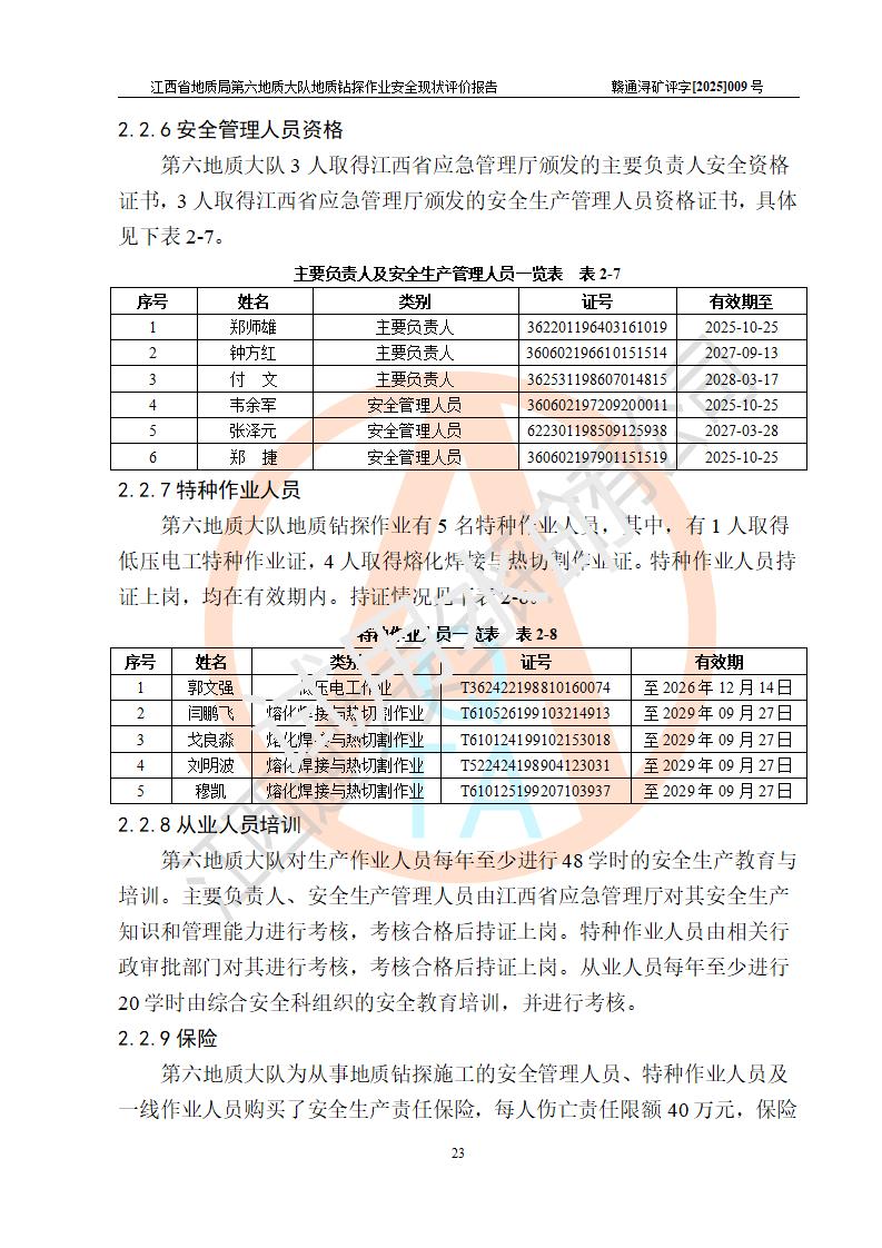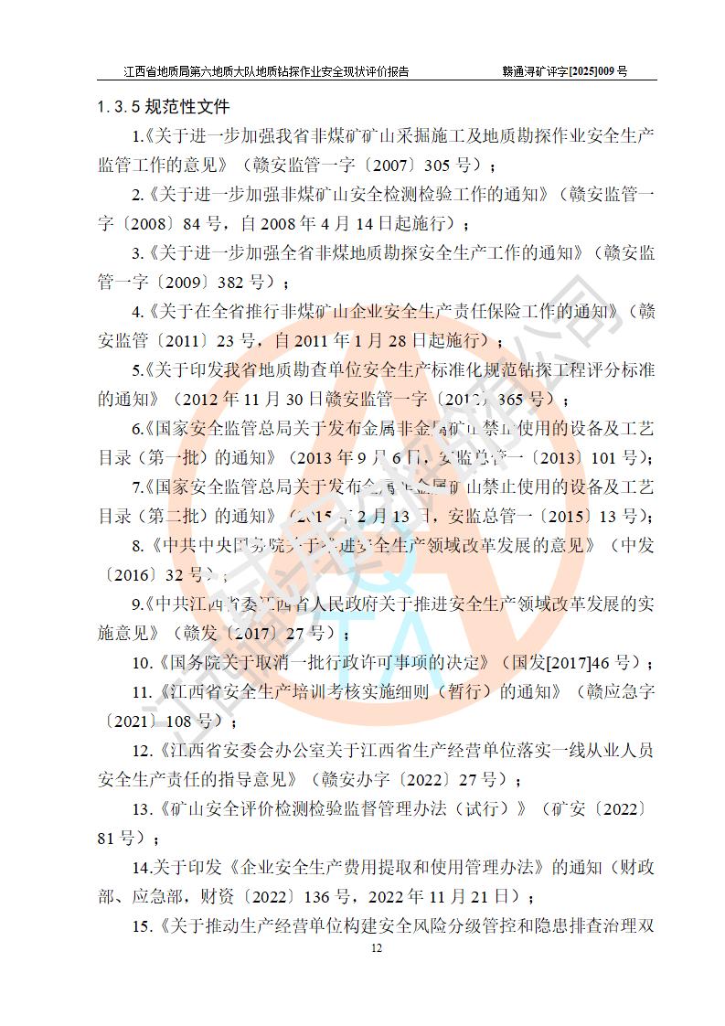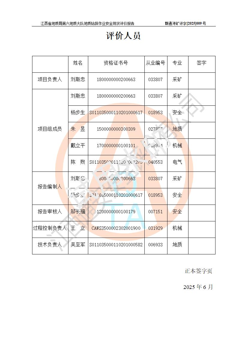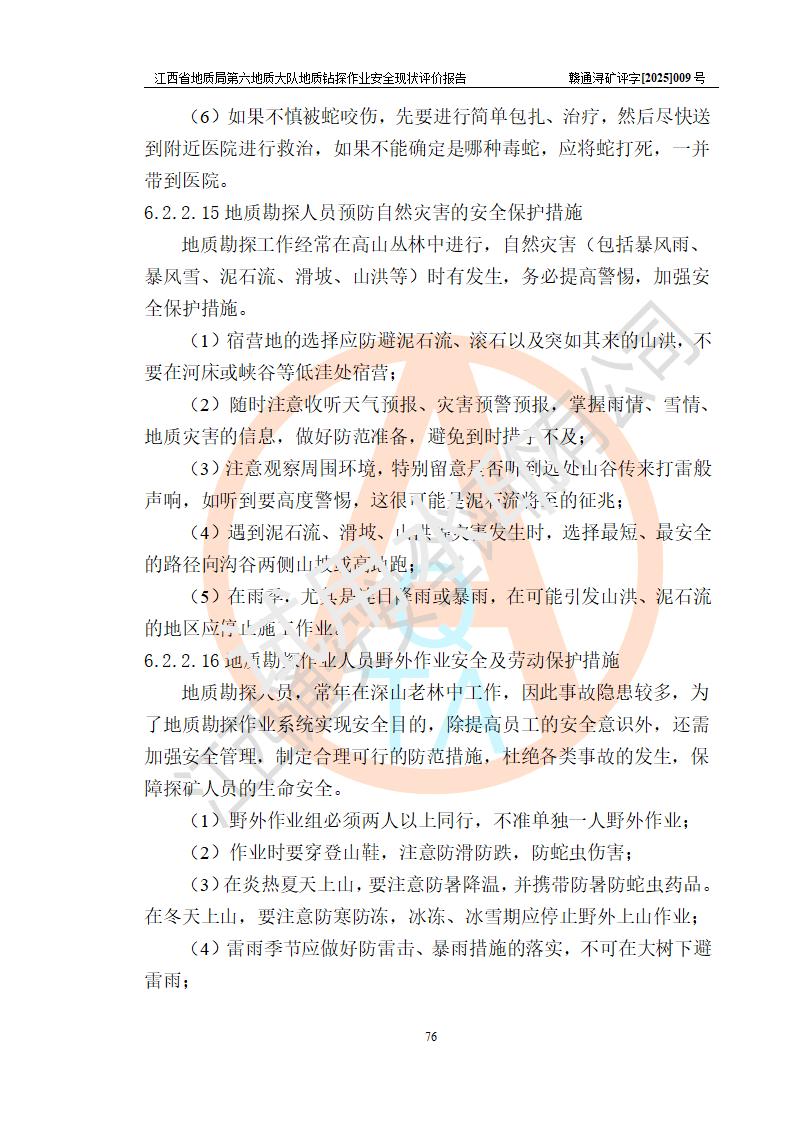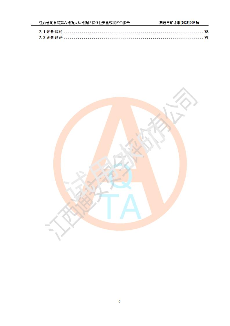 报告名称 | 江西省地质局第六地质大队地质钻探作业安全现状评价报告 | |||||