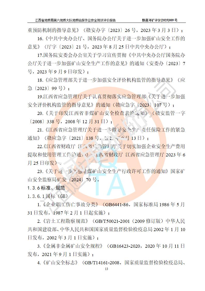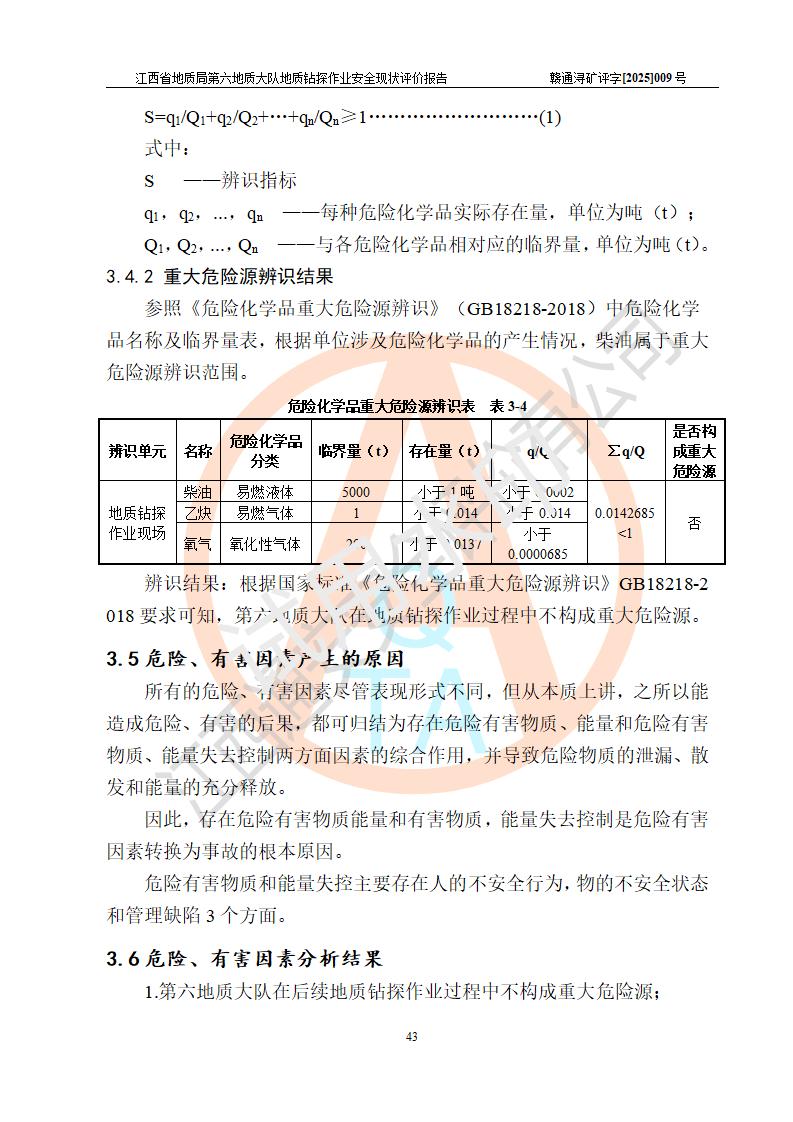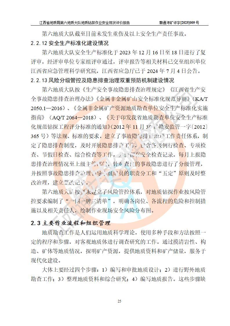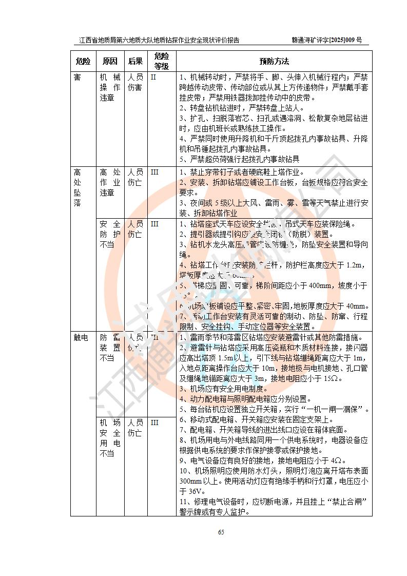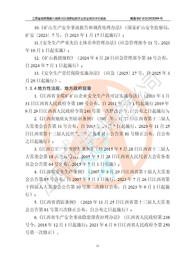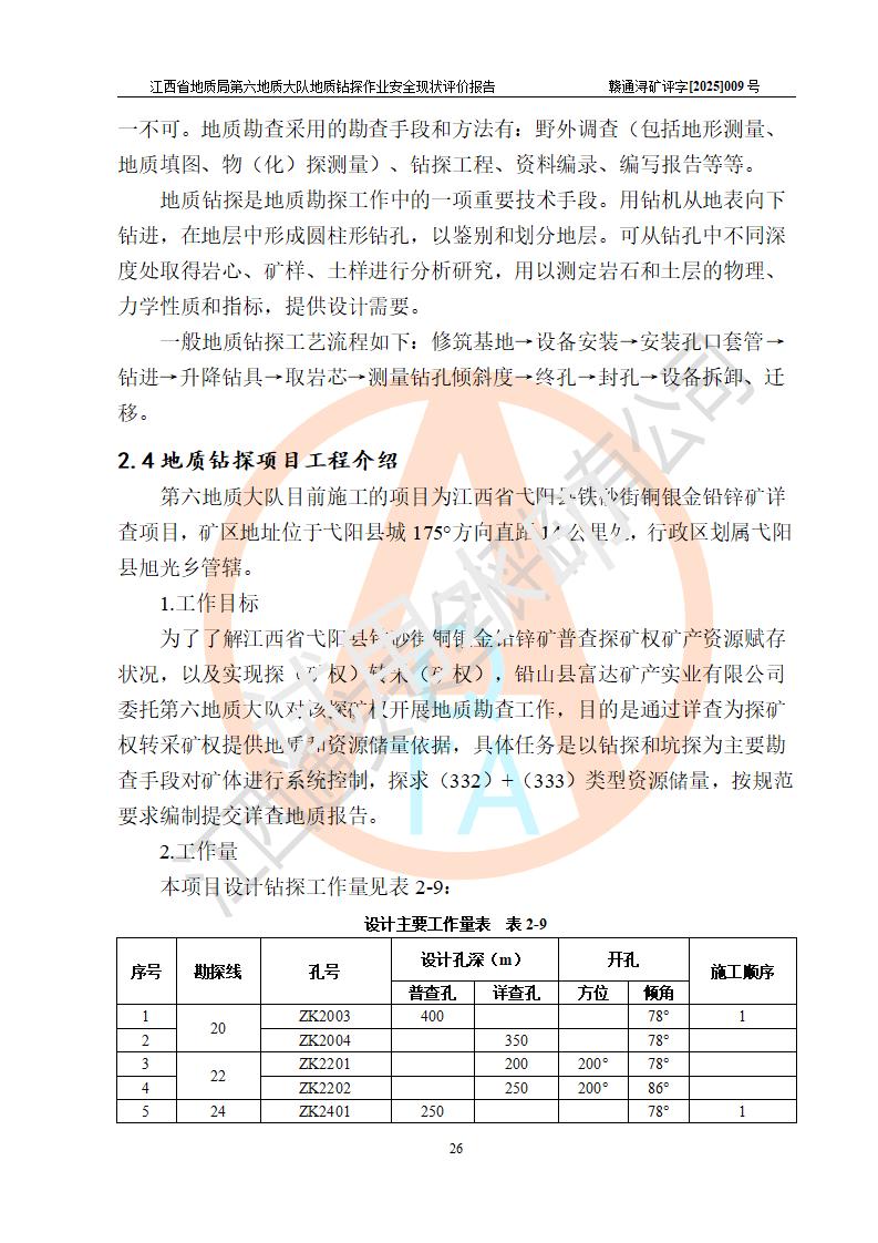报告名称 | 江西省地质局第六地质大队地质钻探作业安全现状评价报告 | |||||