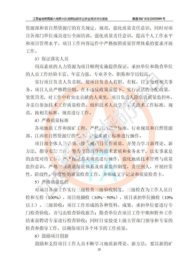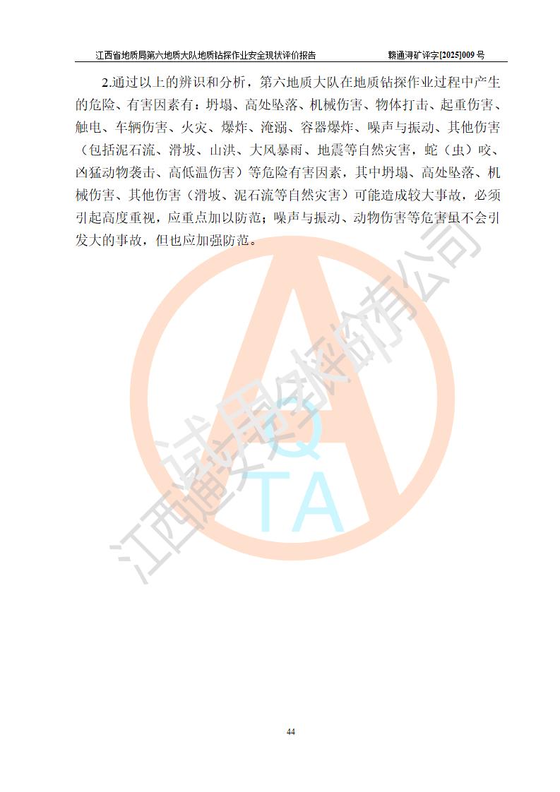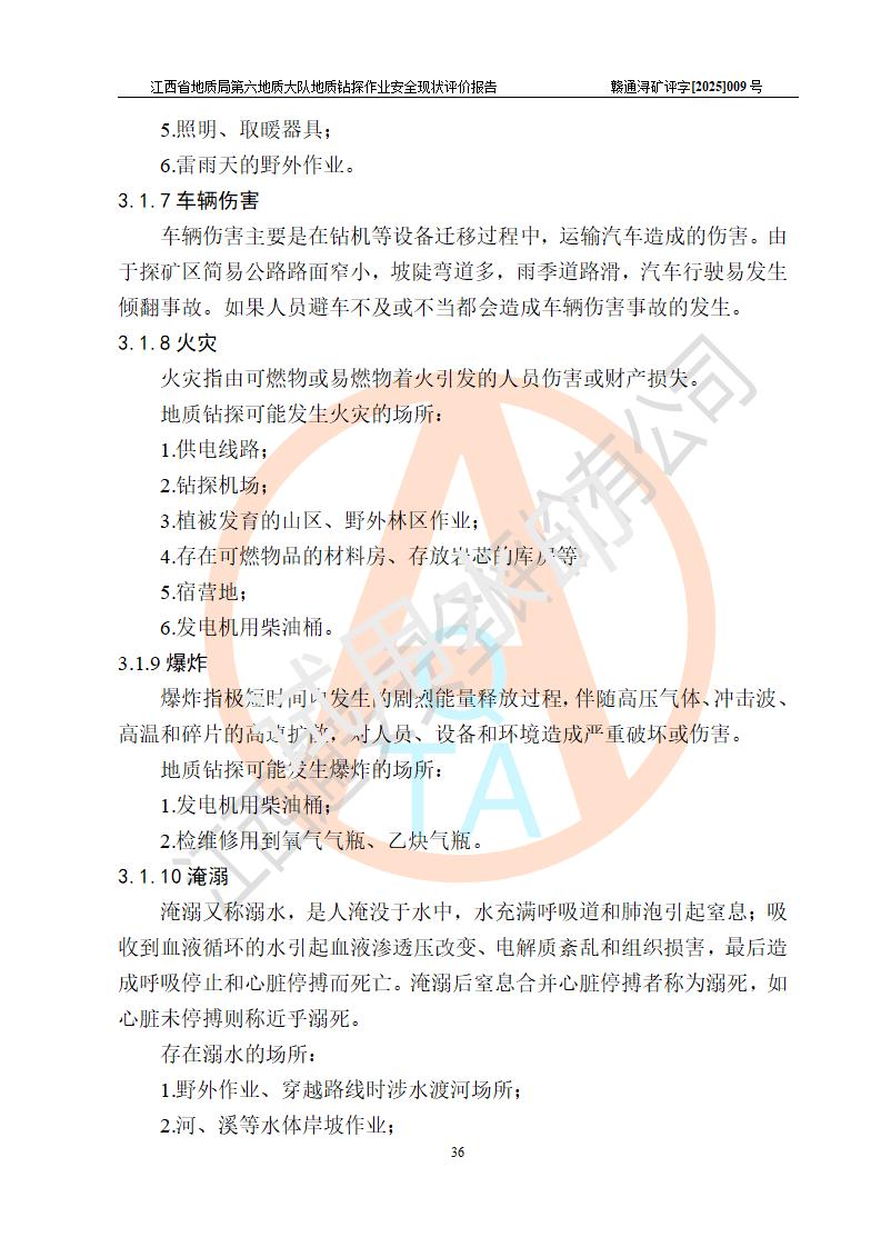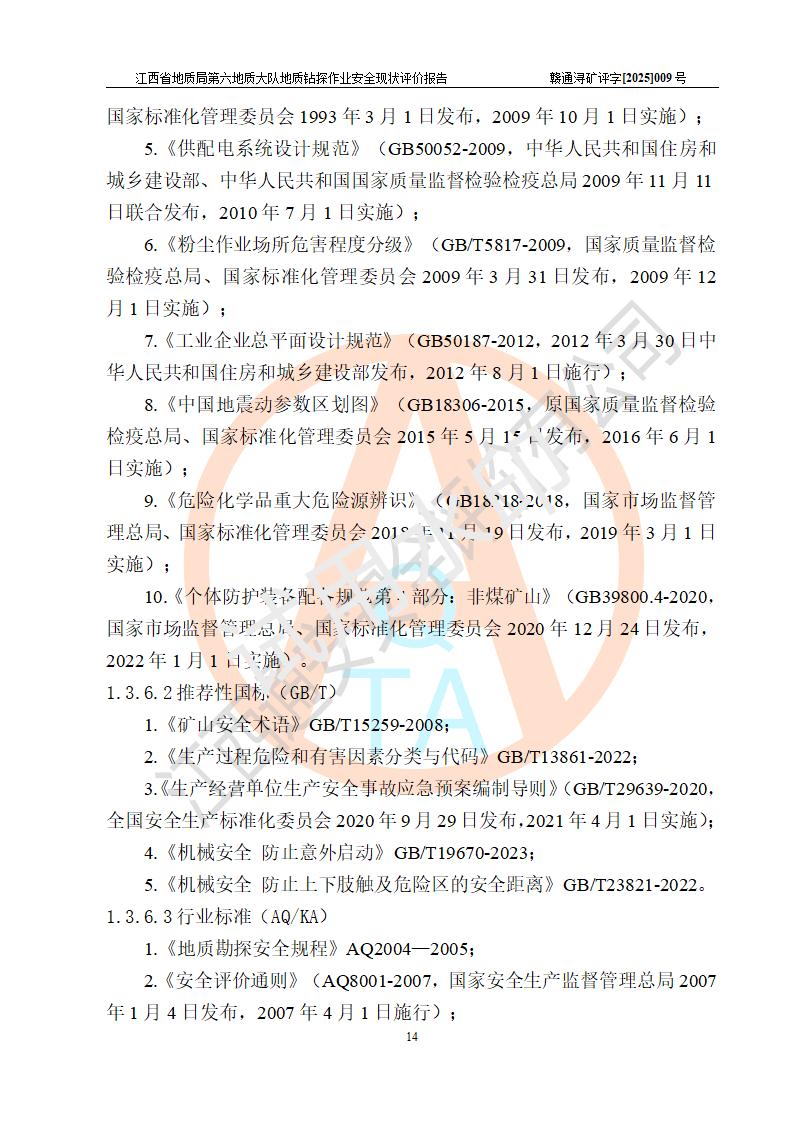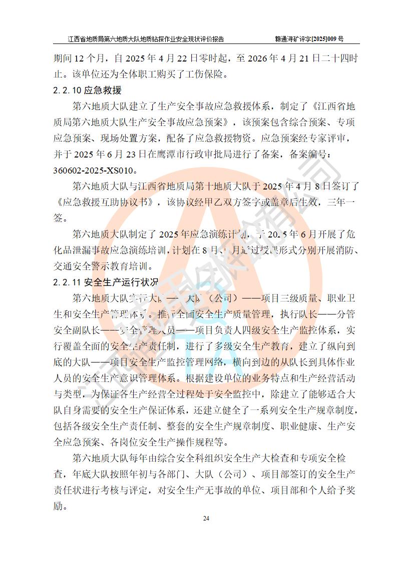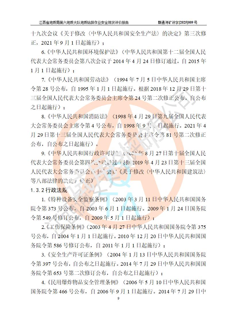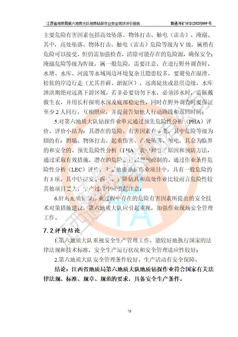 报告名称 | 江西省地质局第六地质大队地质钻探作业安全现状评价报告 | |||||