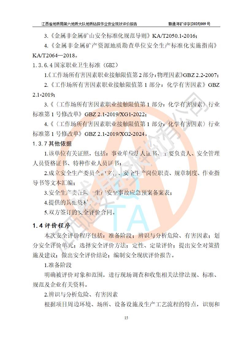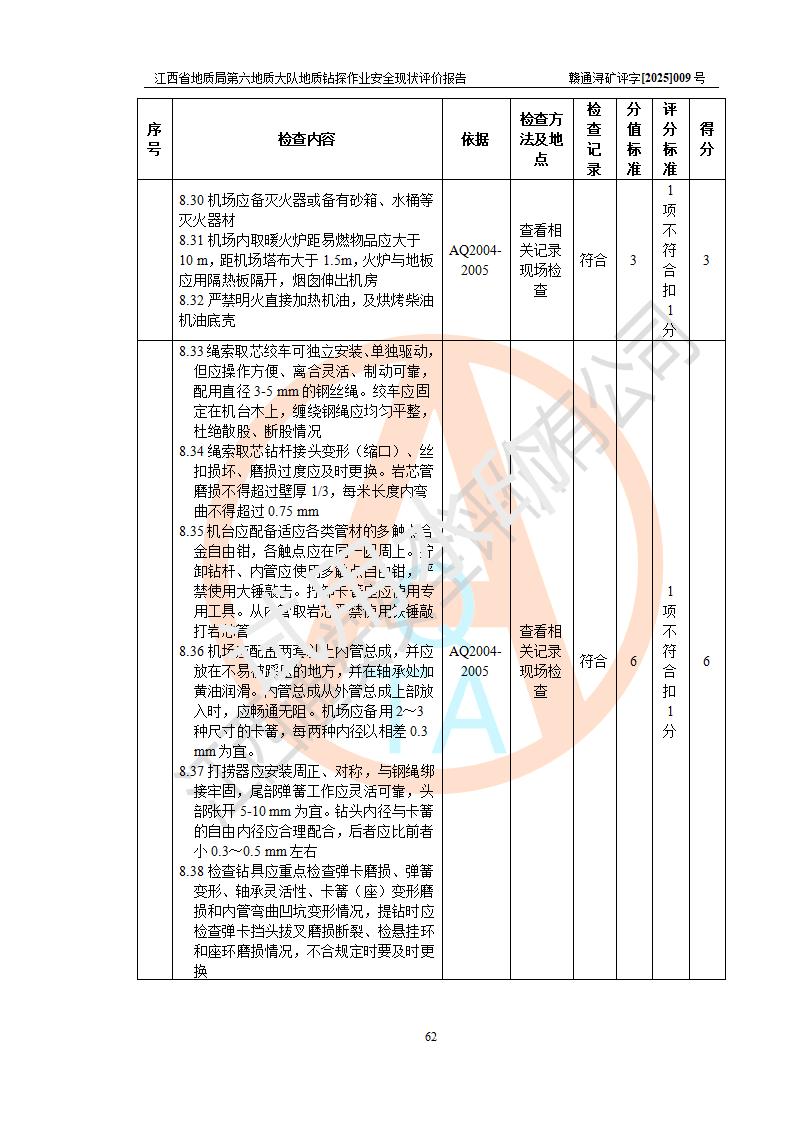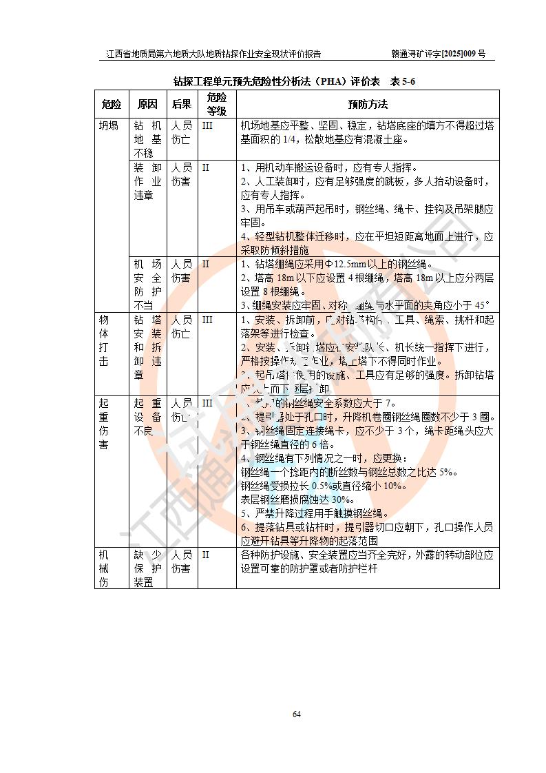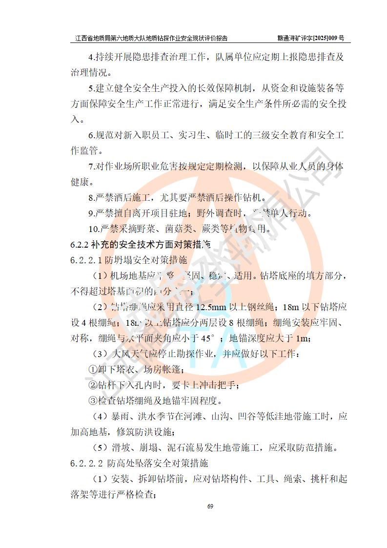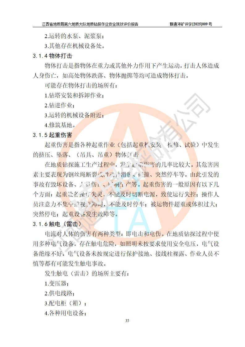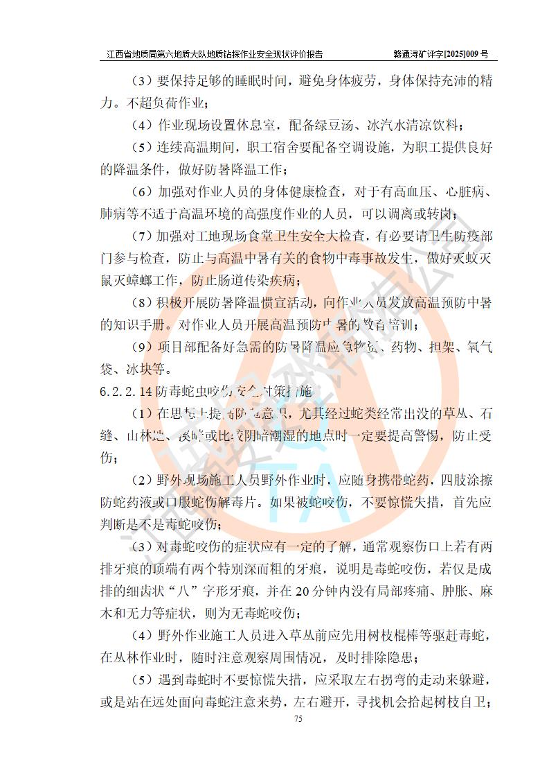 报告名称 | 江西省地质局第六地质大队地质钻探作业安全现状评价报告 | |||||