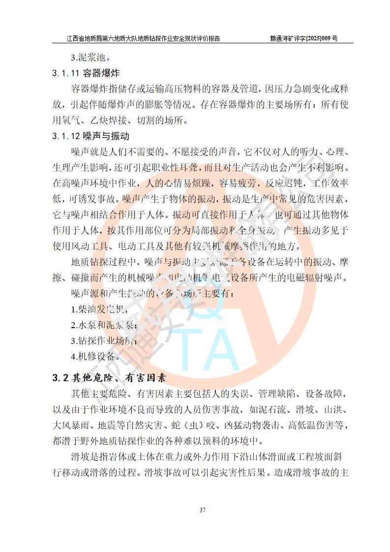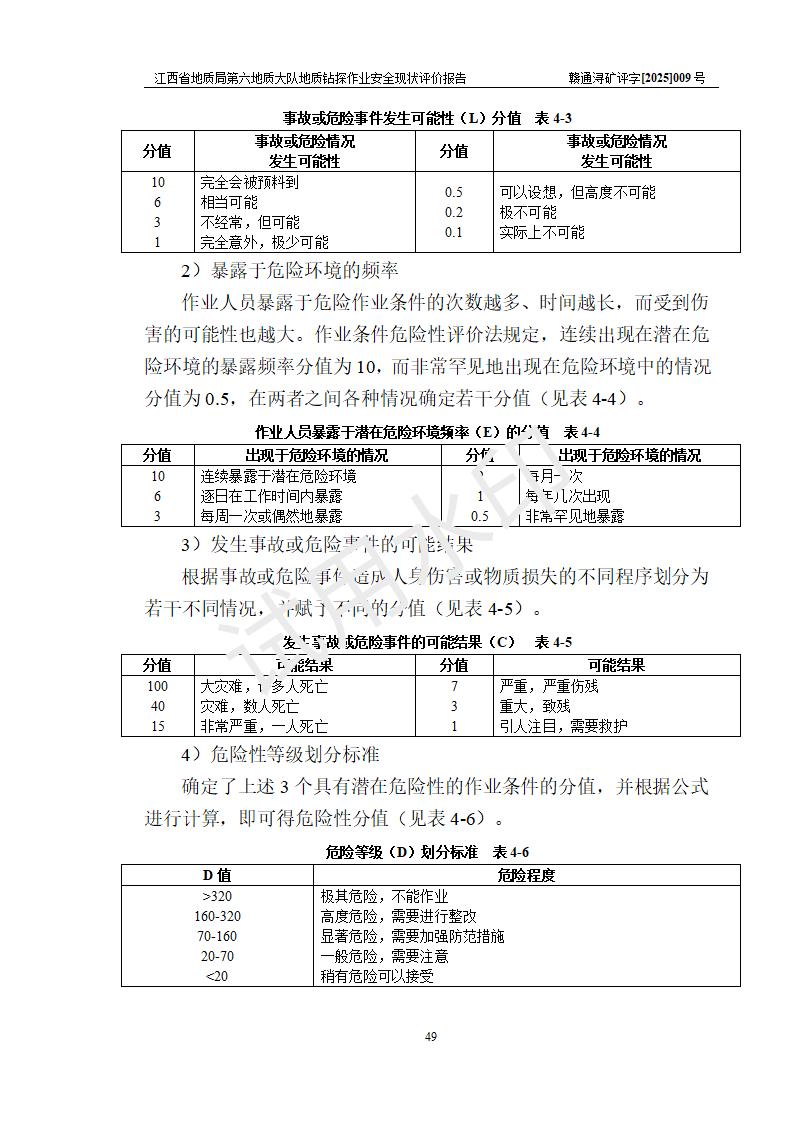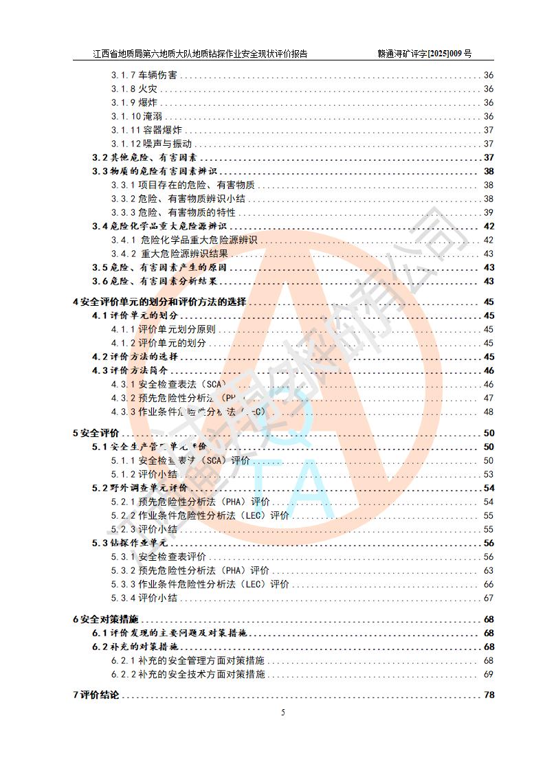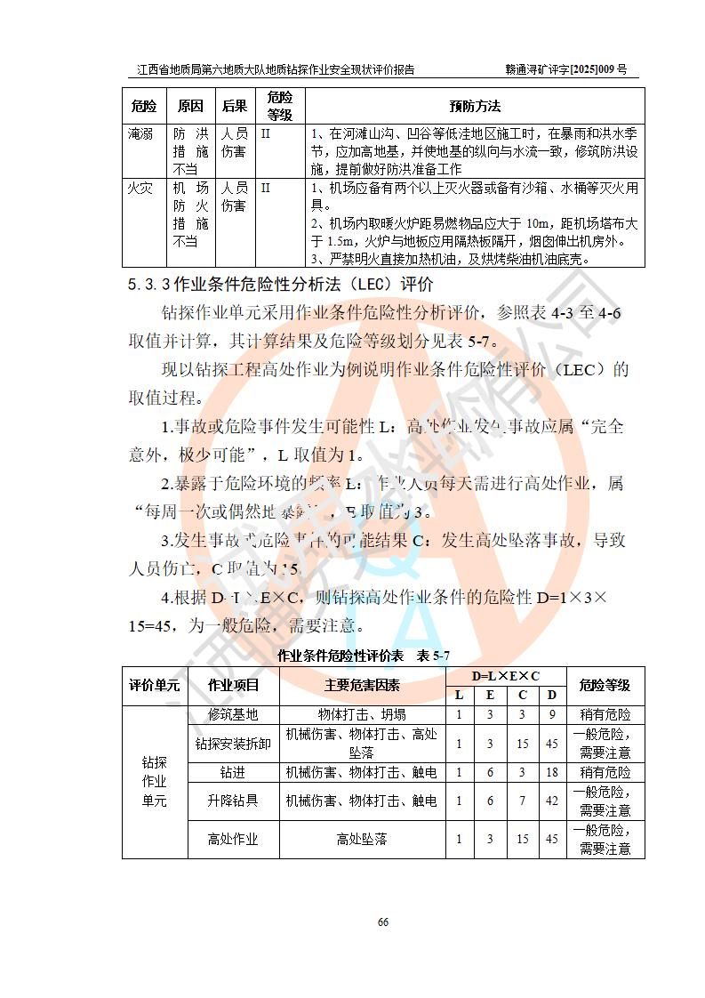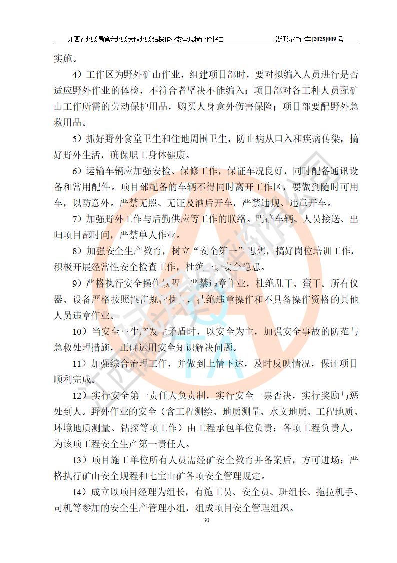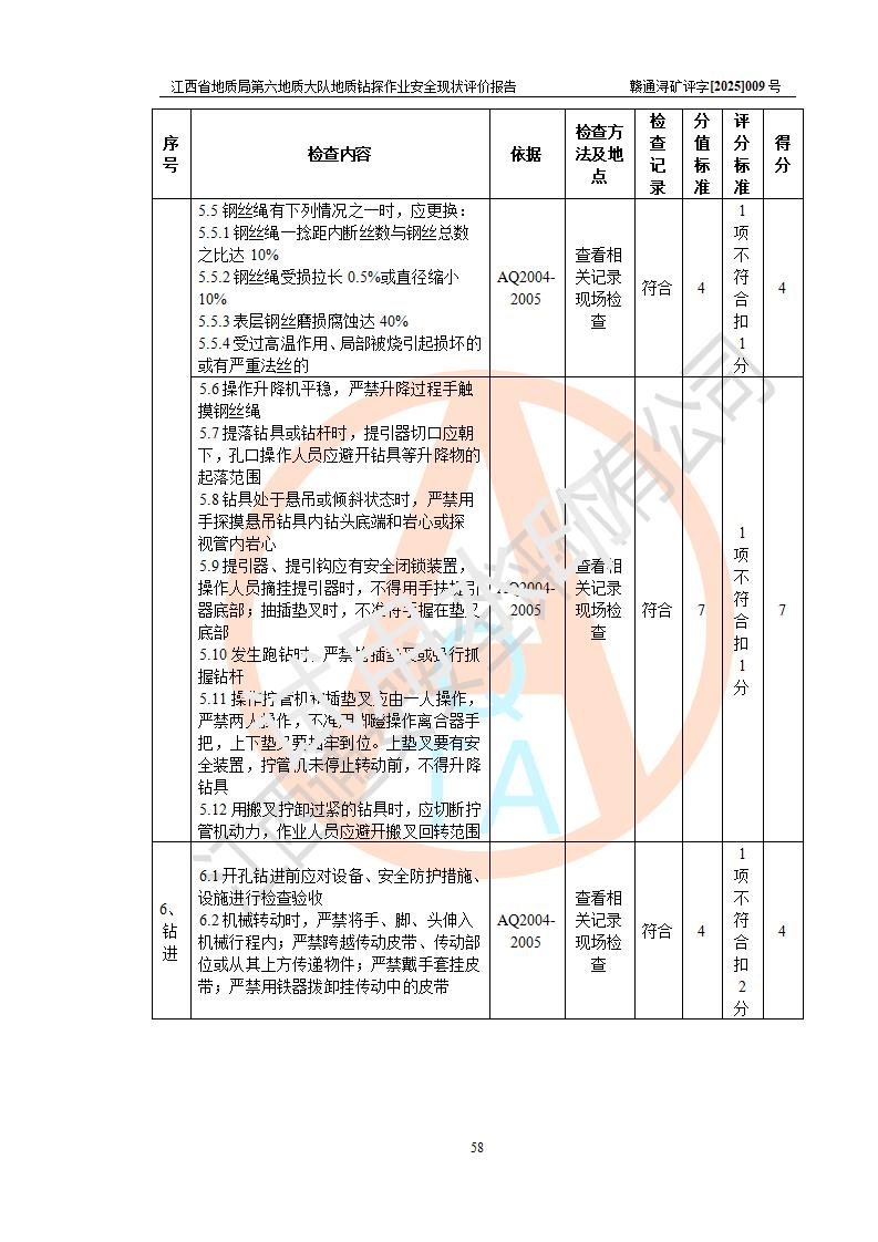 报告名称 | 江西省地质局第六地质大队地质钻探作业安全现状评价报告 | |||||