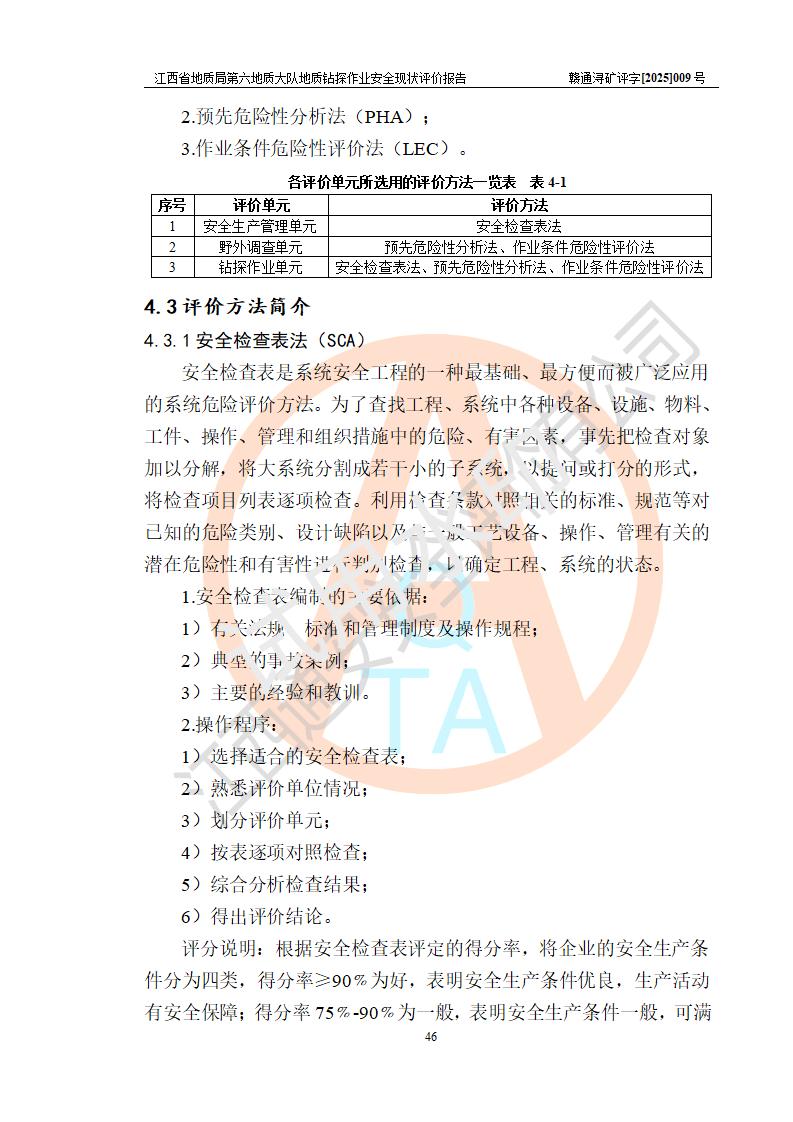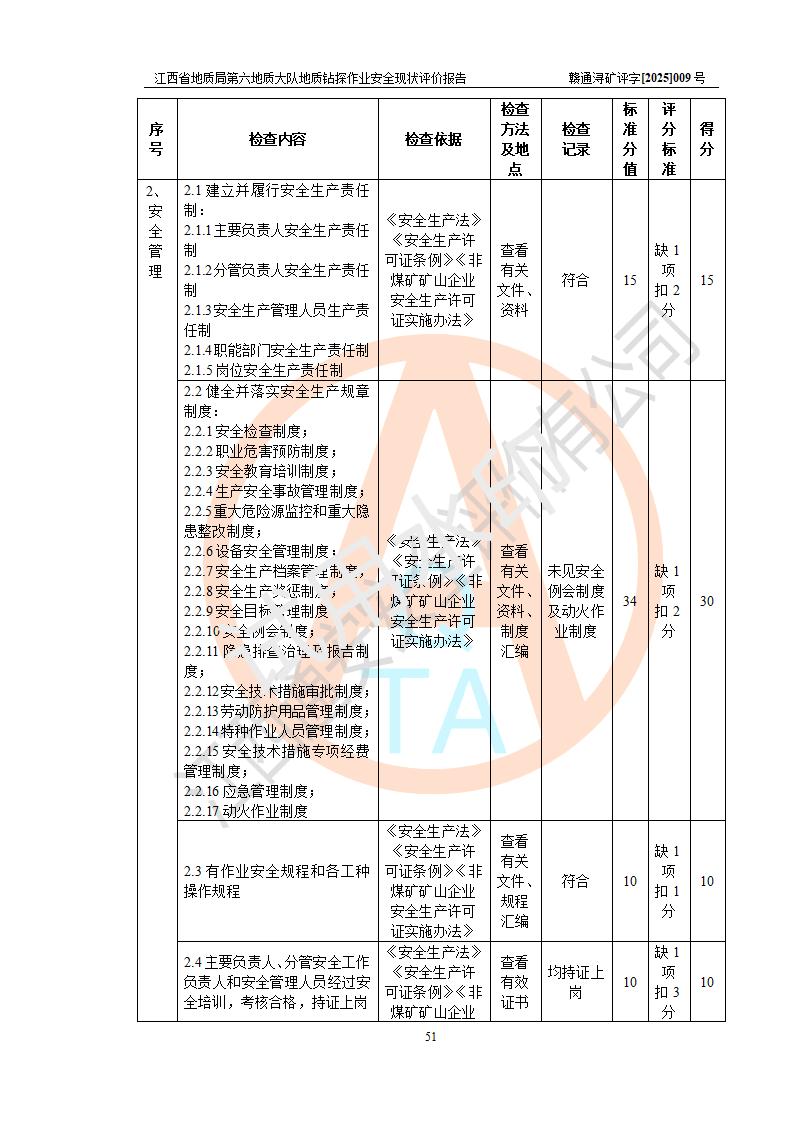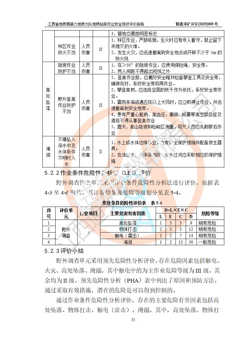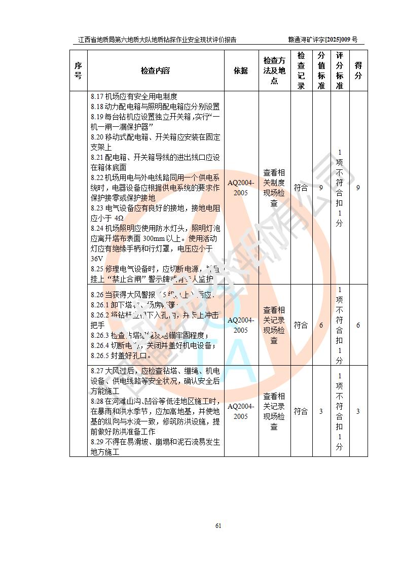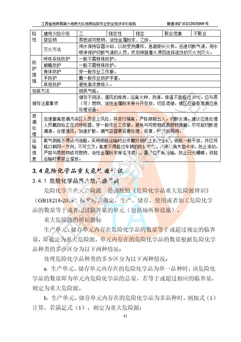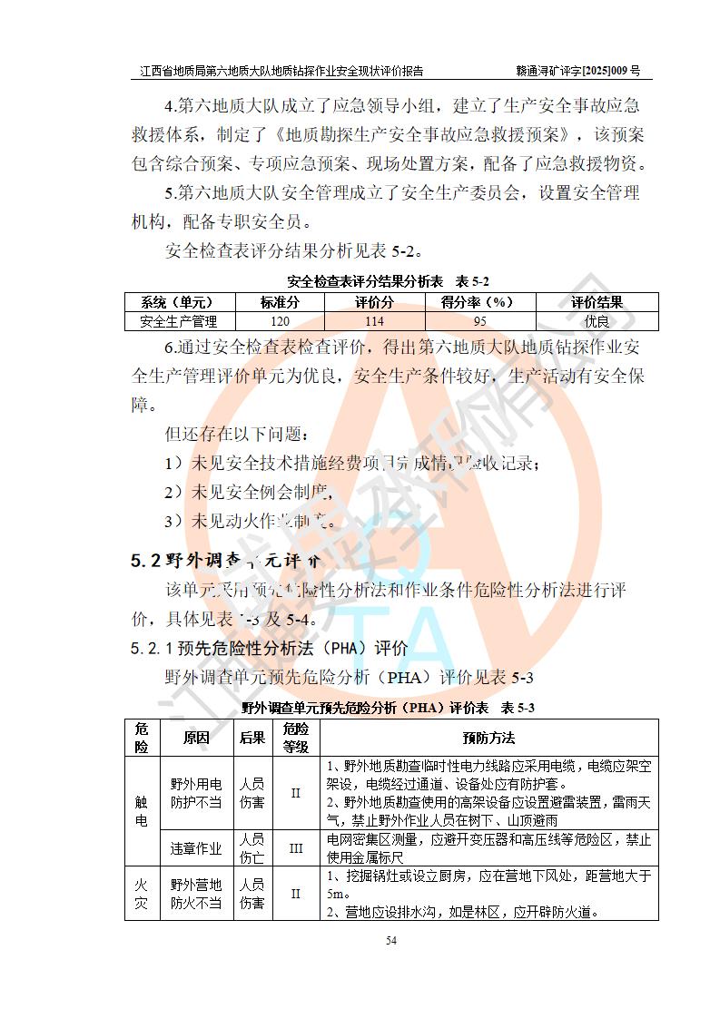 报告名称 | 江西省地质局第六地质大队地质钻探作业安全现状评价报告 | |||||