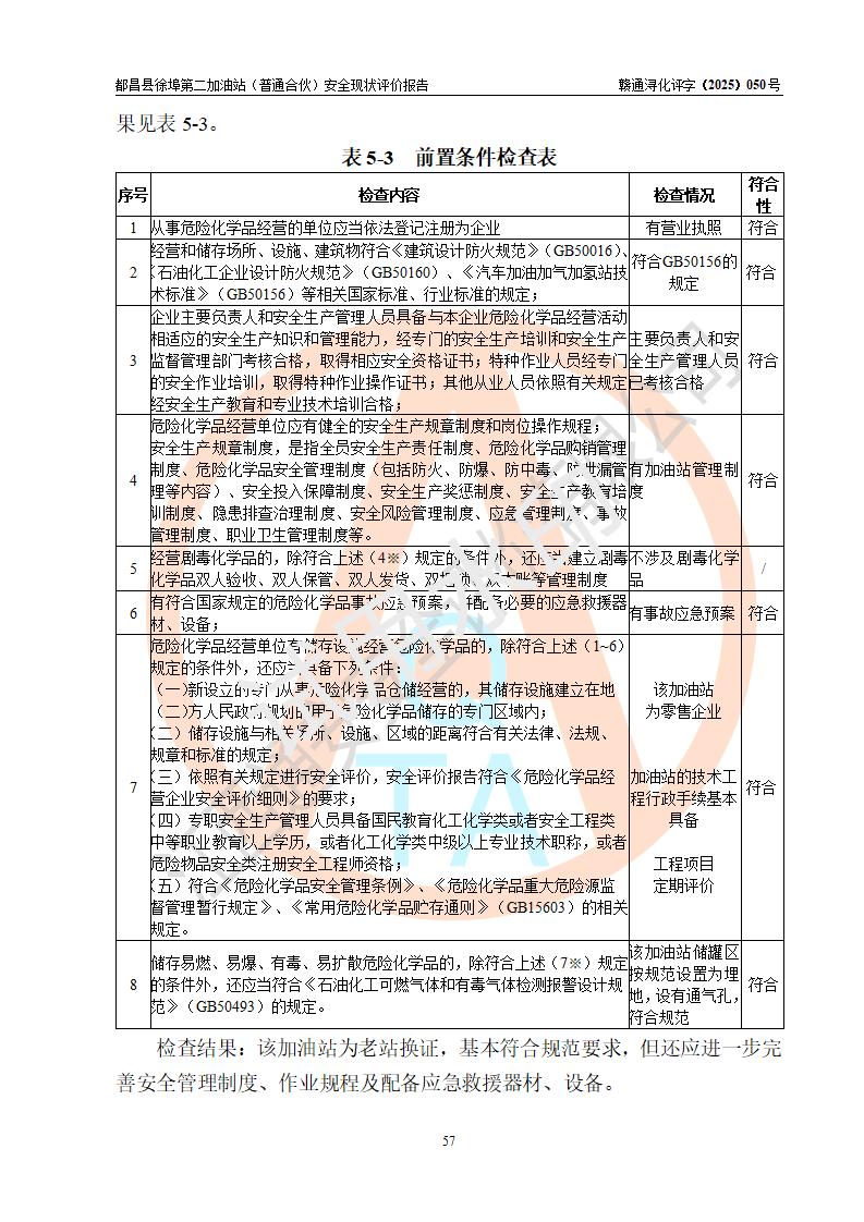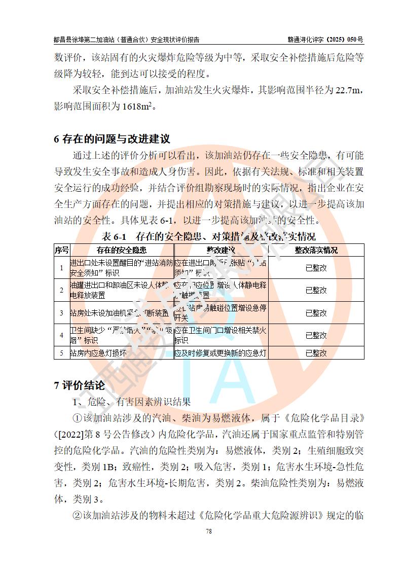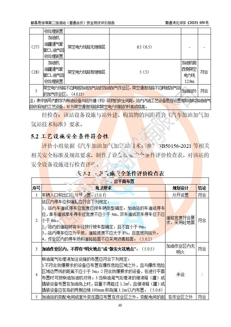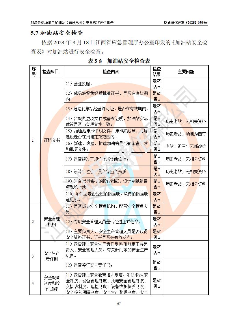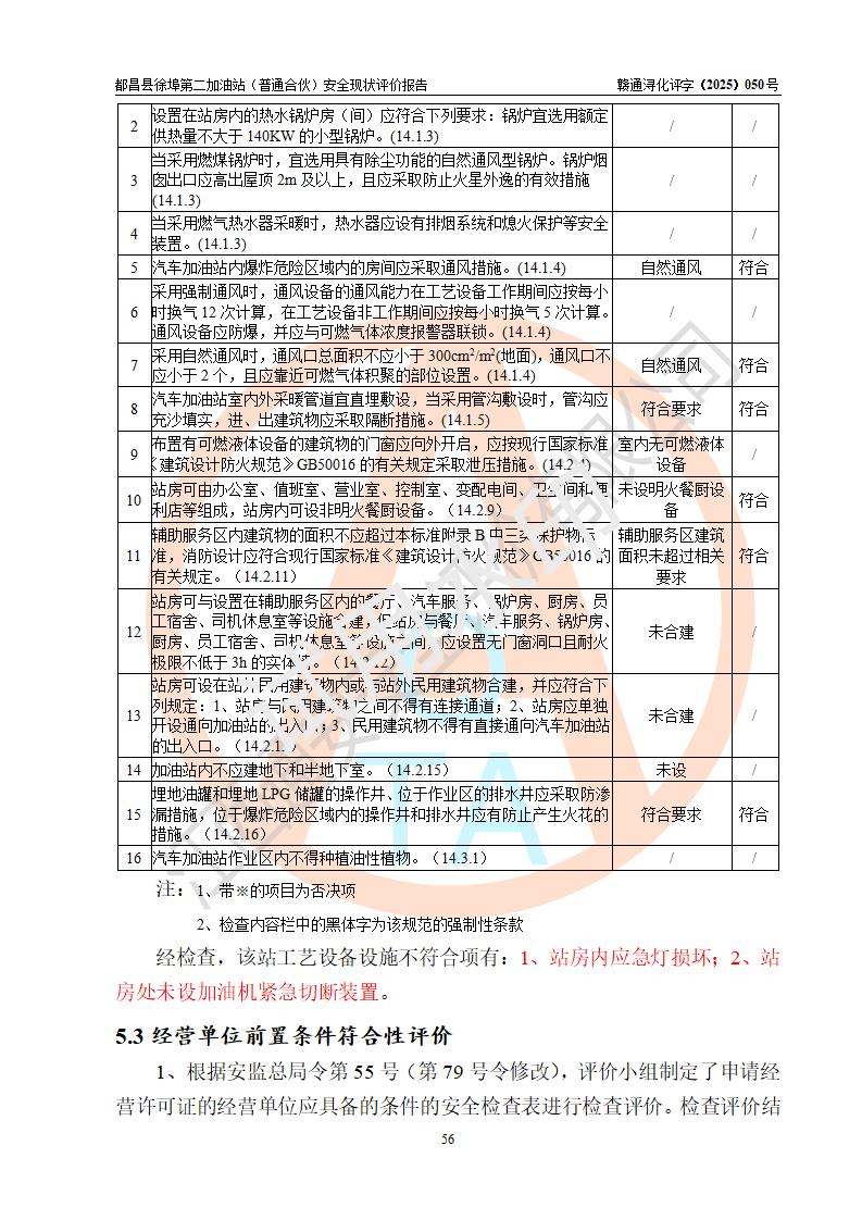 都昌县徐埠第二加油站(普通合伙)是一家专门从事成品油零售经营的普通合伙企业,执行事务合伙人:曹建平,经营场所位于江西省九江市都昌县徐埠镇徐埠村委会上街七组。该加油站现有从业人员6人,其中安全管理人员1人,主要负责人方锦英。 该加油站站区占地面积2100m2,站区内设置有3台双枪程控燃油加油机、1台单枪程控燃油加油机及配套的工艺管线、30m3双层0#柴油储罐1台、30m3双层92#汽油储罐2台、30m3双层95#汽油储罐1台,油品储罐总容积为120m3(折算成汽油为105m3)。按现行《汽车加油加气加氢站技术标准》对加油站的等级划分原则,该站属于二级加油站。 该站由九江市行政审批局换发《危险化学品经营许可证》(证号:赣九行审经(甲)字[2022]000171号),**期限2022年10月18日至2025年10月17日。 |