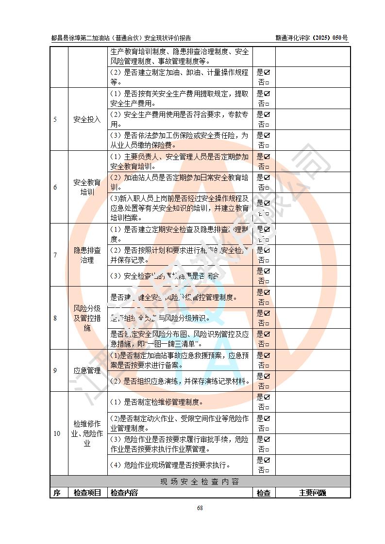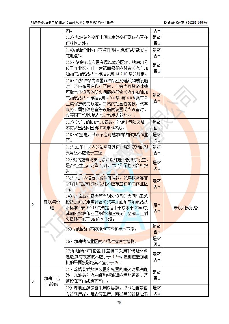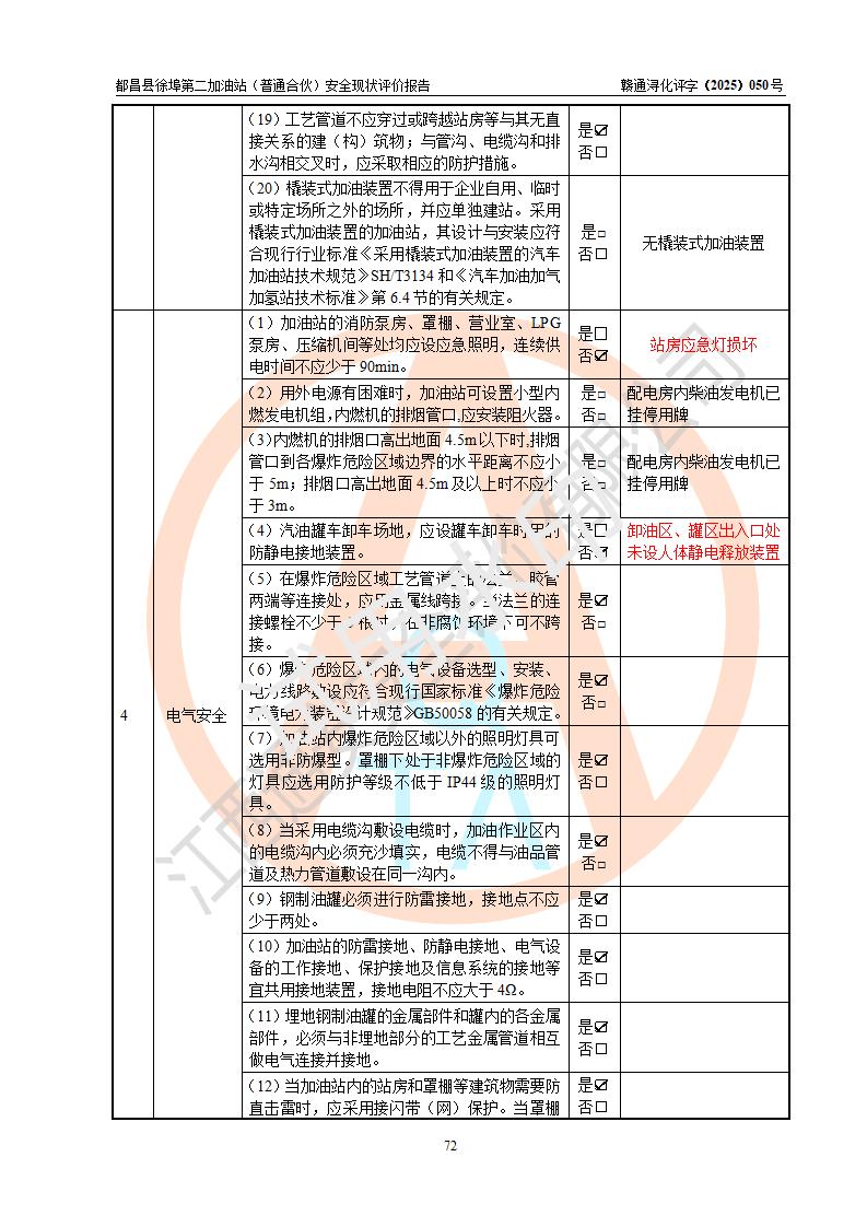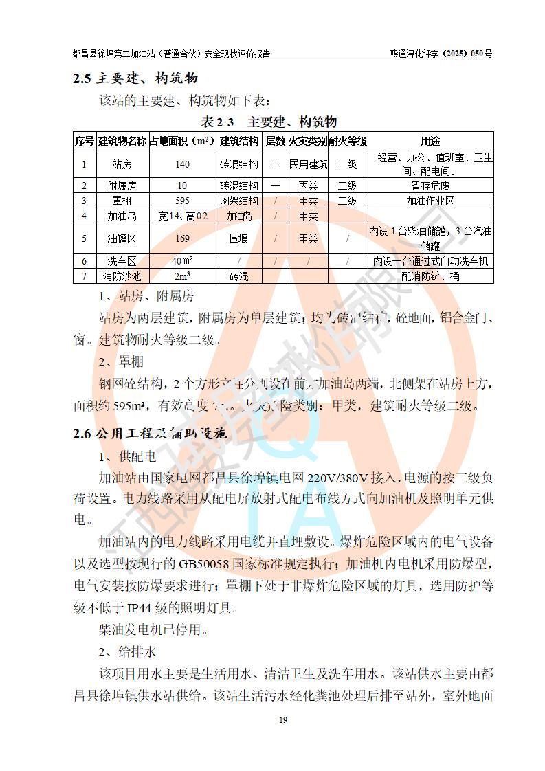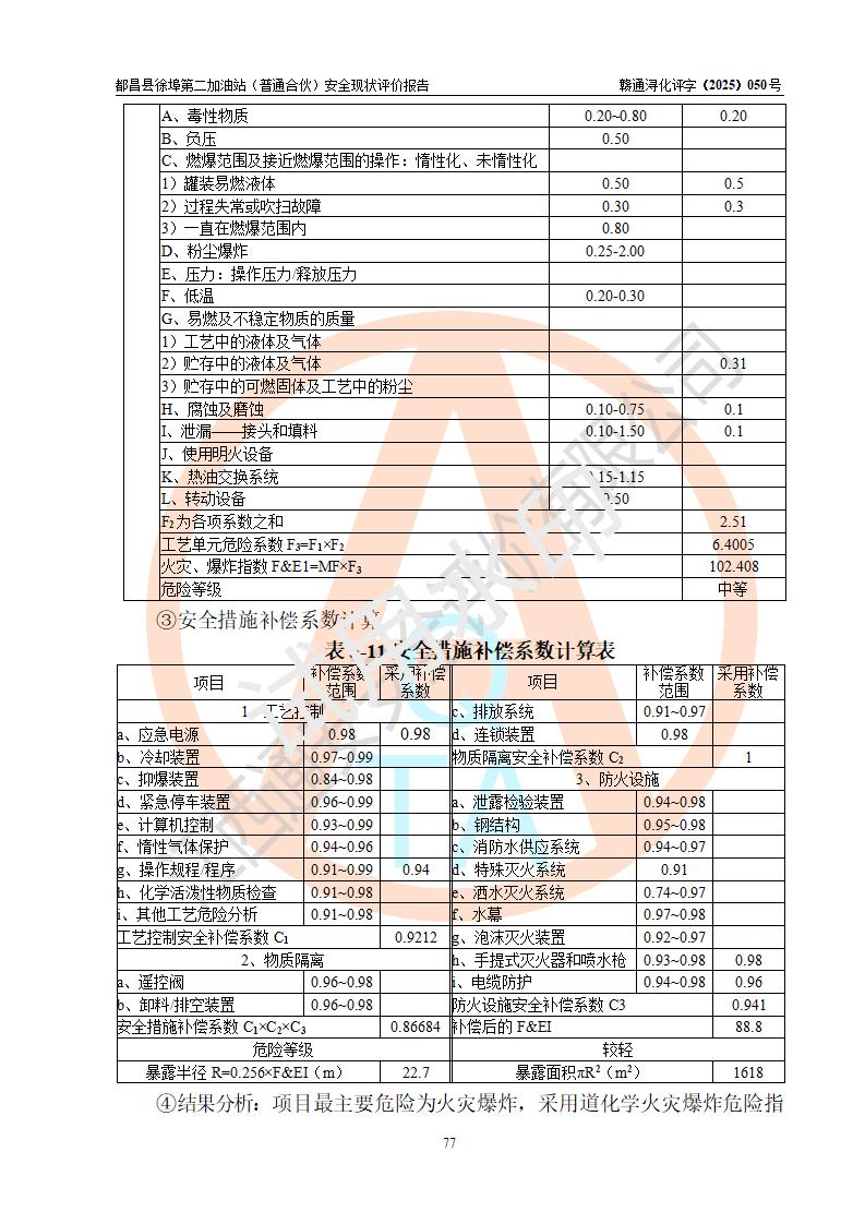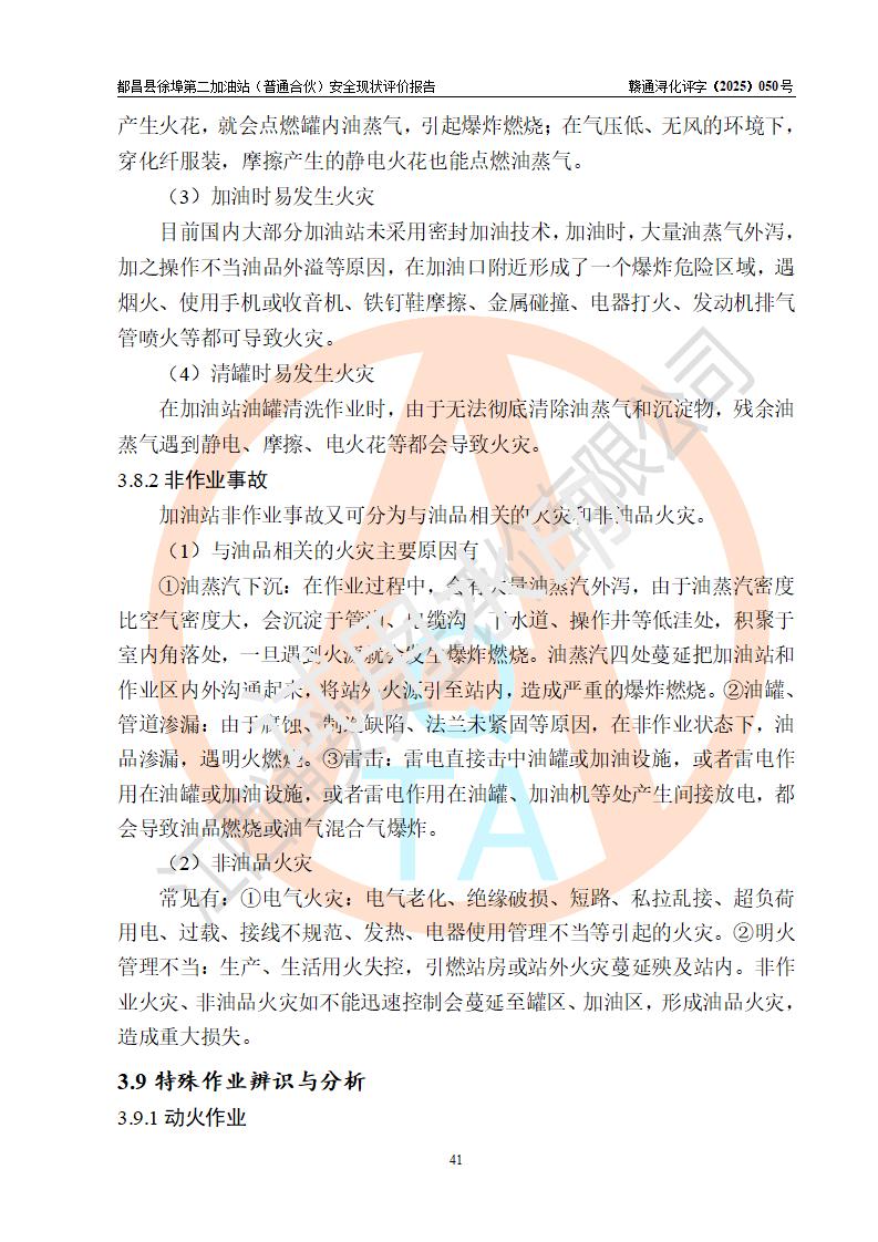 都昌县徐埠第二加油站(普通合伙)是一家专门从事成品油零售经营的普通合伙企业,执行事务合伙人:曹建平,经营场所位于江西省九江市都昌县徐埠镇徐埠村委会上街七组。该加油站现有从业人员6人,其中安全管理人员1人,主要负责人方锦英。 该加油站站区占地面积2100m2,站区内设置有3台双枪程控燃油加油机、1台单枪程控燃油加油机及配套的工艺管线、30m3双层0#柴油储罐1台、30m3双层92#汽油储罐2台、30m3双层95#汽油储罐1台,油品储罐总容积为120m3(折算成汽油为105m3)。按现行《汽车加油加气加氢站技术标准》对加油站的等级划分原则,该站属于二级加油站。 该站由九江市行政审批局换发《危险化学品经营许可证》(证号:赣九行审经(甲)字[2022]000171号),**期限2022年10月18日至2025年10月17日。 |