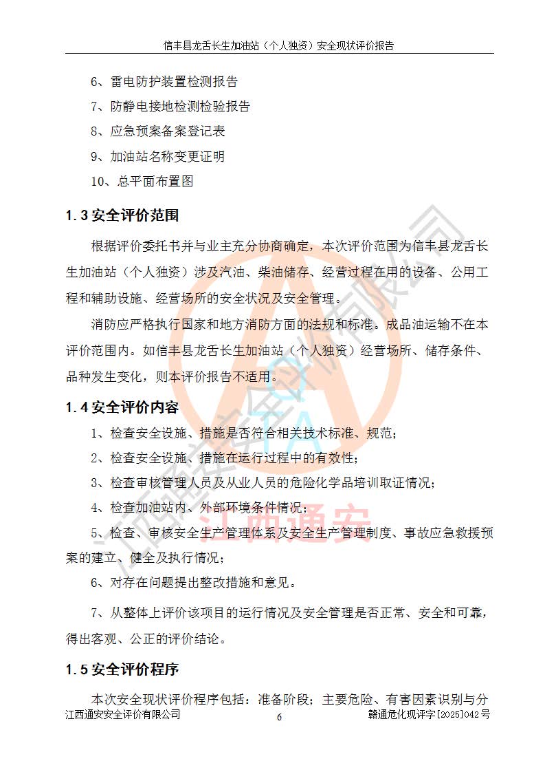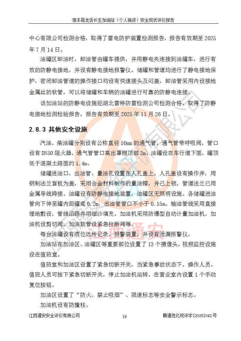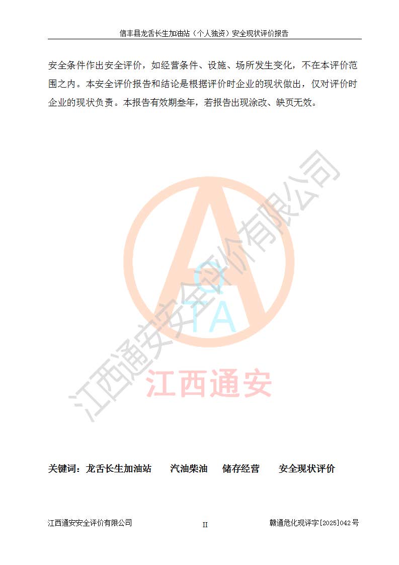 评价报告名称 | 信丰县龙舌长生加油站(个人独资)安全现状评价报告 | |||