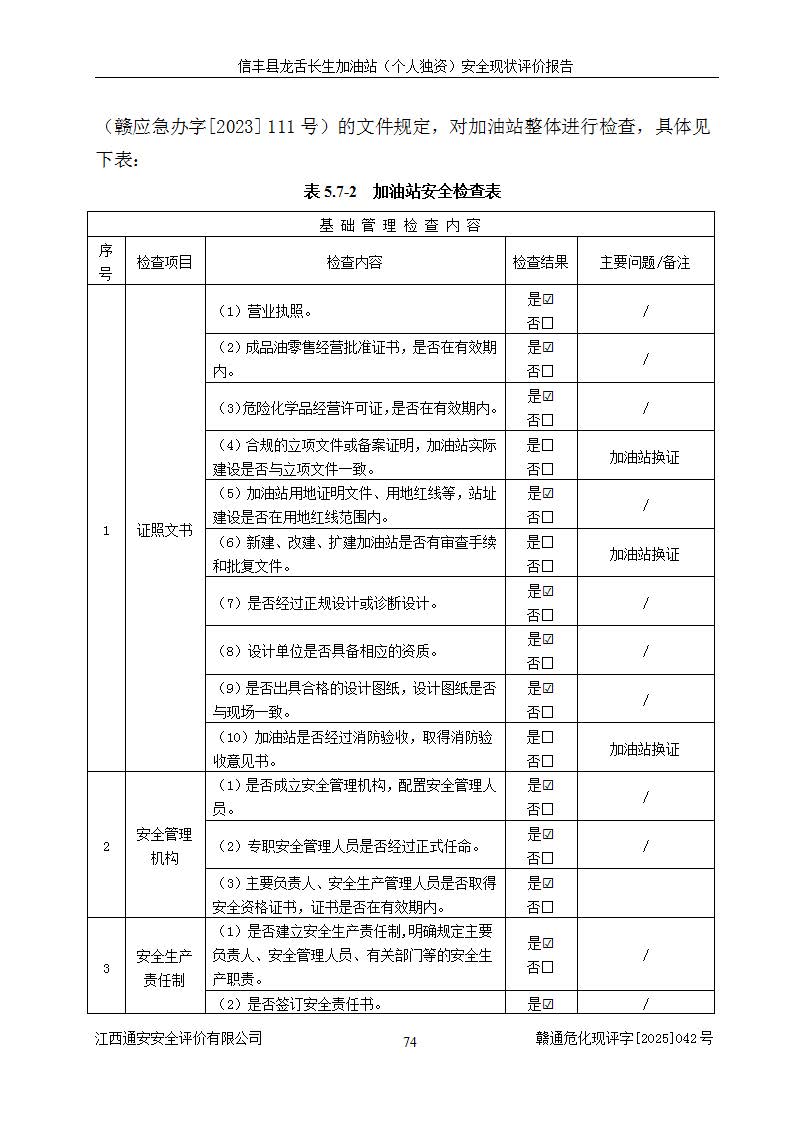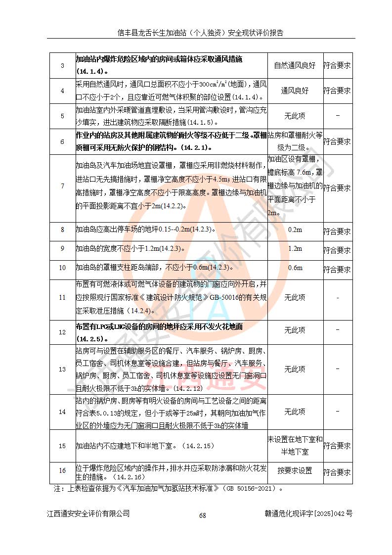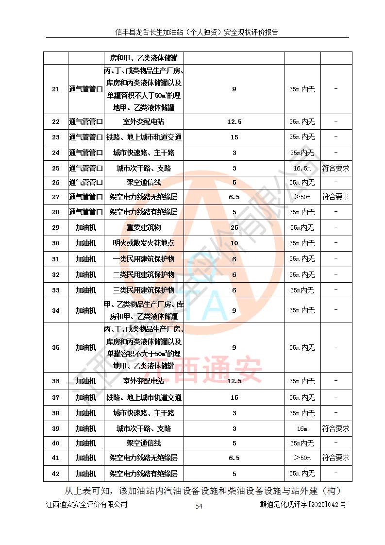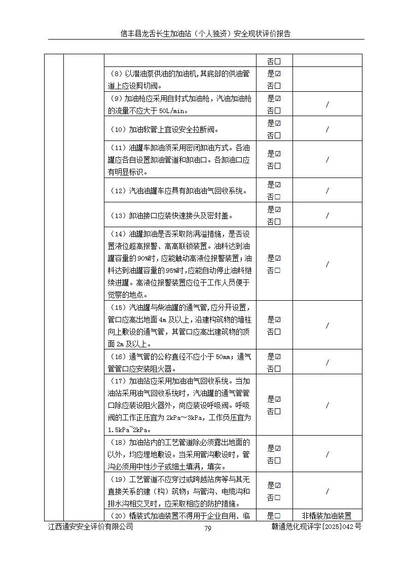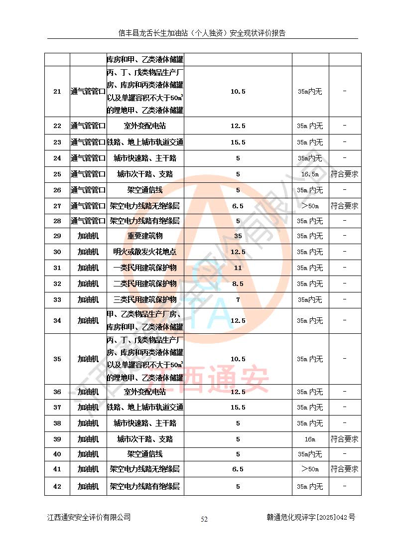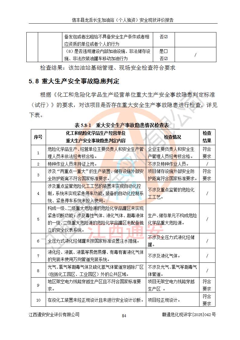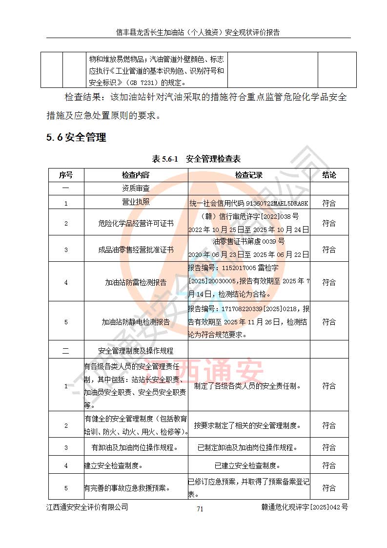 评价结论 | 信丰县龙舌长生加油站(个人独资)安全现状符合危险化学品经营安全条件。 | |||