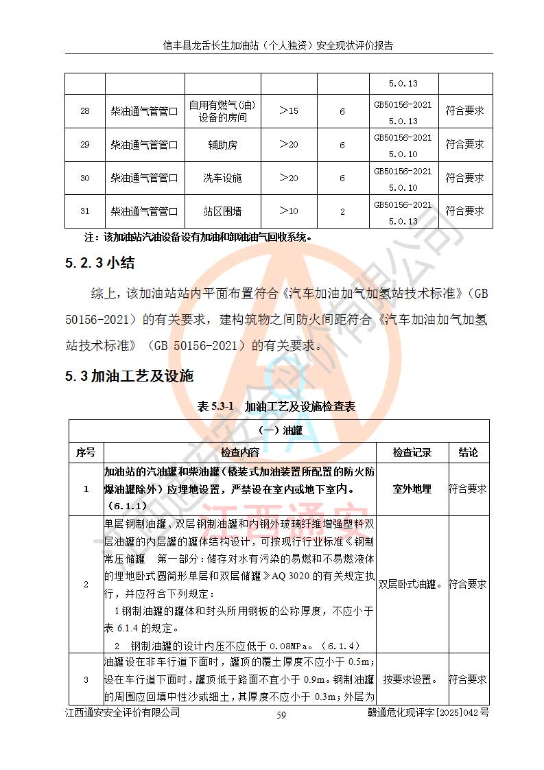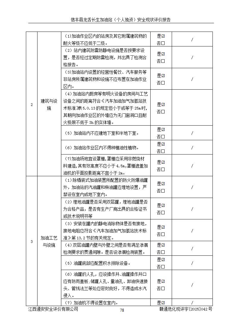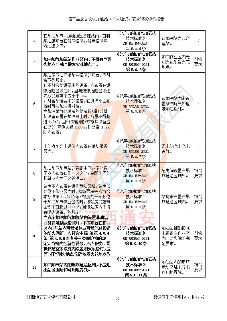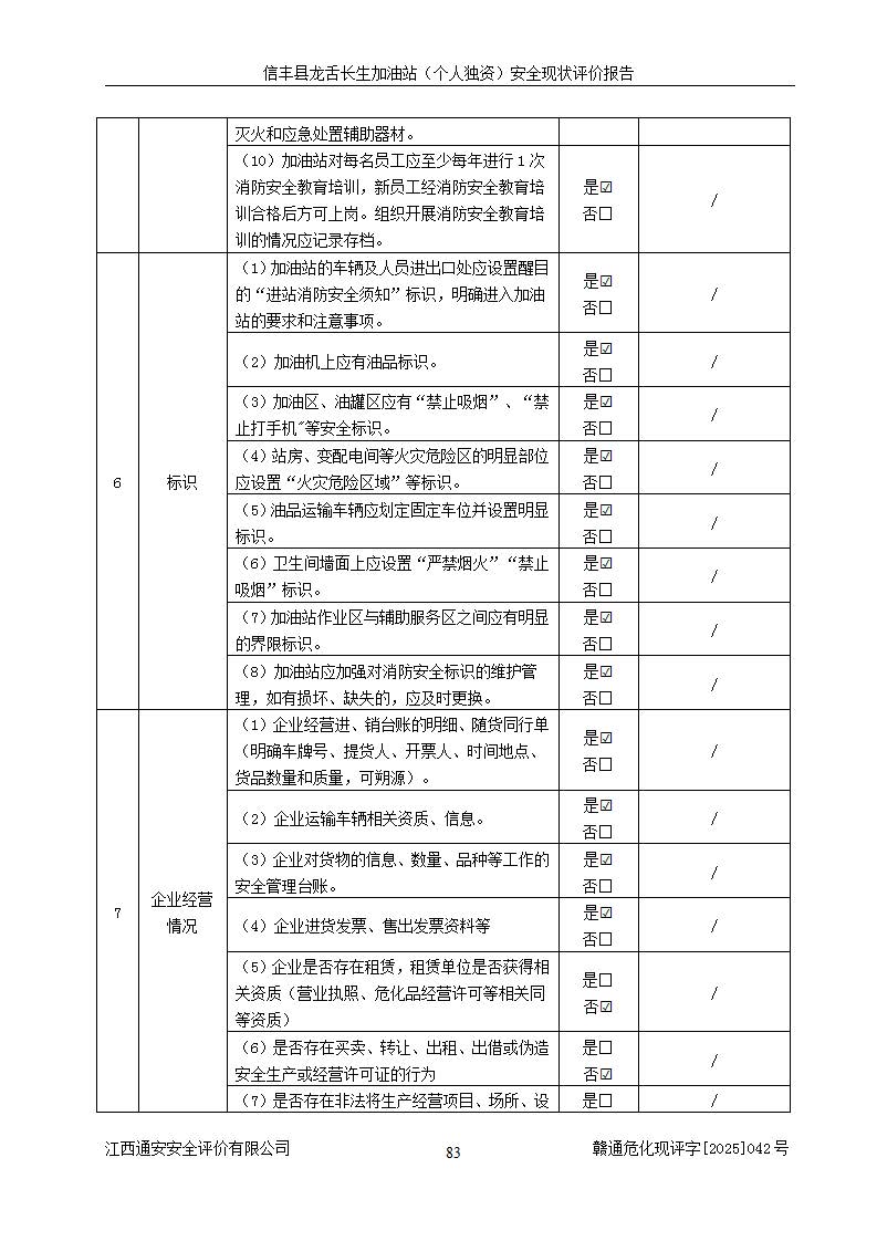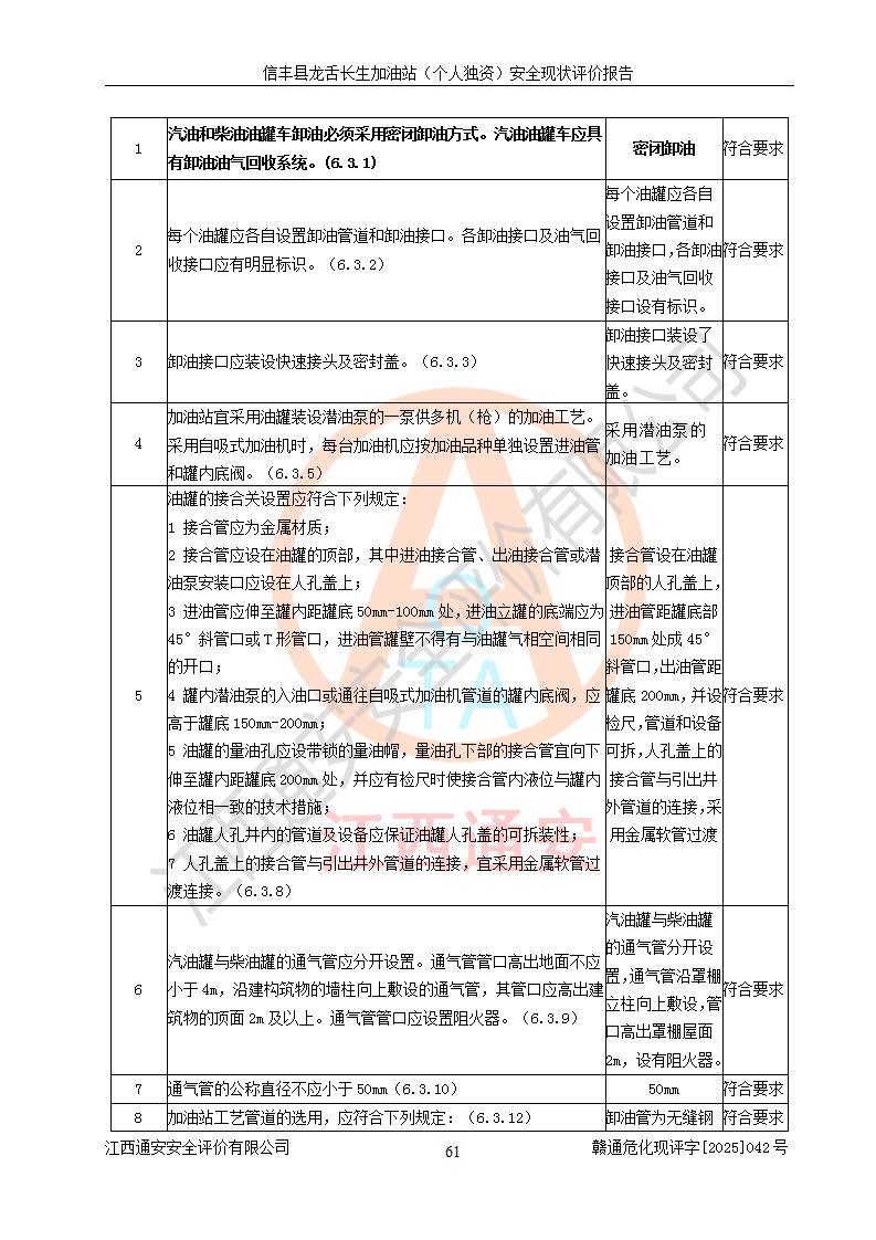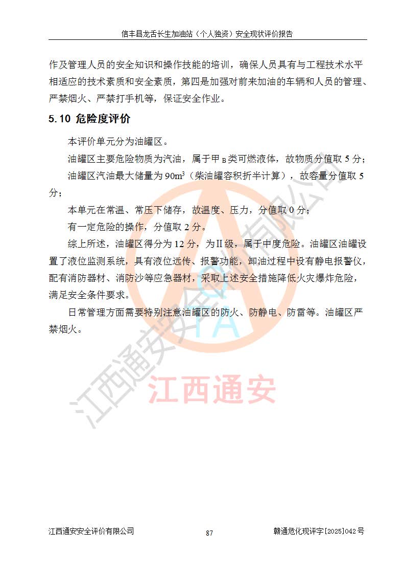 评价结论 | 信丰县龙舌长生加油站(个人独资)安全现状符合危险化学品经营安全条件。 | |||