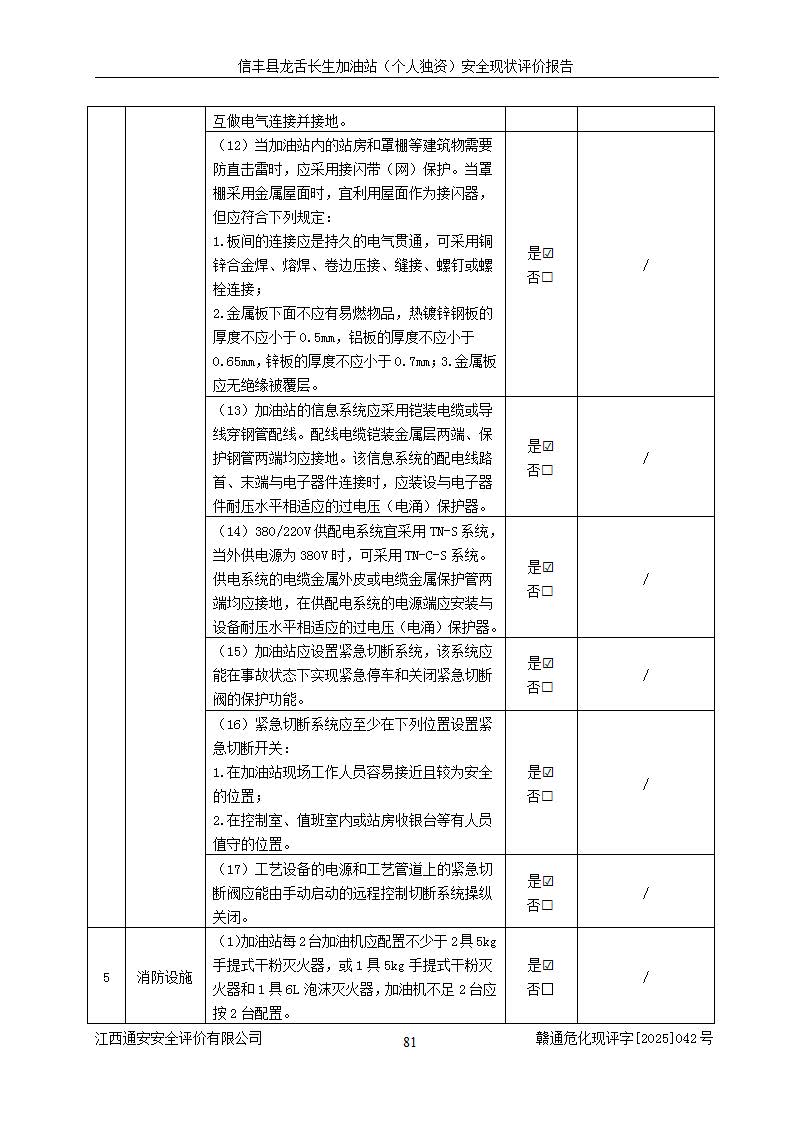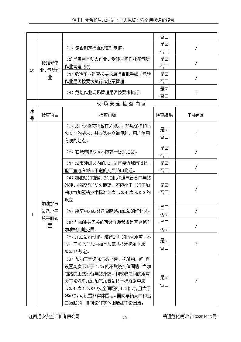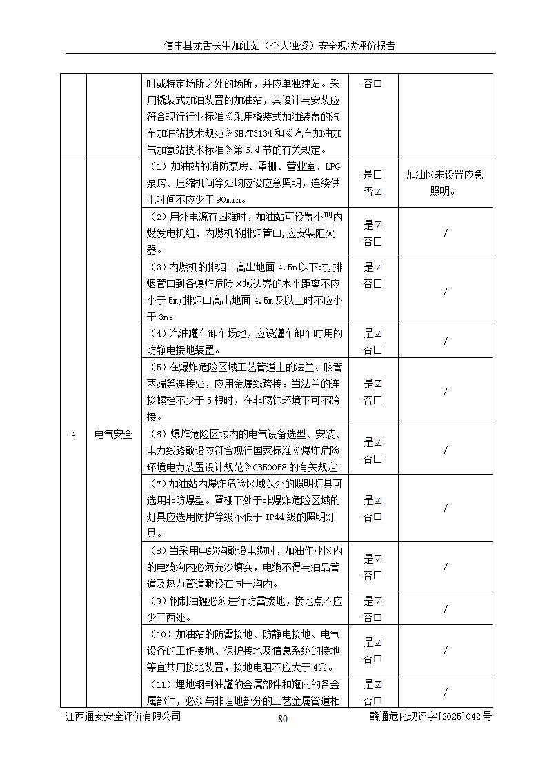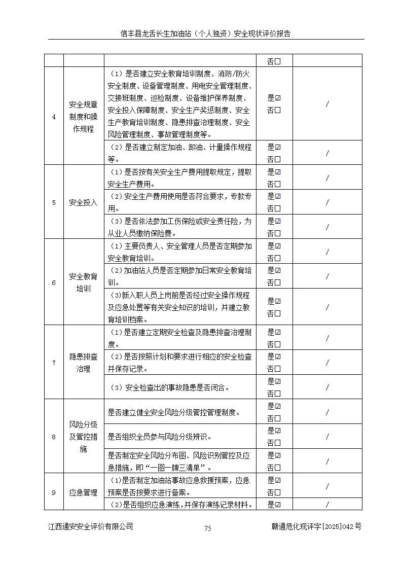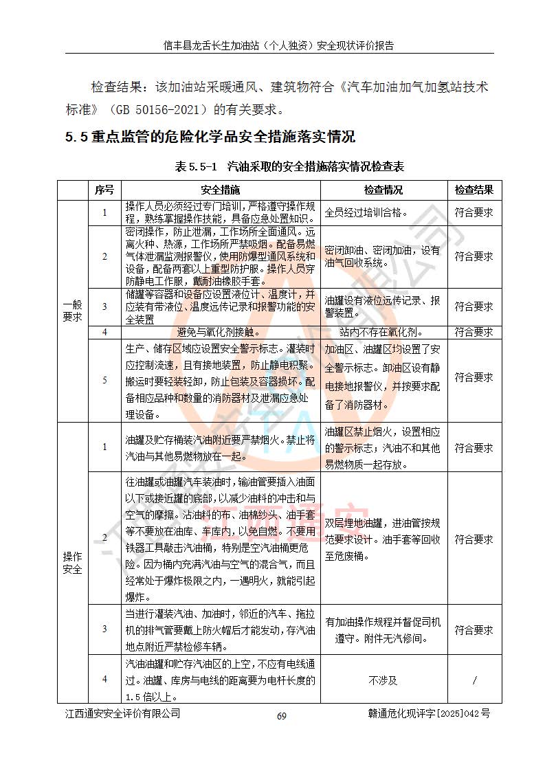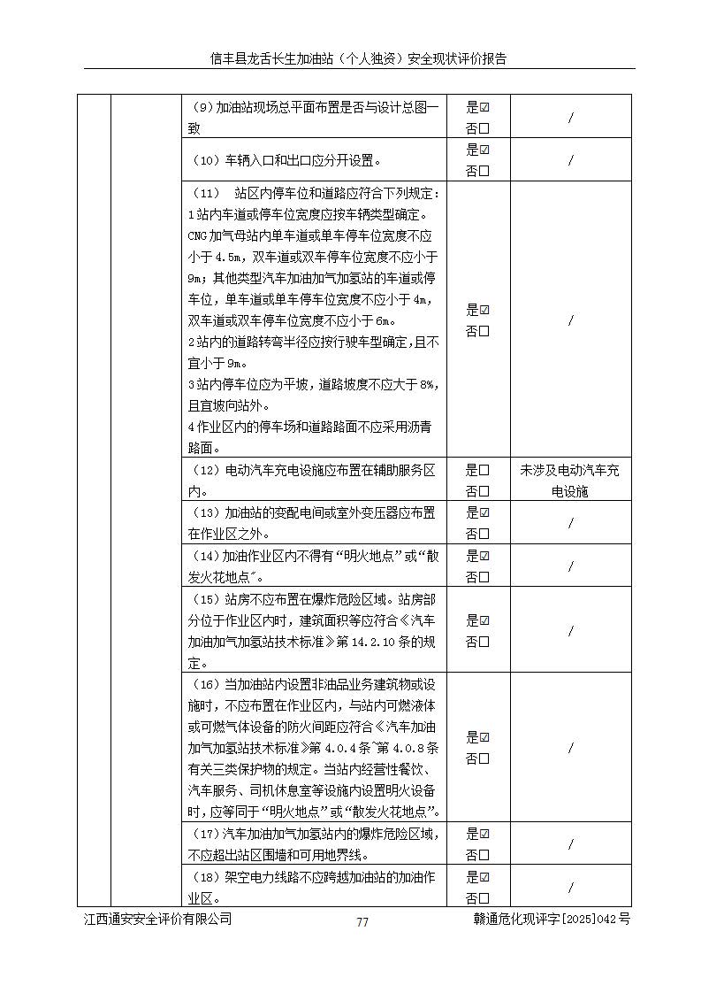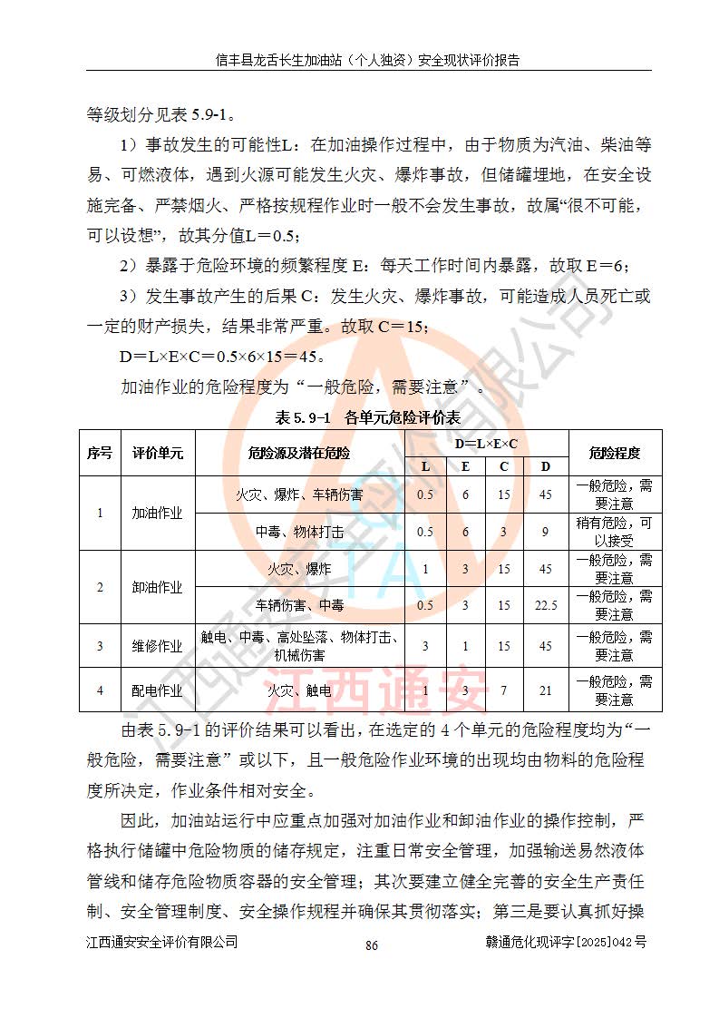 评价结论 | 信丰县龙舌长生加油站(个人独资)安全现状符合危险化学品经营安全条件。 | |||