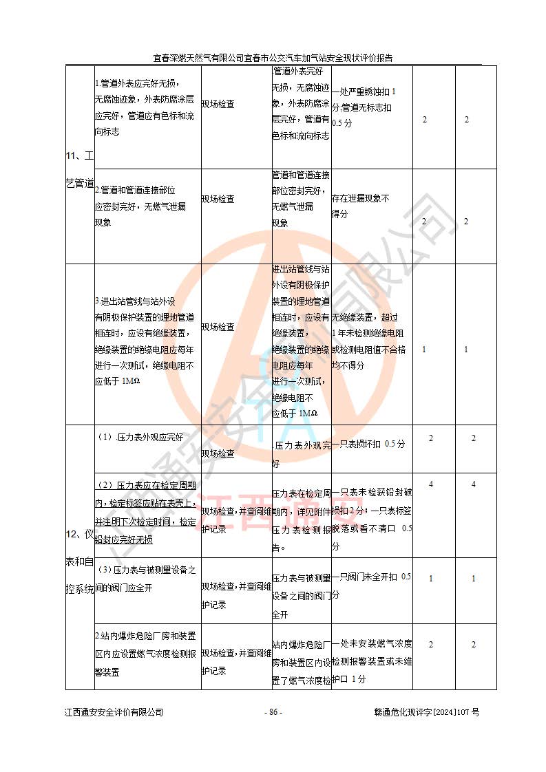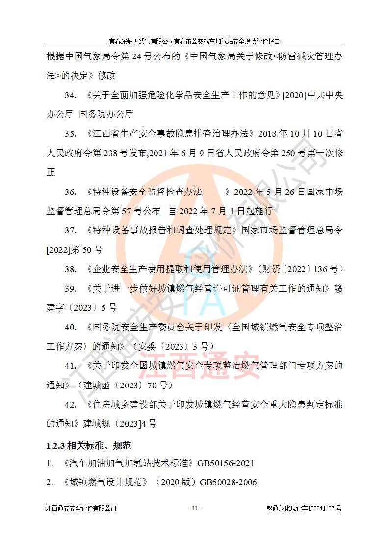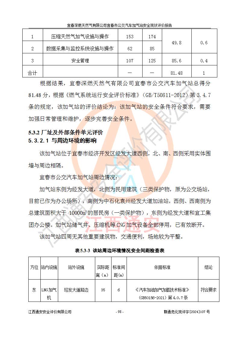 项目名称 | 宜春深燃天然气有限公司宜春市公交汽车加气站安全现状评价报告 | ||||