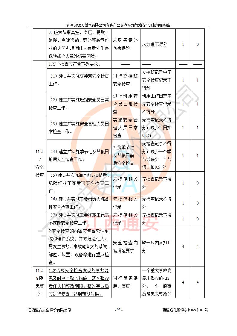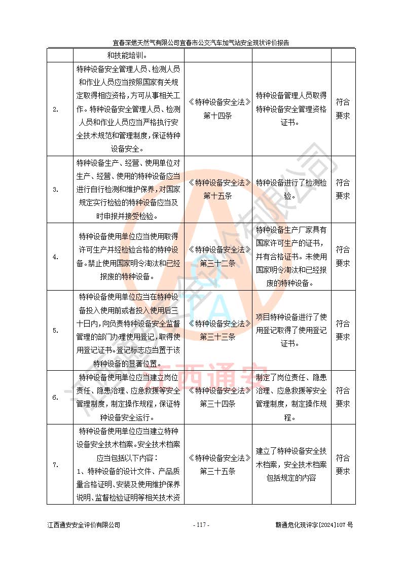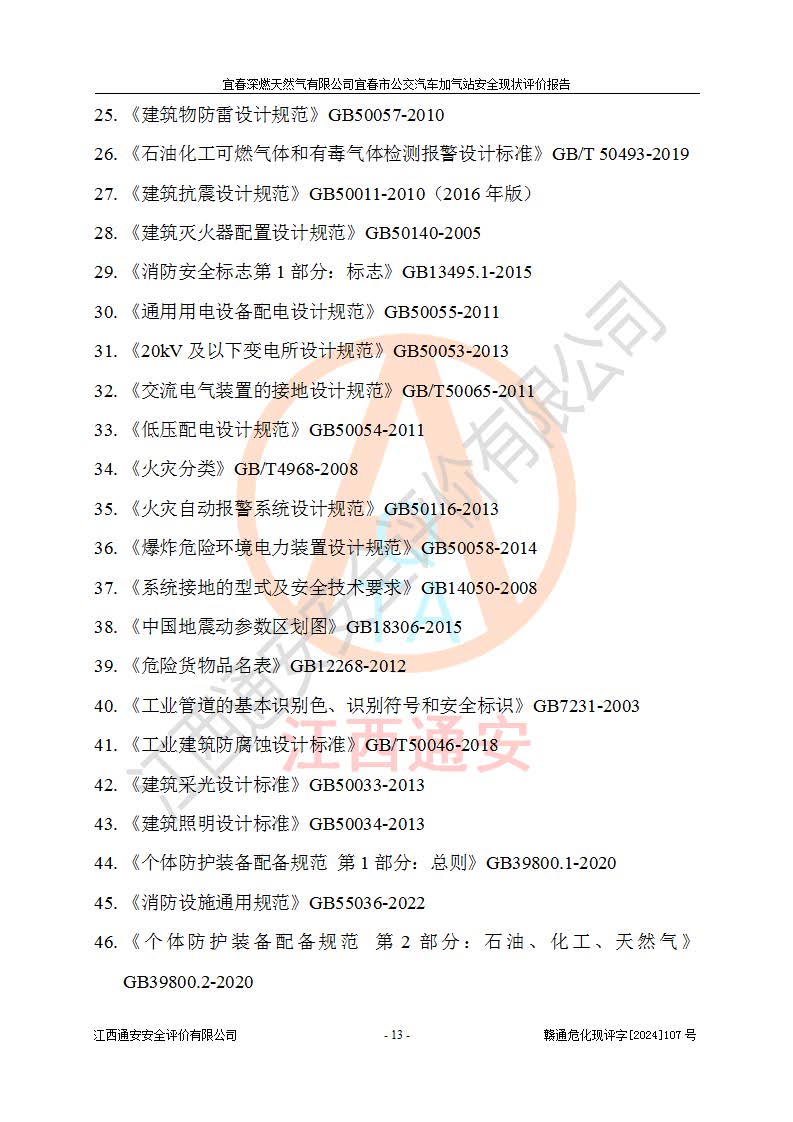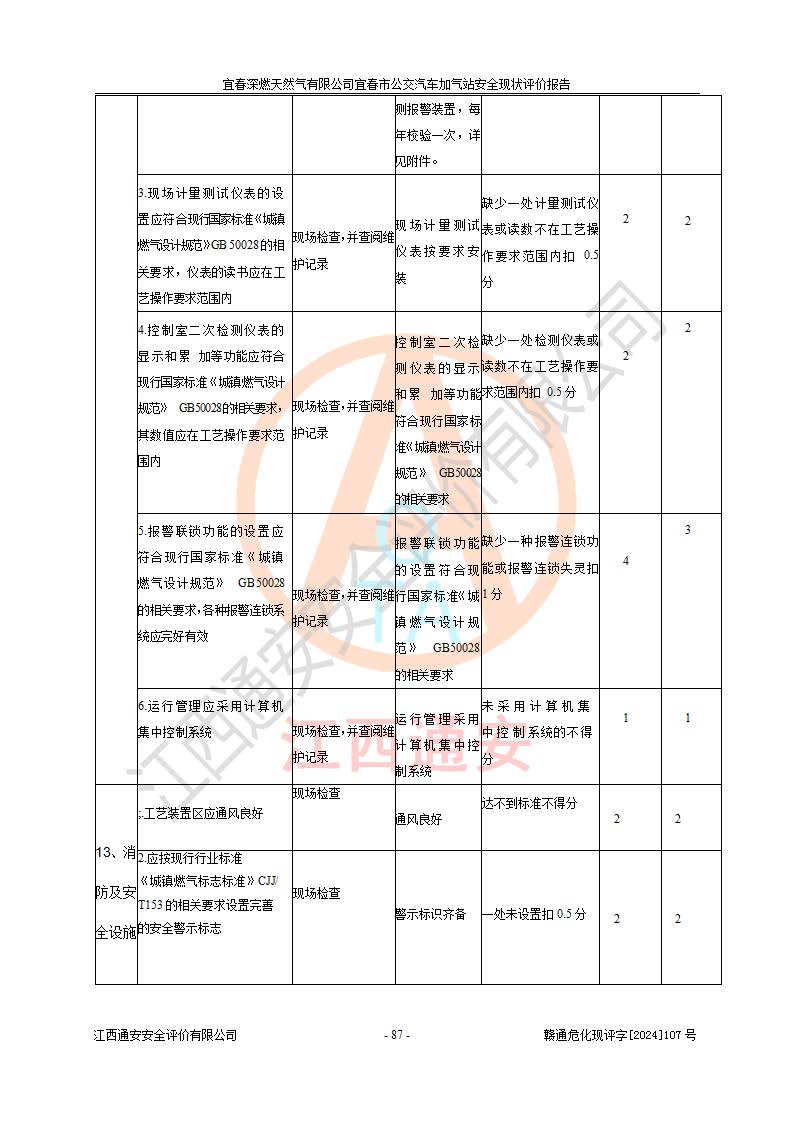 项目名称 | 宜春深燃天然气有限公司宜春市公交汽车加气站安全现状评价报告 | ||||