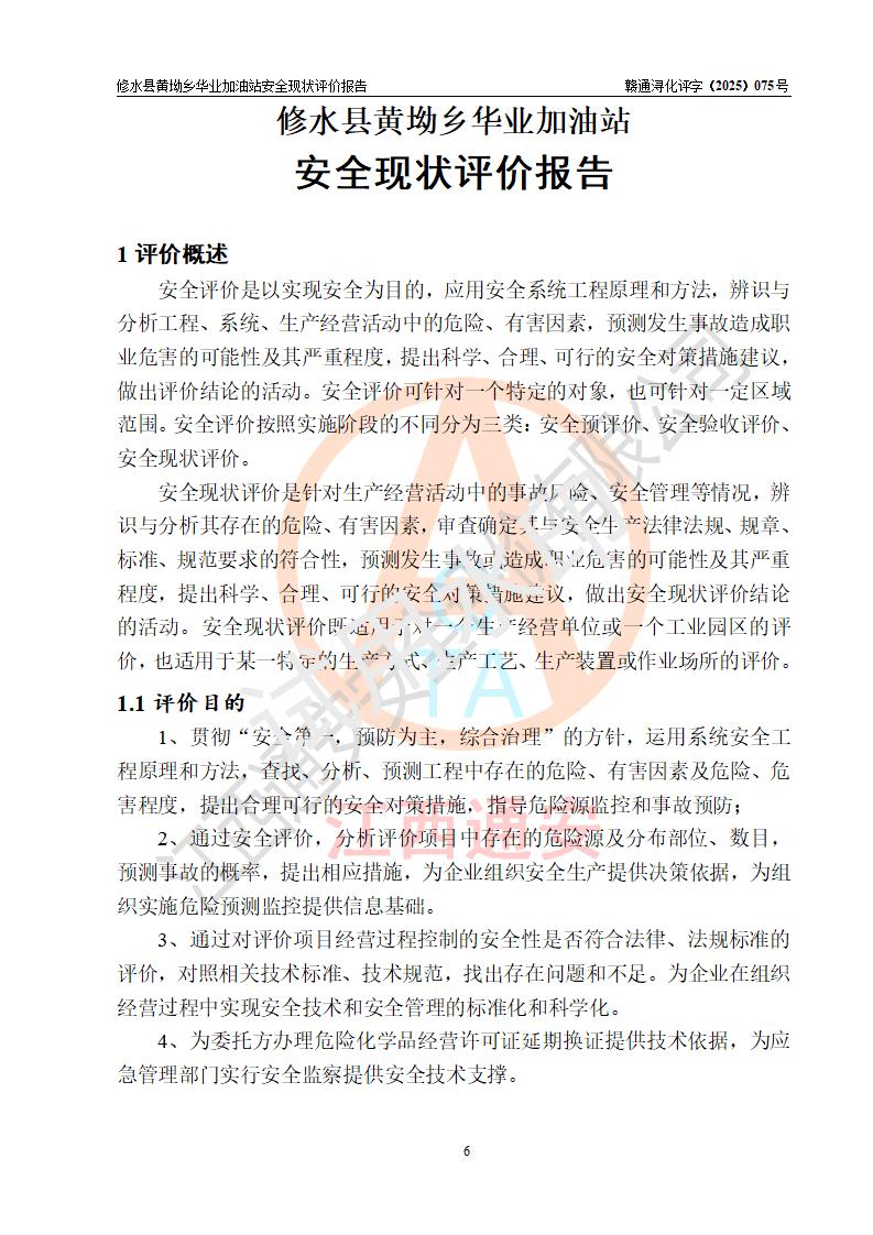 评价报告名称 | 修水县黄坳乡华业加油站安全现状评价报告 | |||