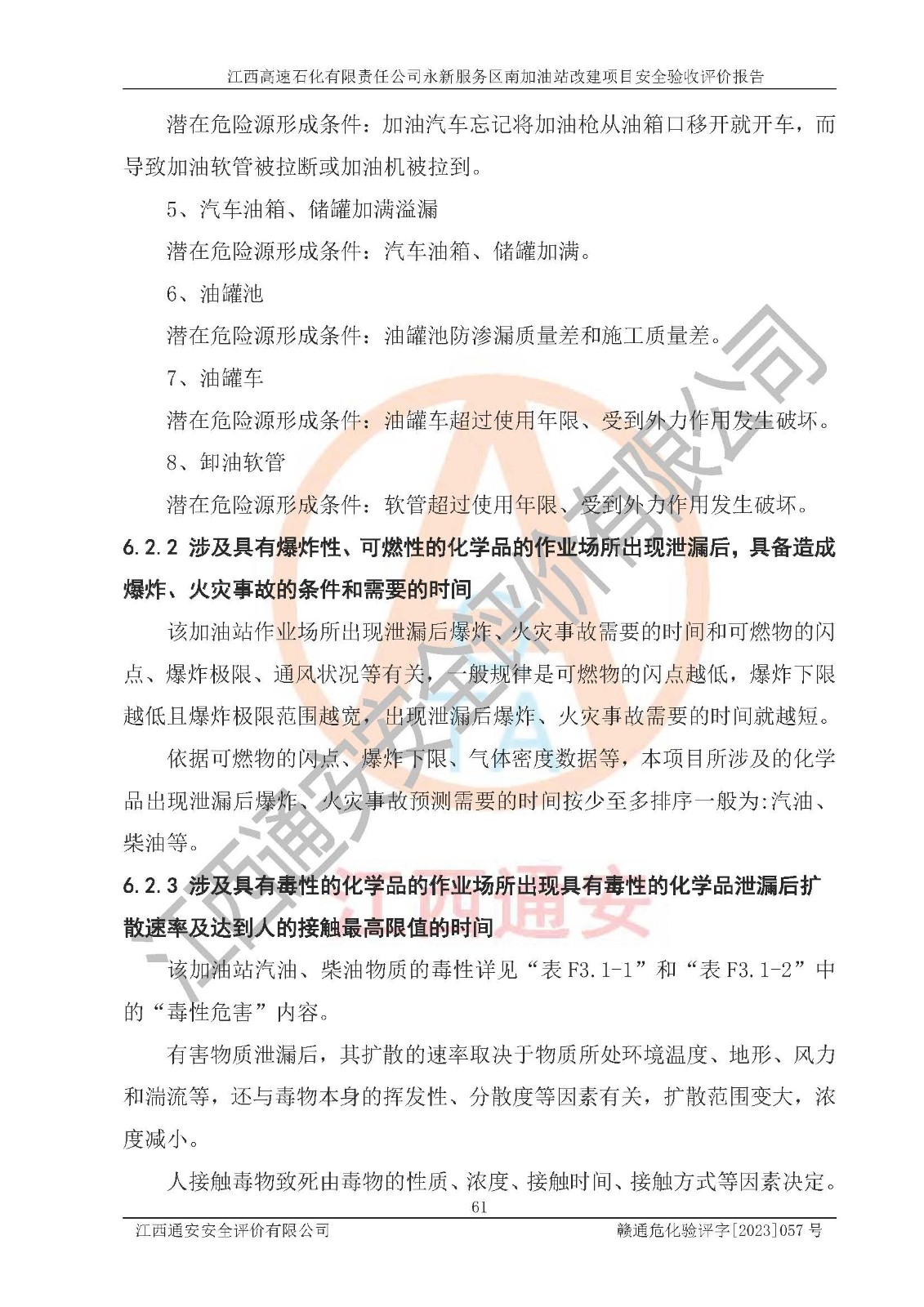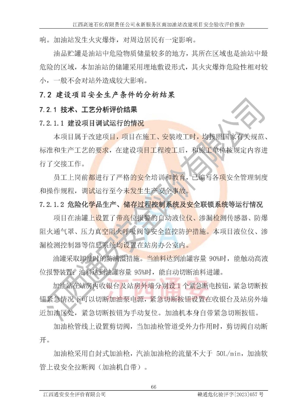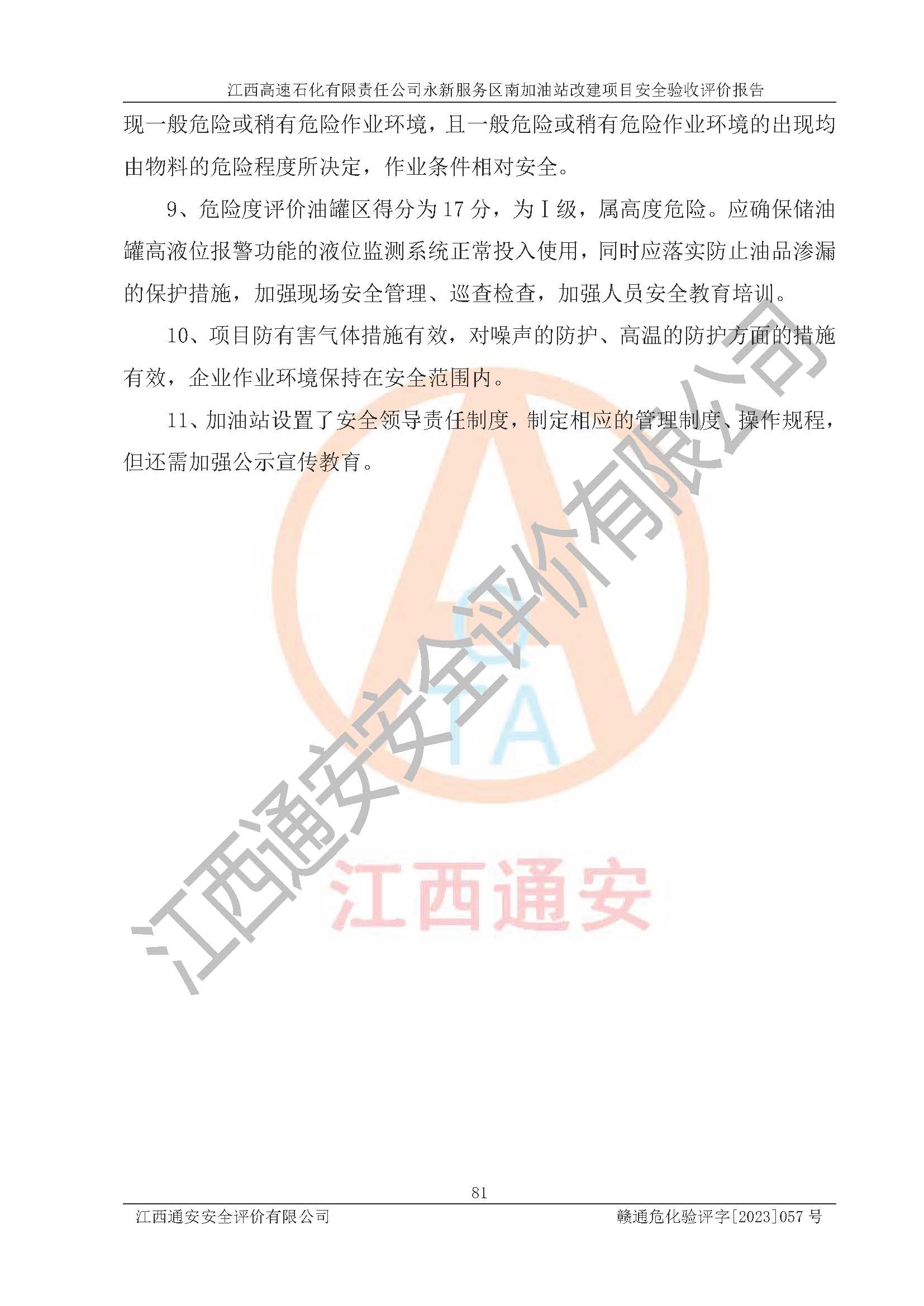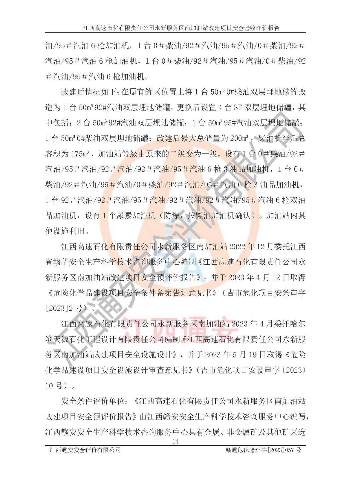 项目名称 | 江西高速石化有限责任公司永新服务区南加油站改建项目安全验收评价报告 | ||||
