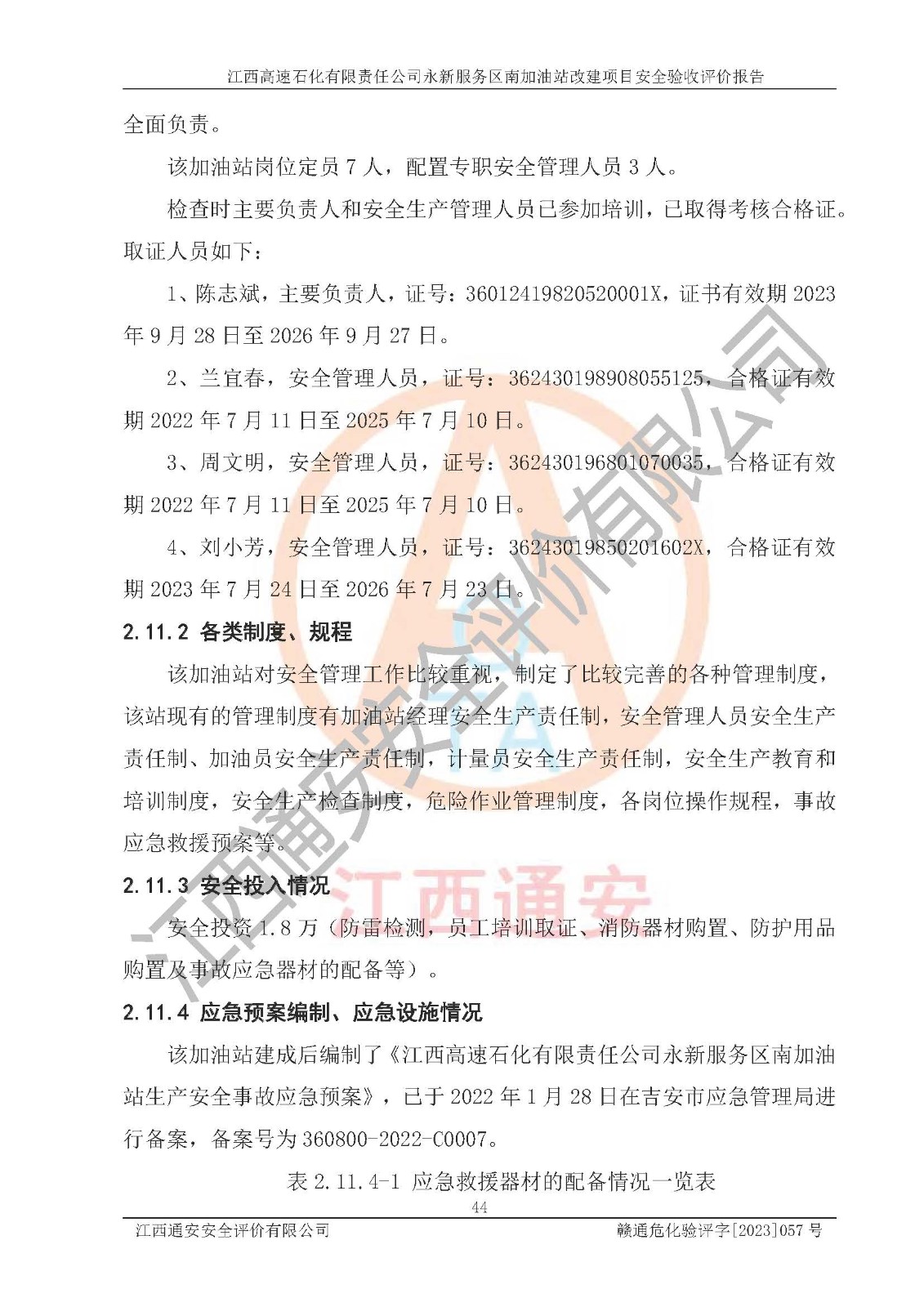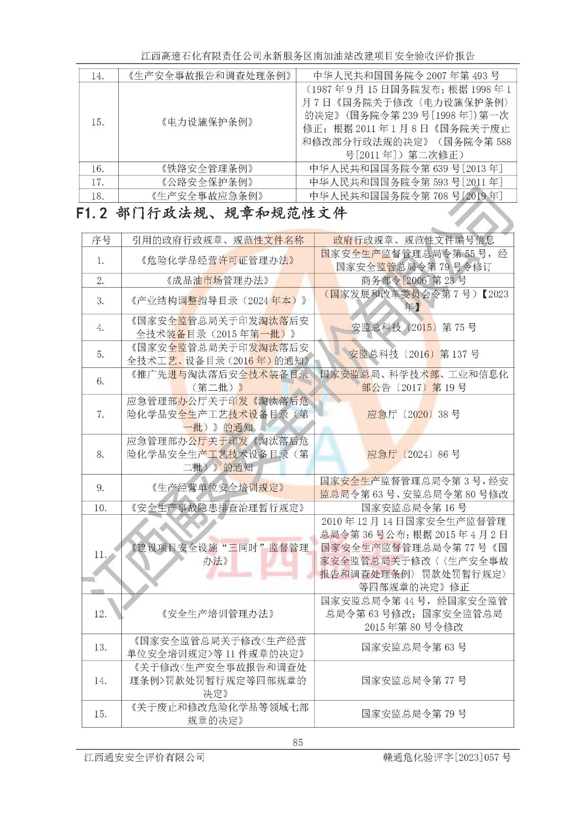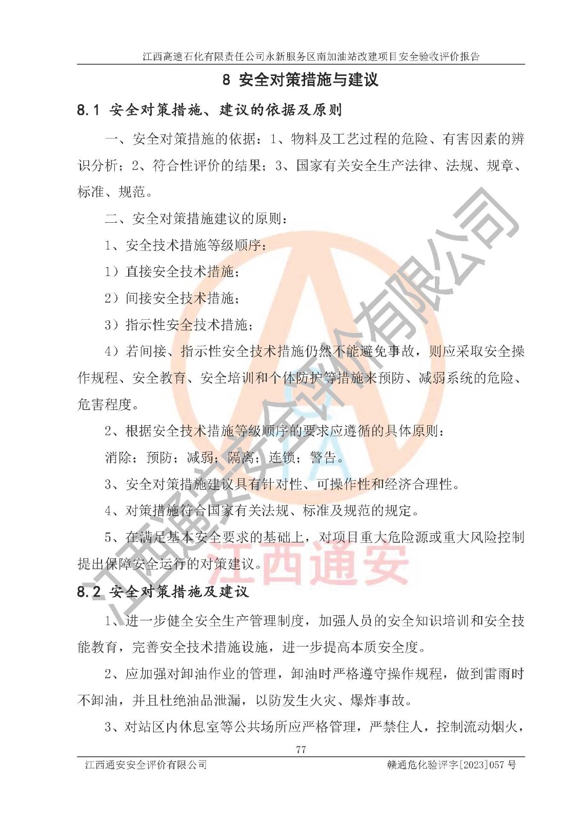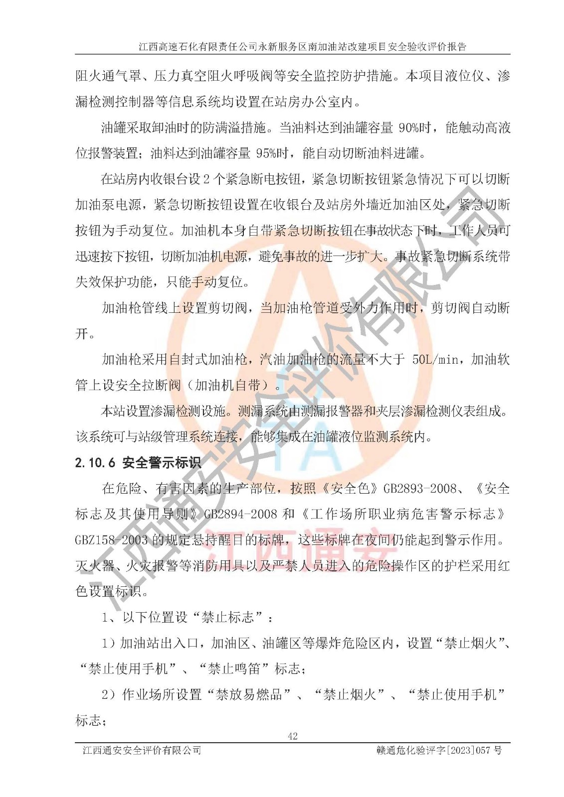 项目名称 | 江西高速石化有限责任公司永新服务区南加油站改建项目安全验收评价报告 | ||||
