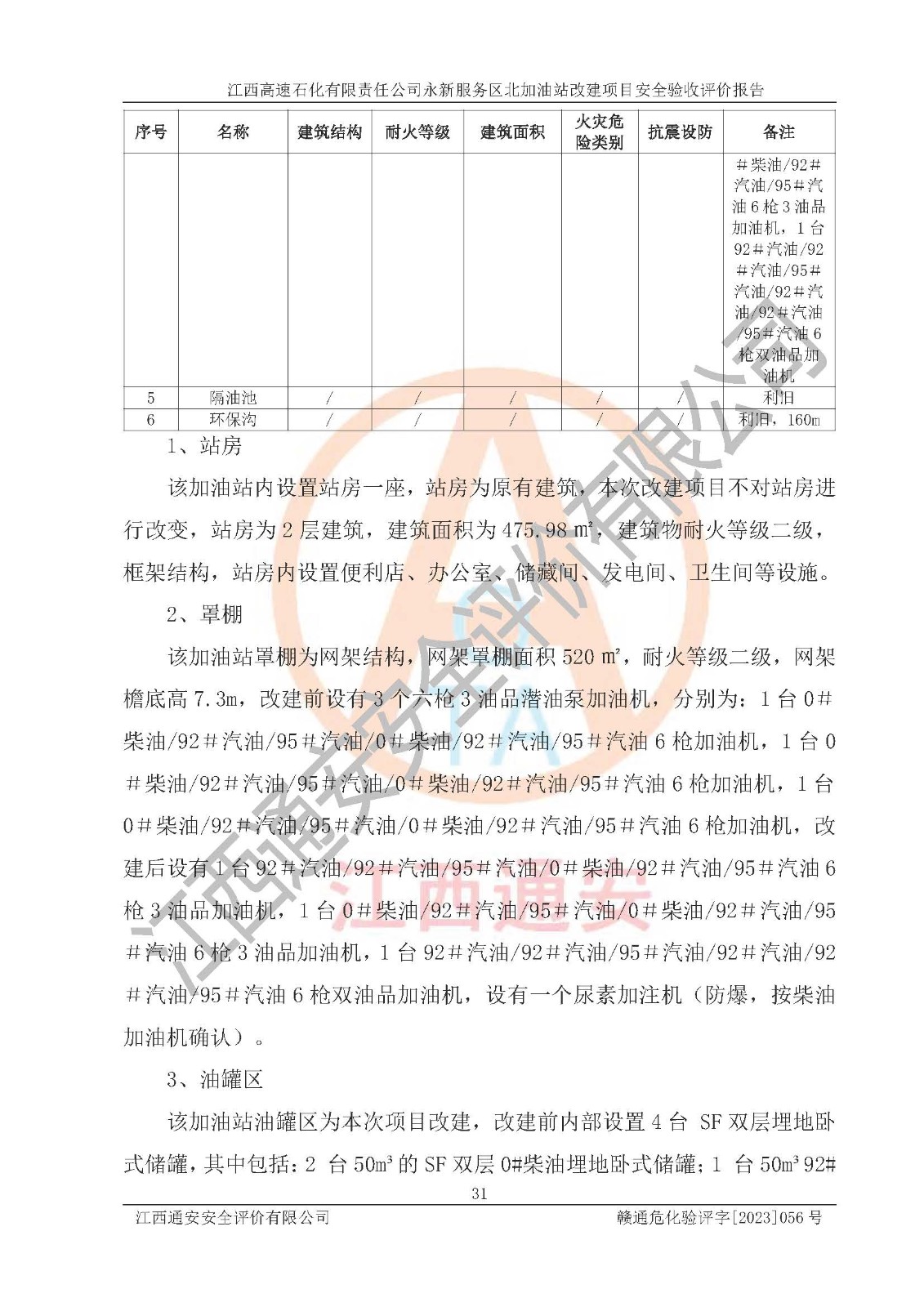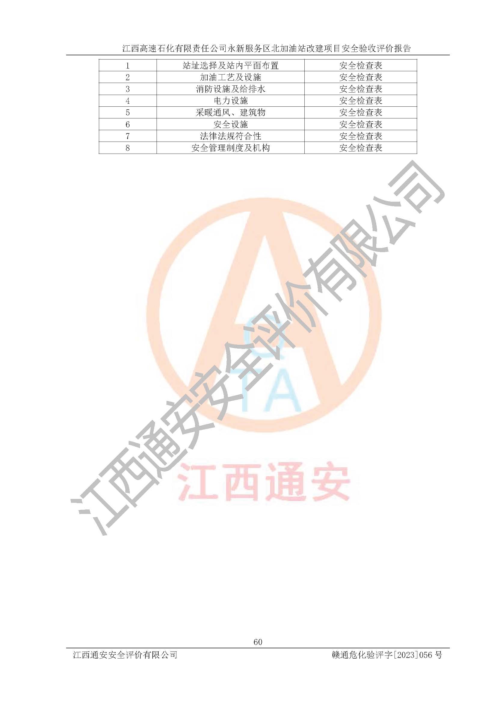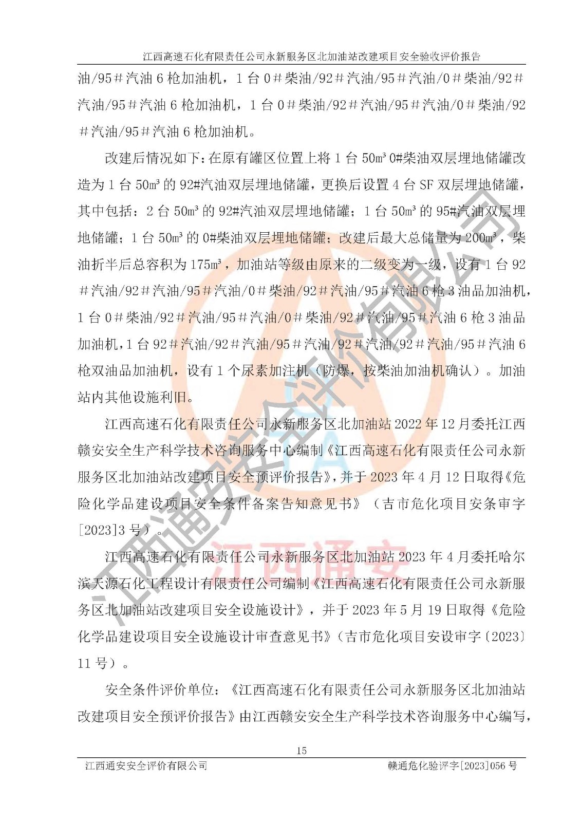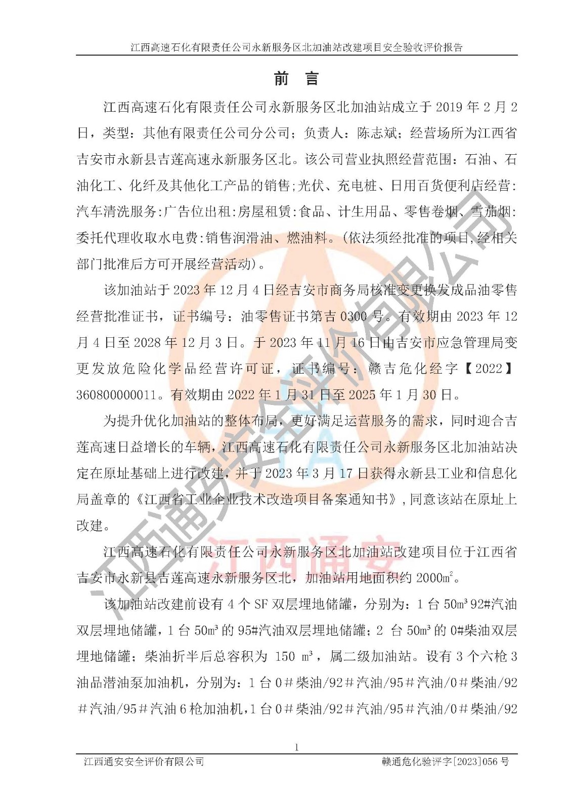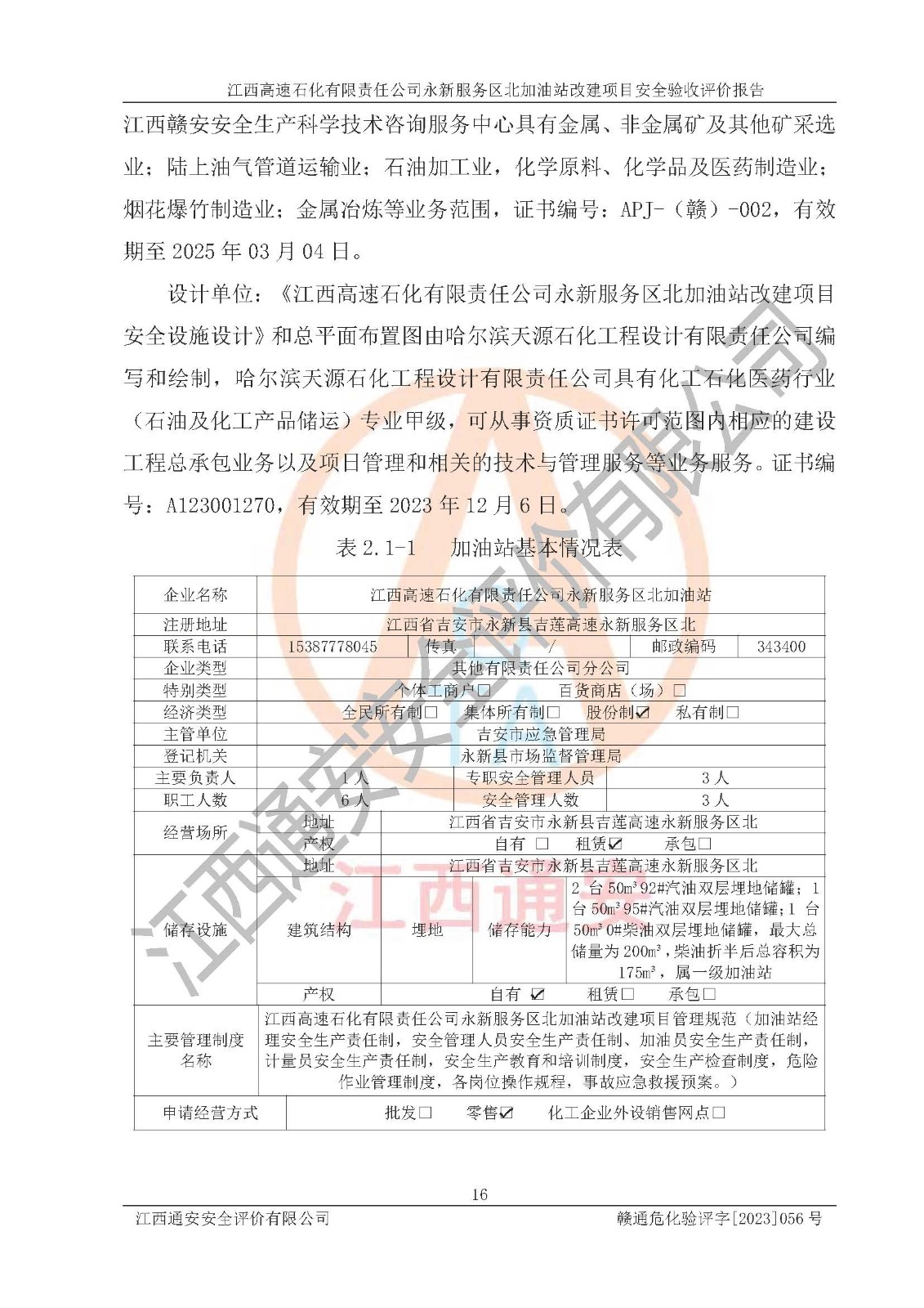 项目名称 | 江西高速石化有限责任公司永新服务区北加油站改建项目安全验收评价报告 | ||||
