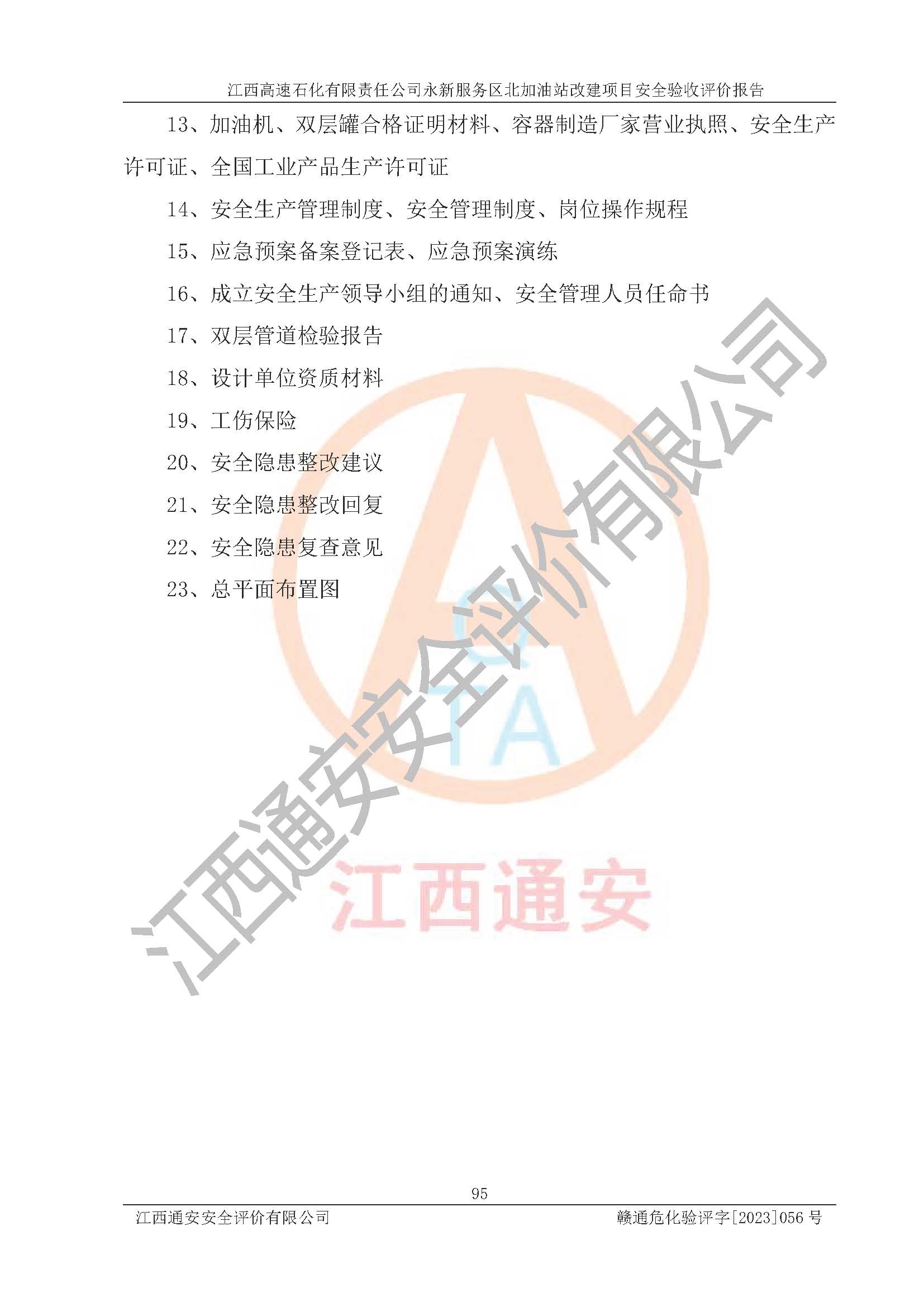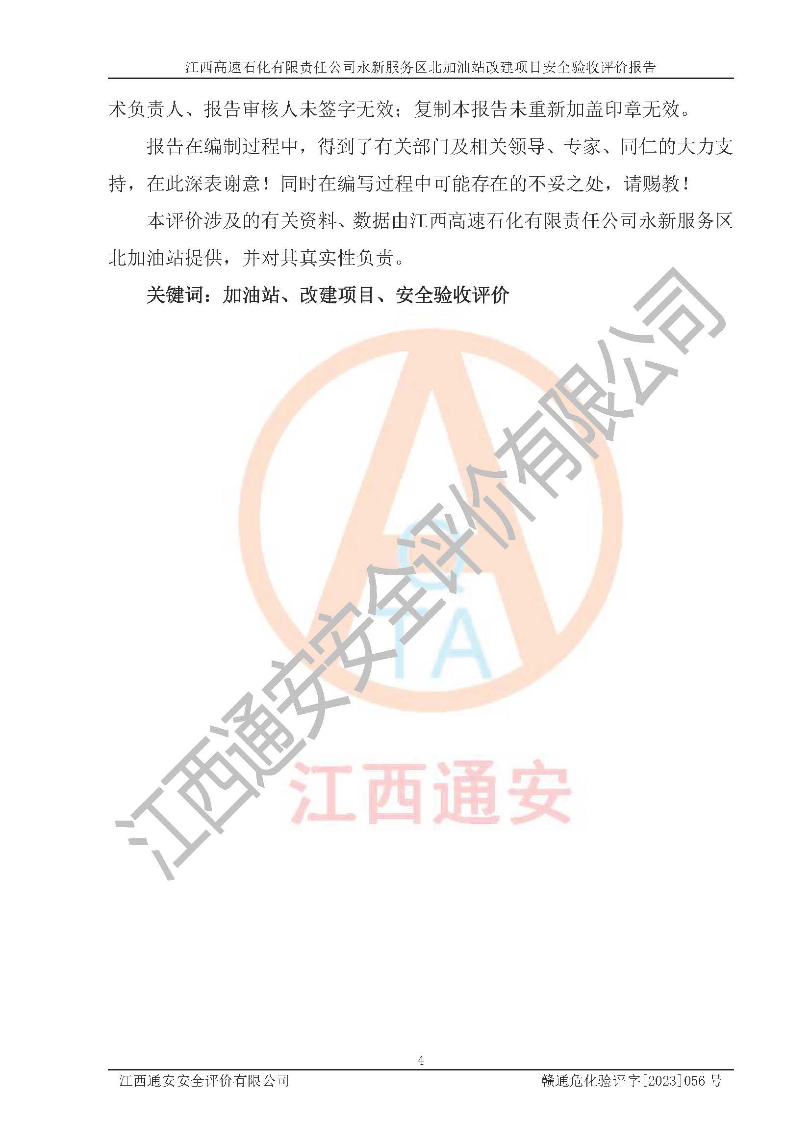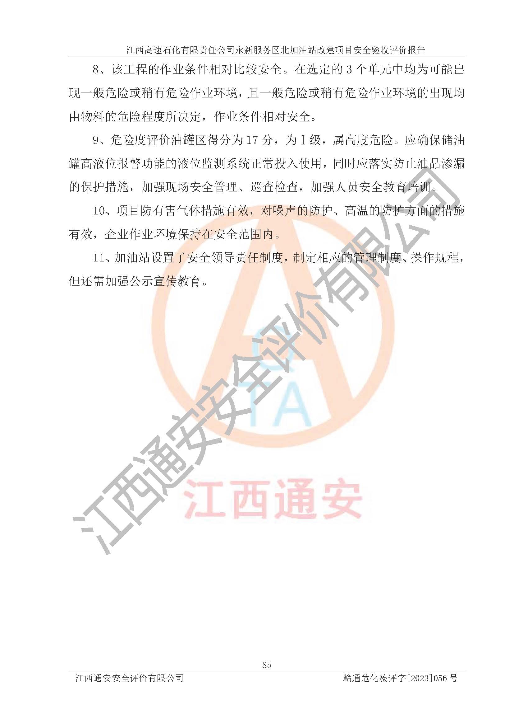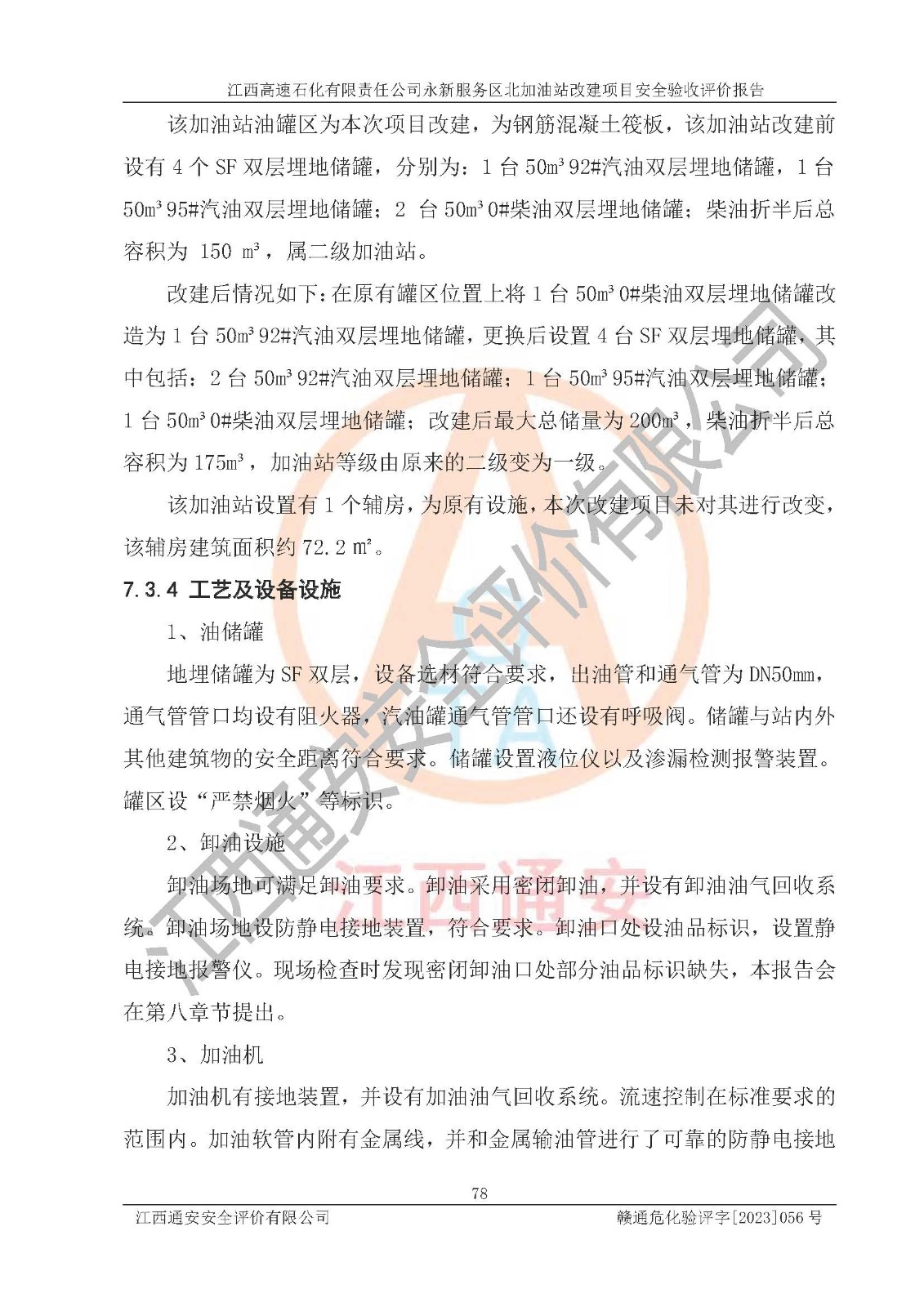 项目名称 | 江西高速石化有限责任公司永新服务区北加油站改建项目安全验收评价报告 | ||||