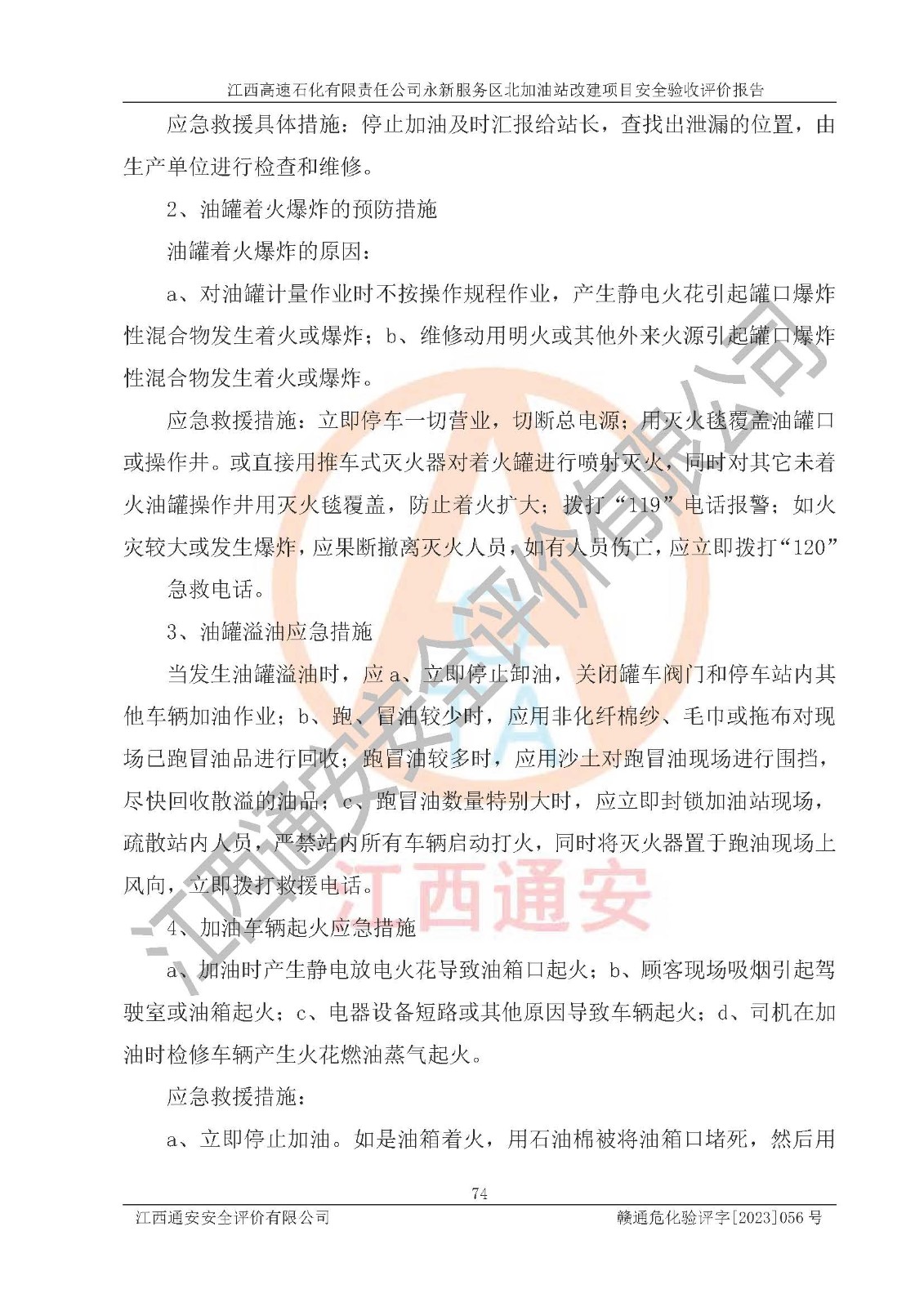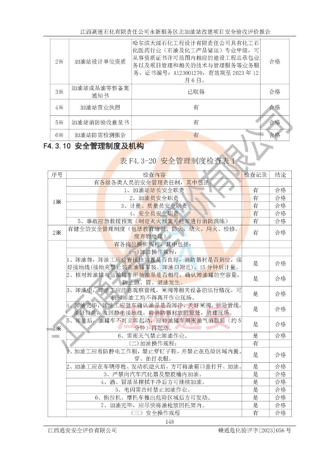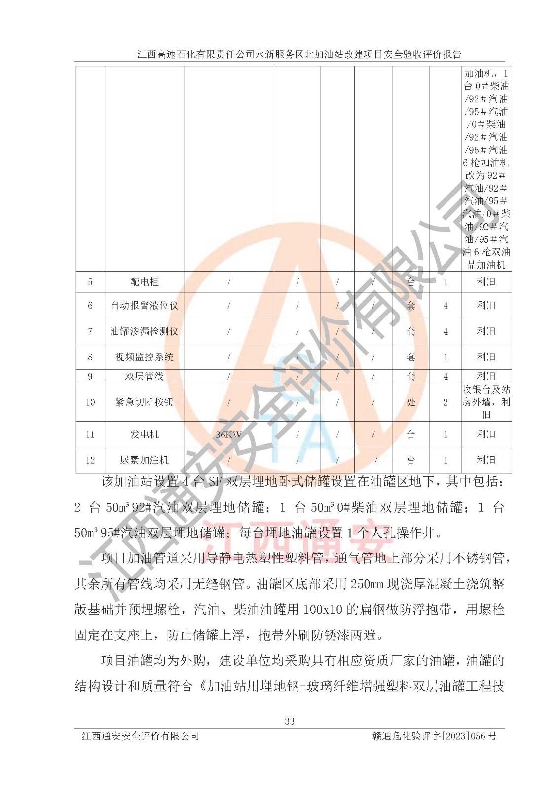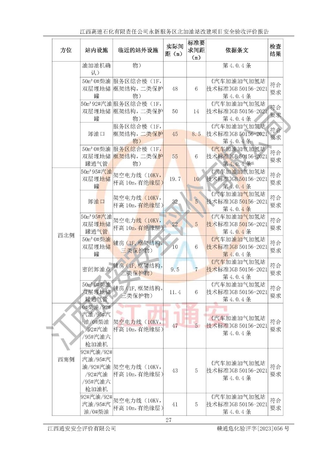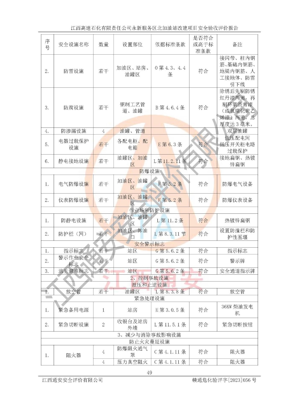 项目名称 | 江西高速石化有限责任公司永新服务区北加油站改建项目安全验收评价报告 | ||||
