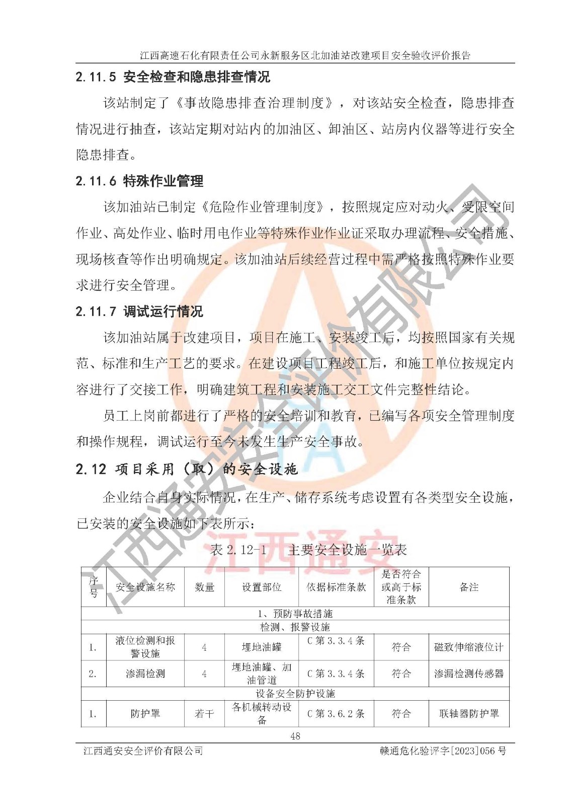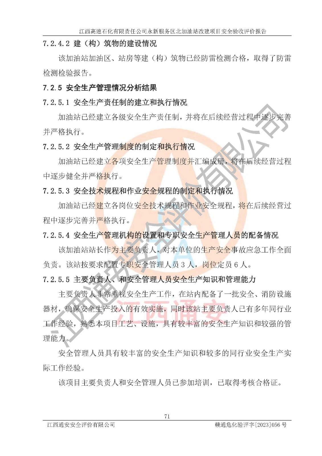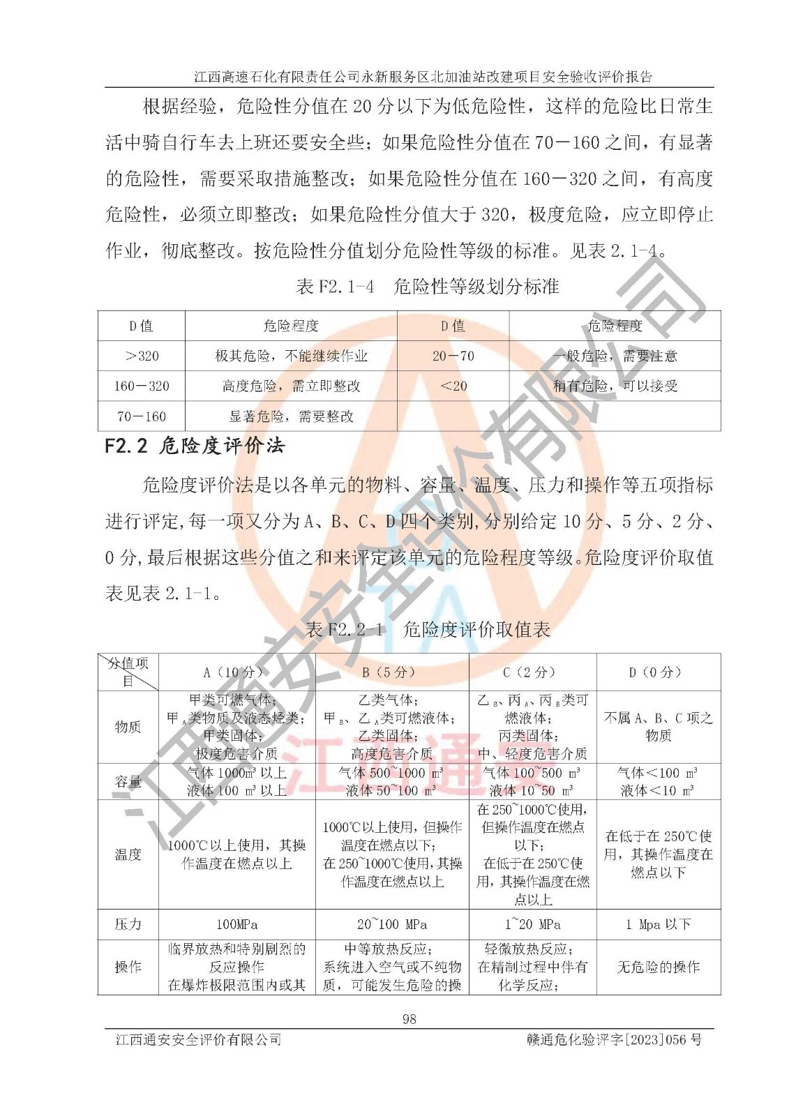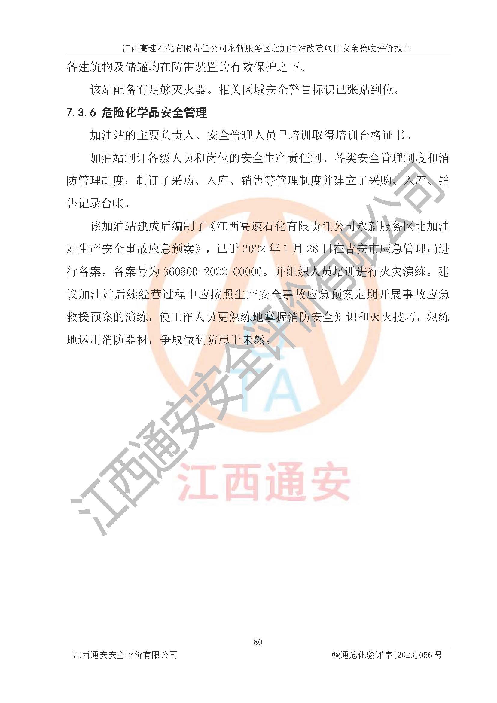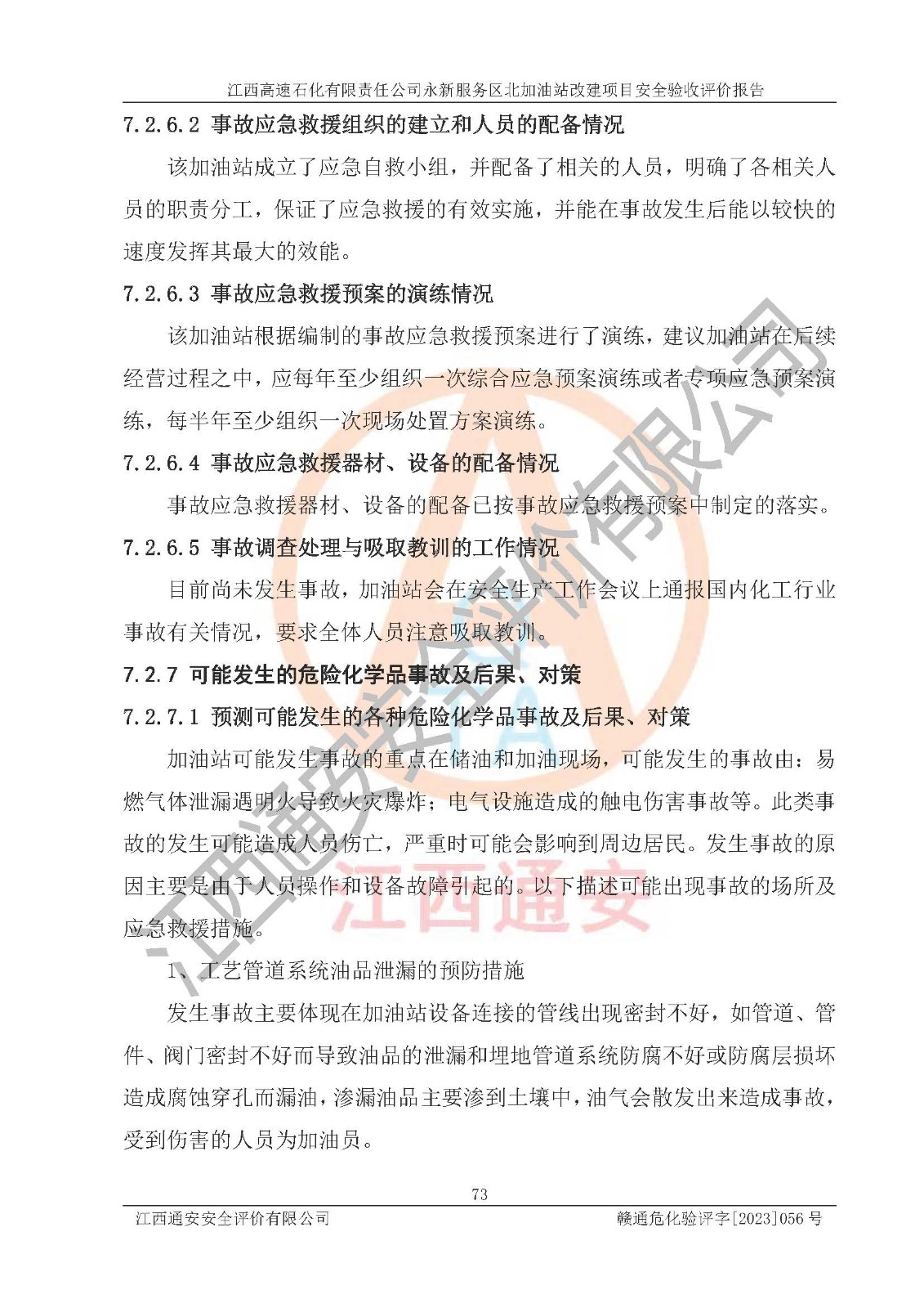 项目名称 | 江西高速石化有限责任公司永新服务区北加油站改建项目安全验收评价报告 | ||||