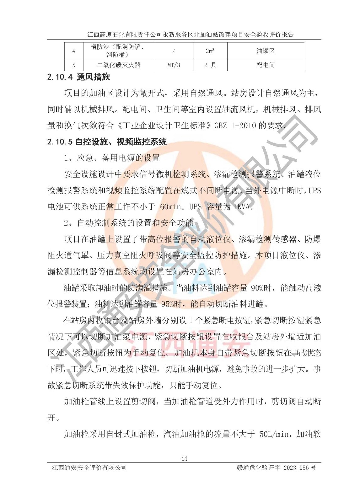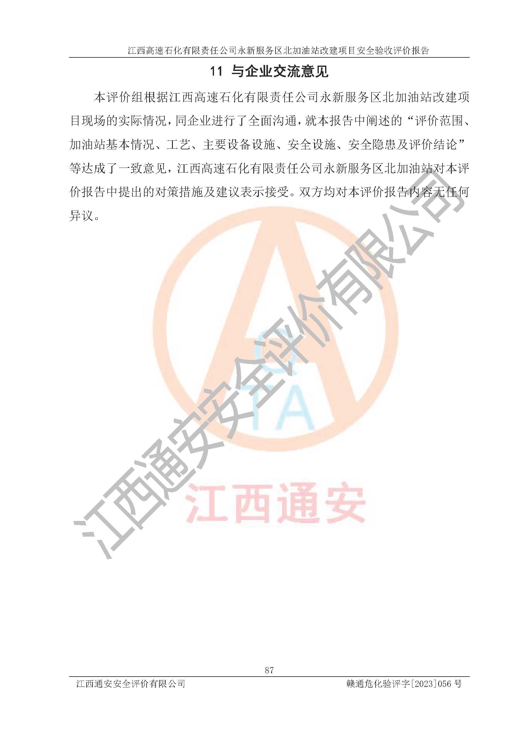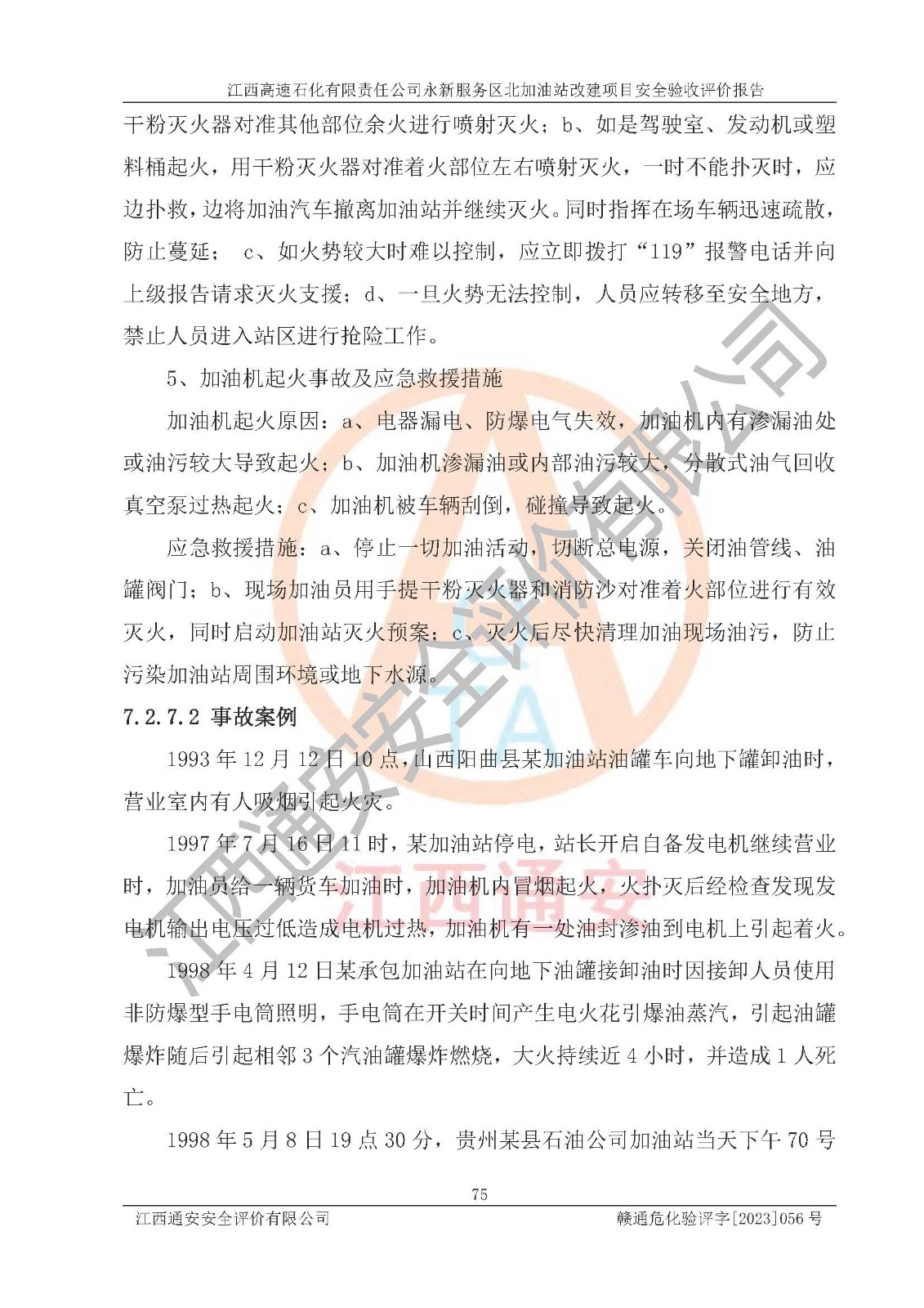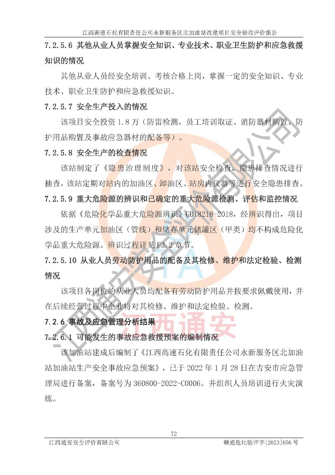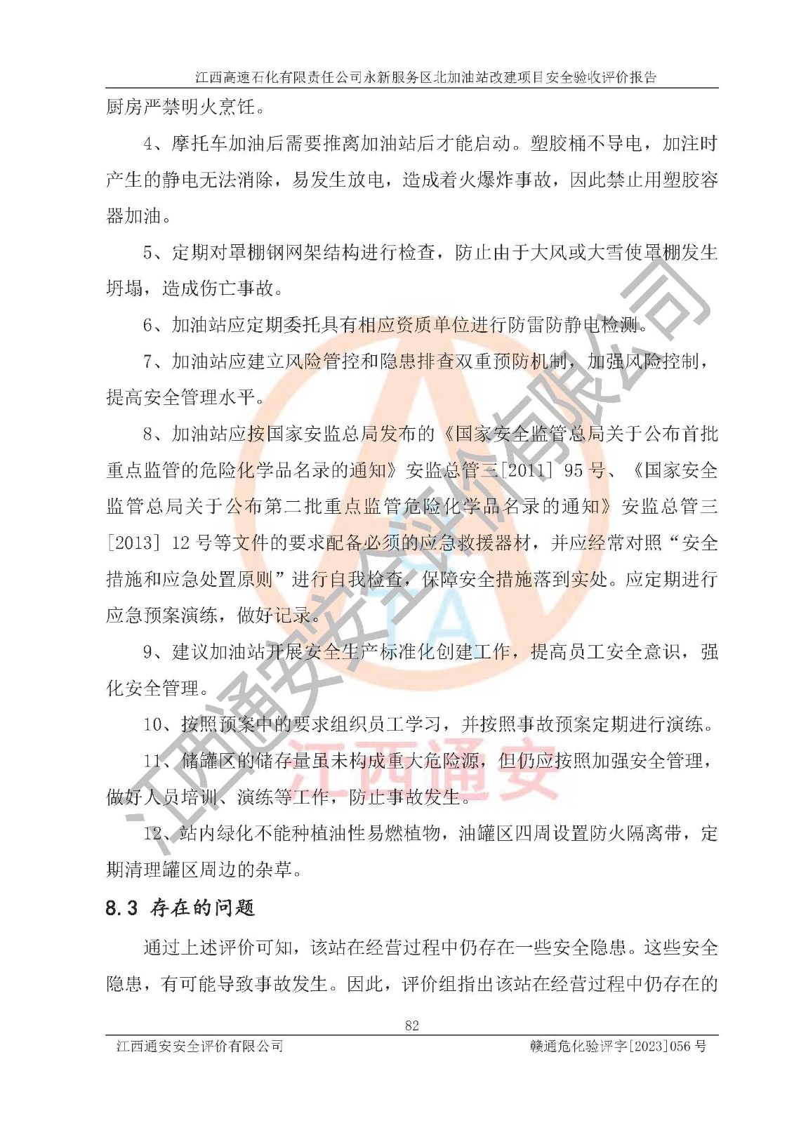 项目名称 | 江西高速石化有限责任公司永新服务区北加油站改建项目安全验收评价报告 | ||||