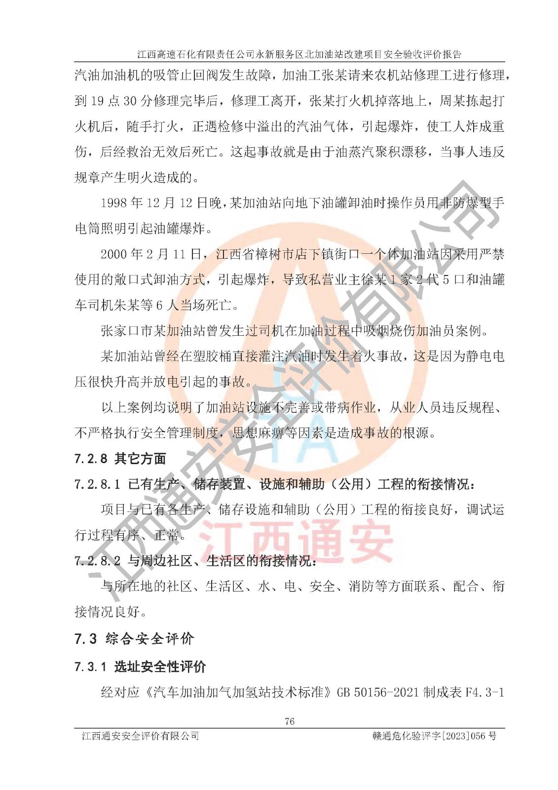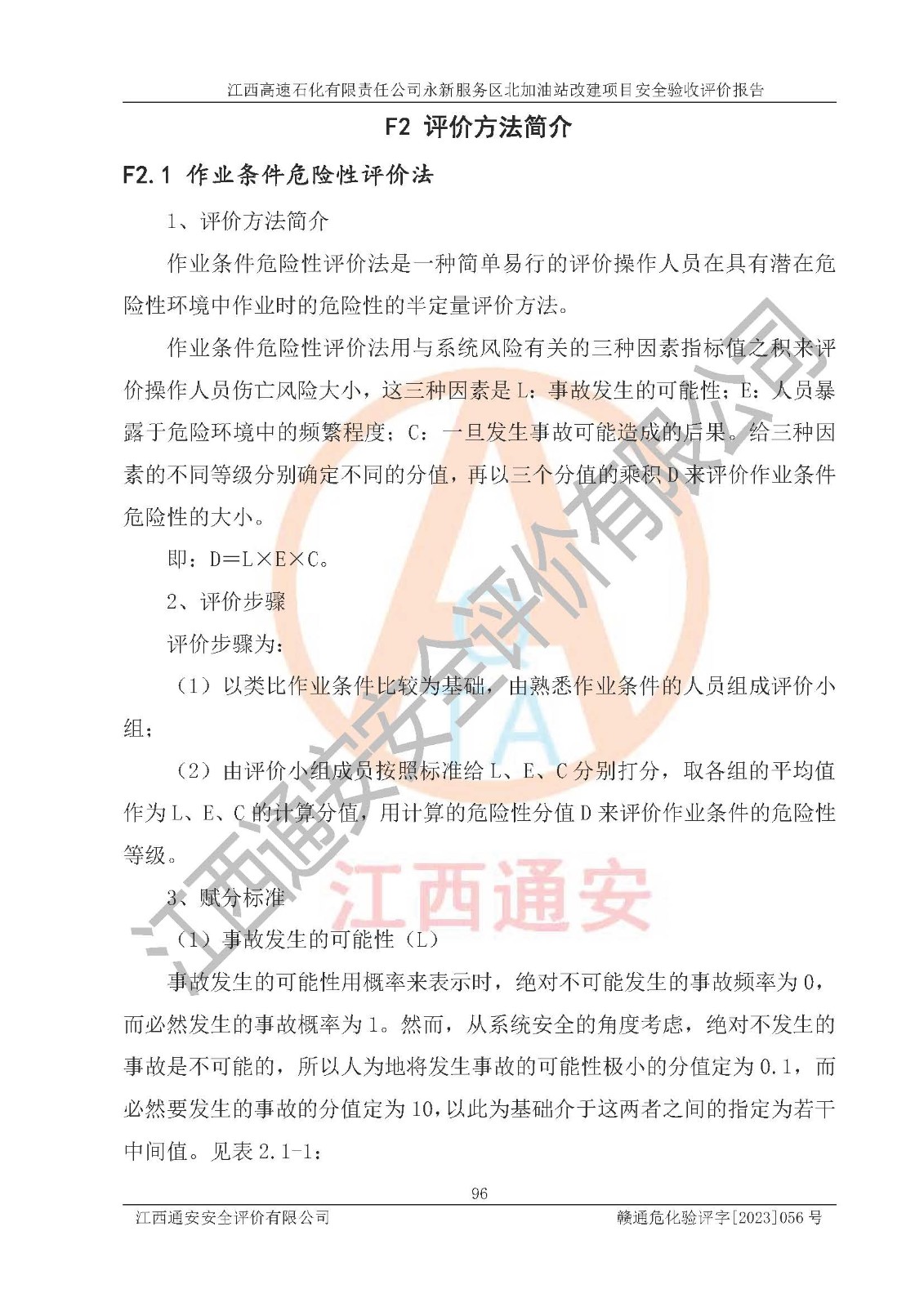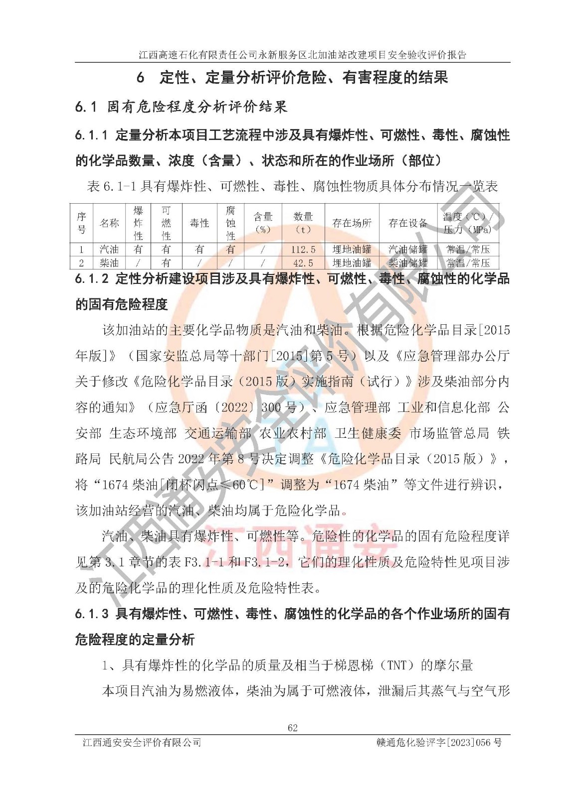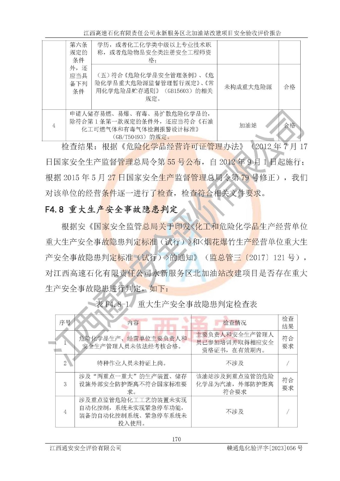项目名称 | 江西高速石化有限责任公司永新服务区北加油站改建项目安全验收评价报告 | ||||