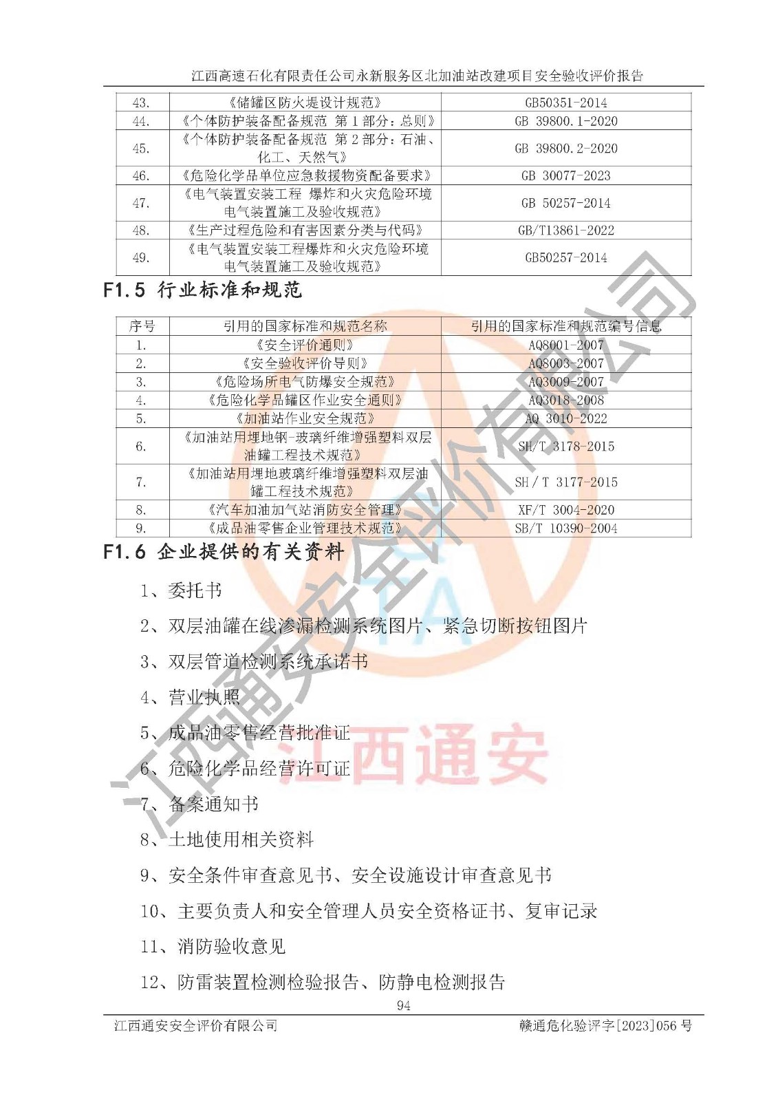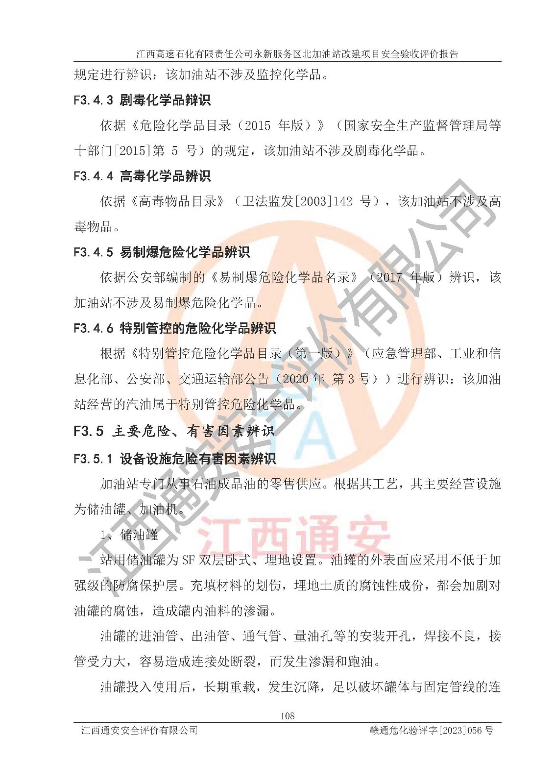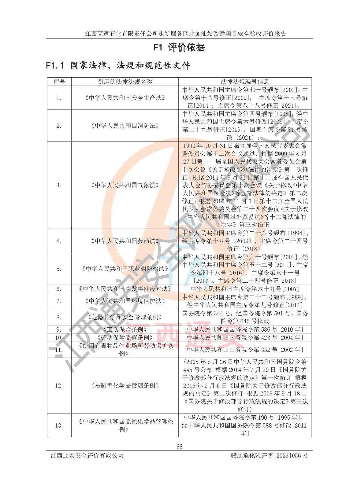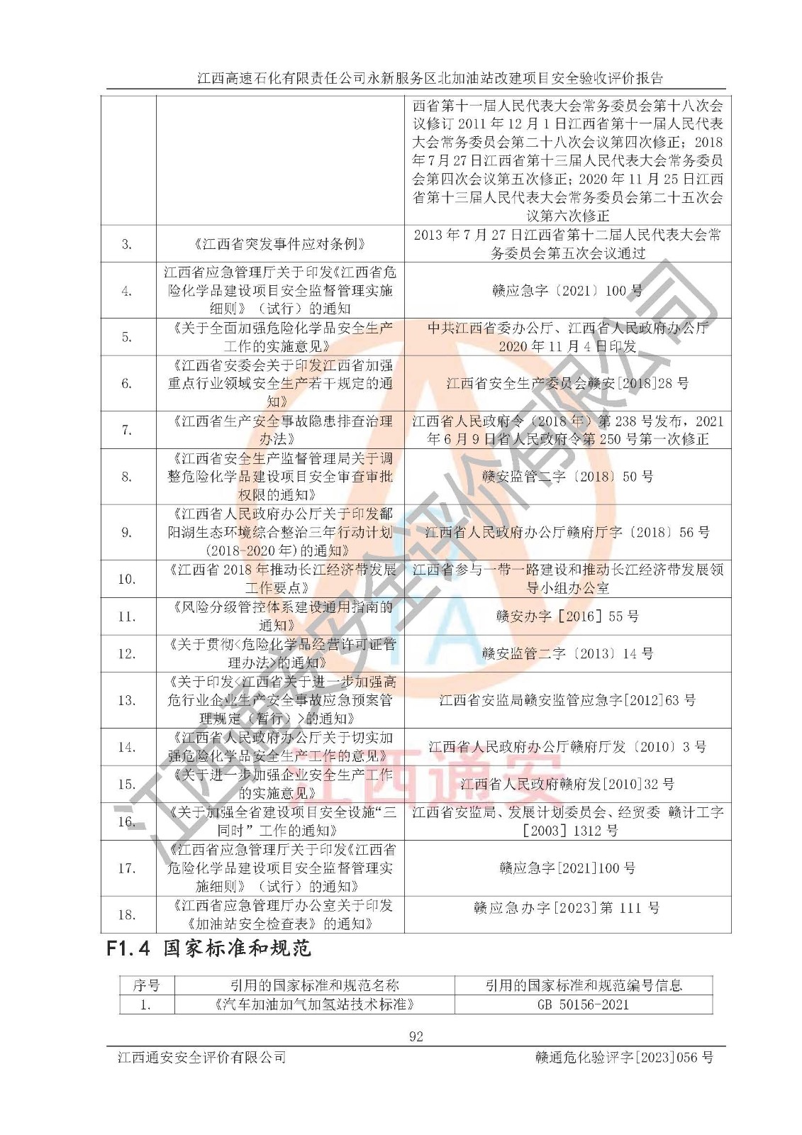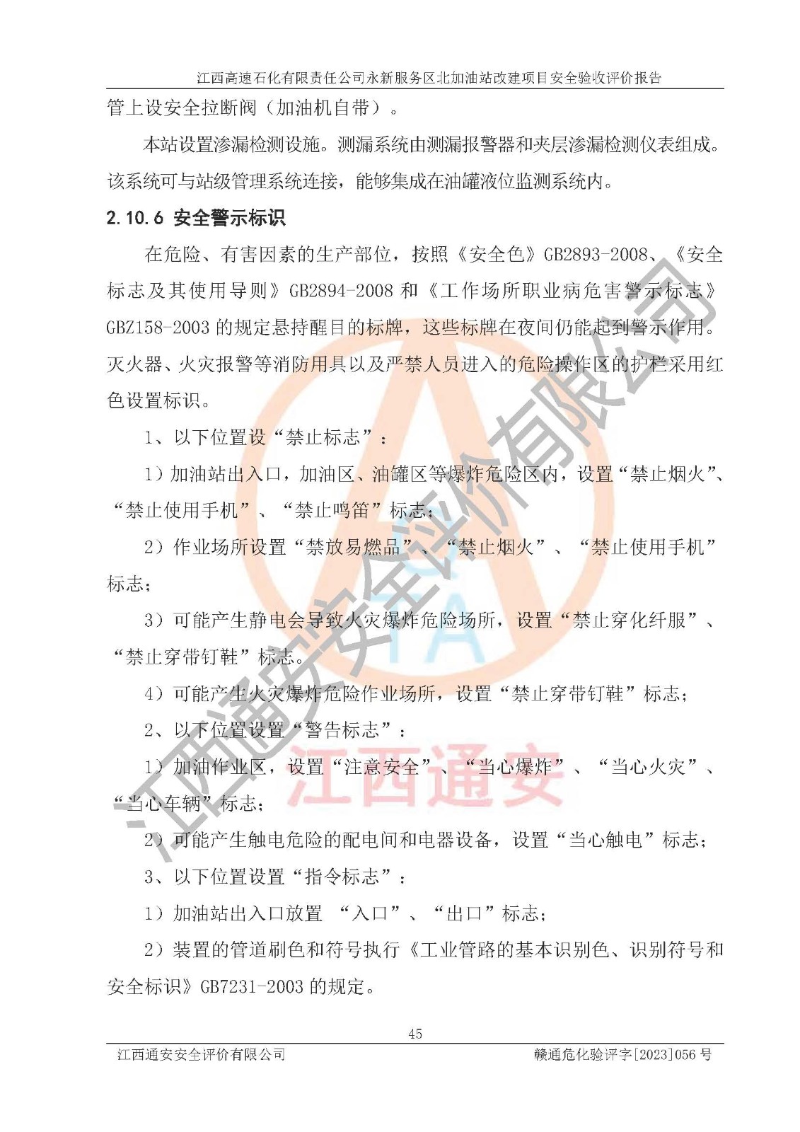 项目名称 | 江西高速石化有限责任公司永新服务区北加油站改建项目安全验收评价报告 | ||||