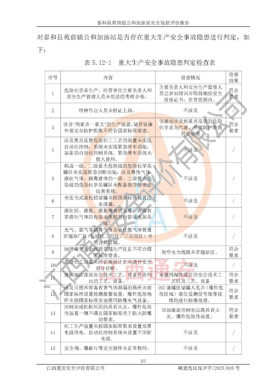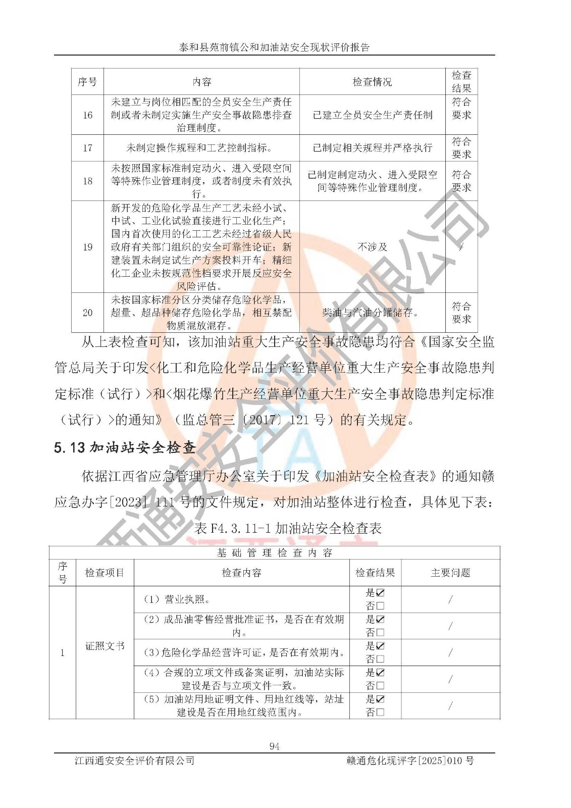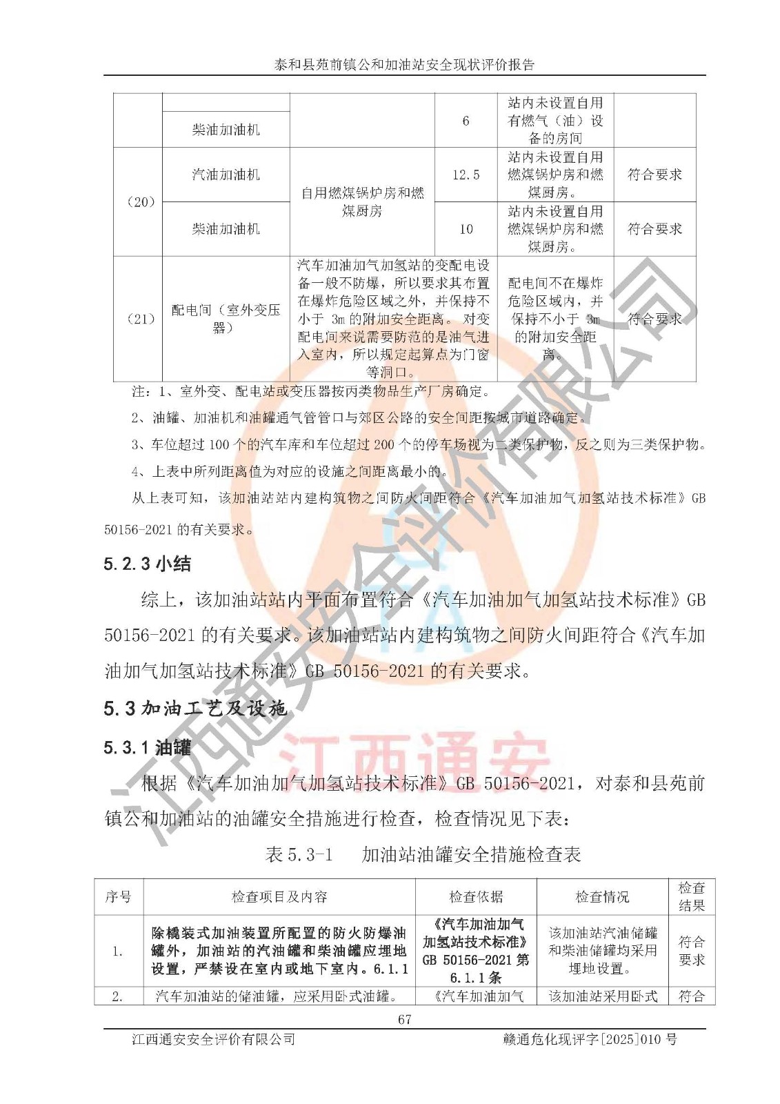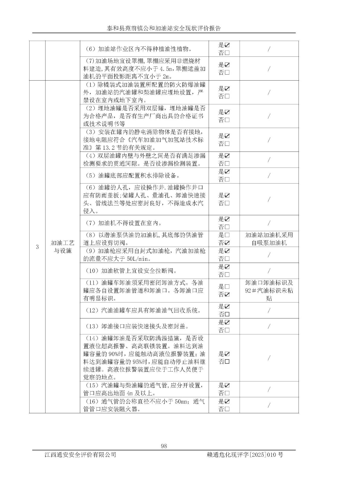 项目名称 | 泰和县苑前镇公和加油站安全现状评价报告 | ||||