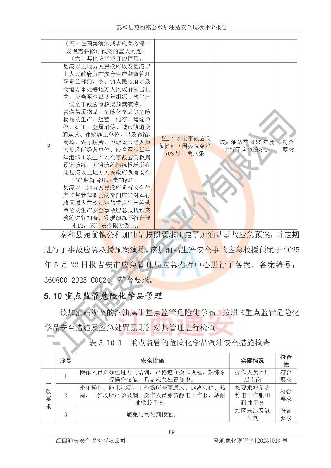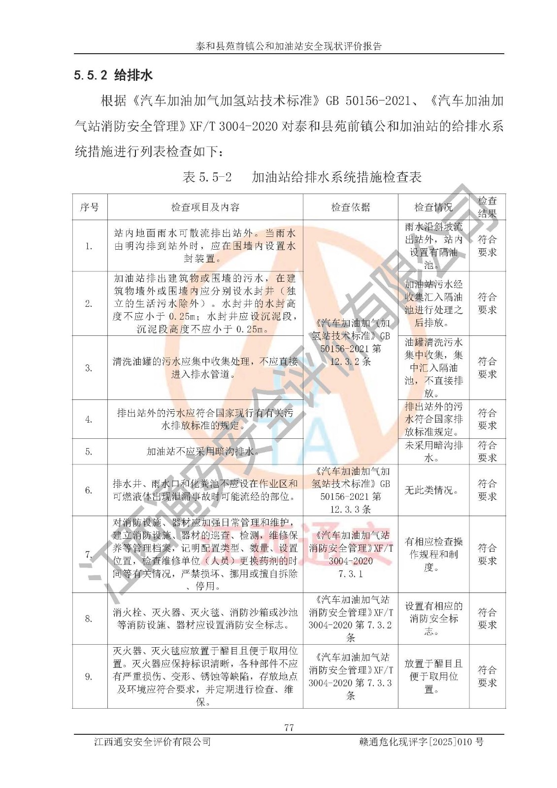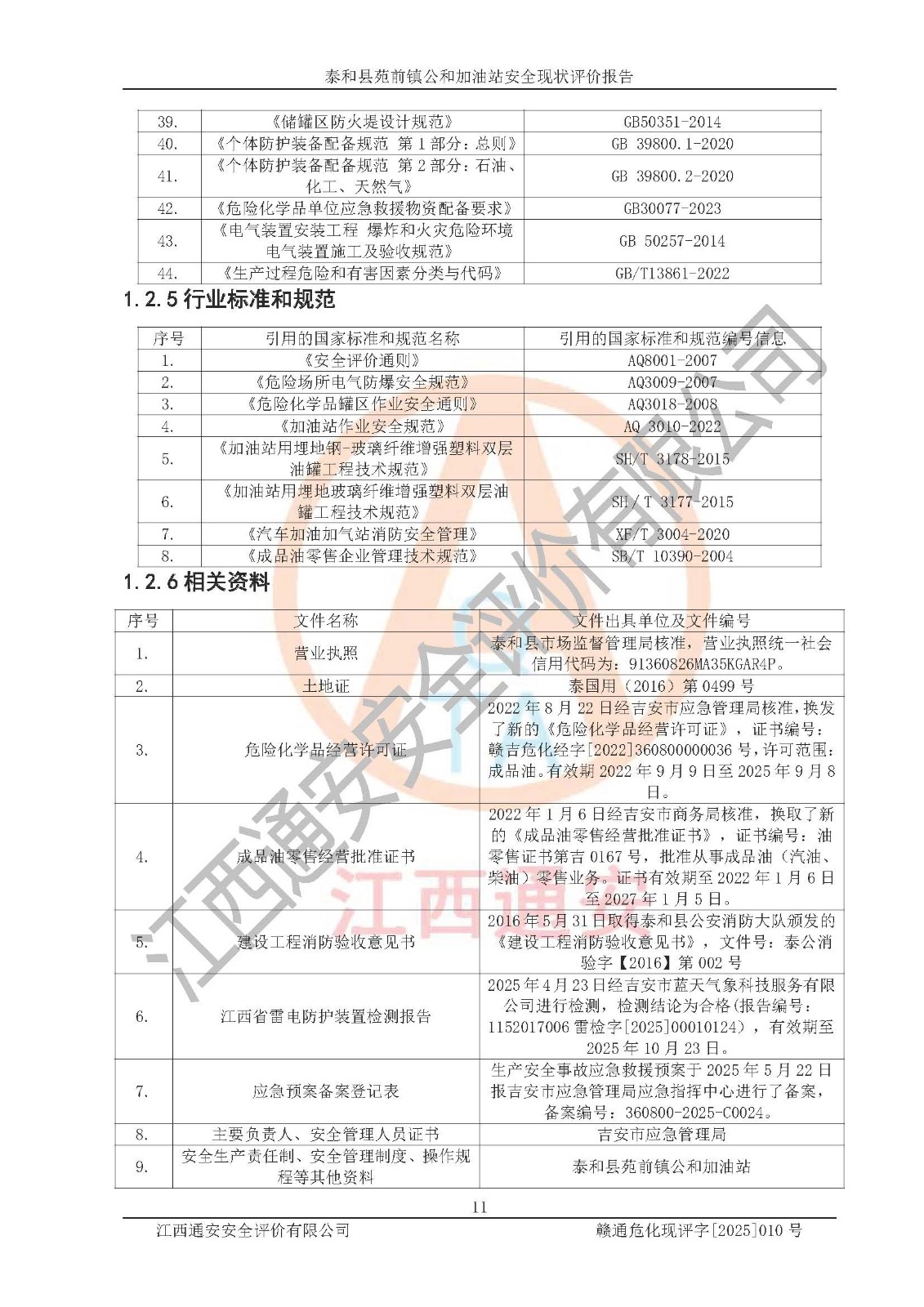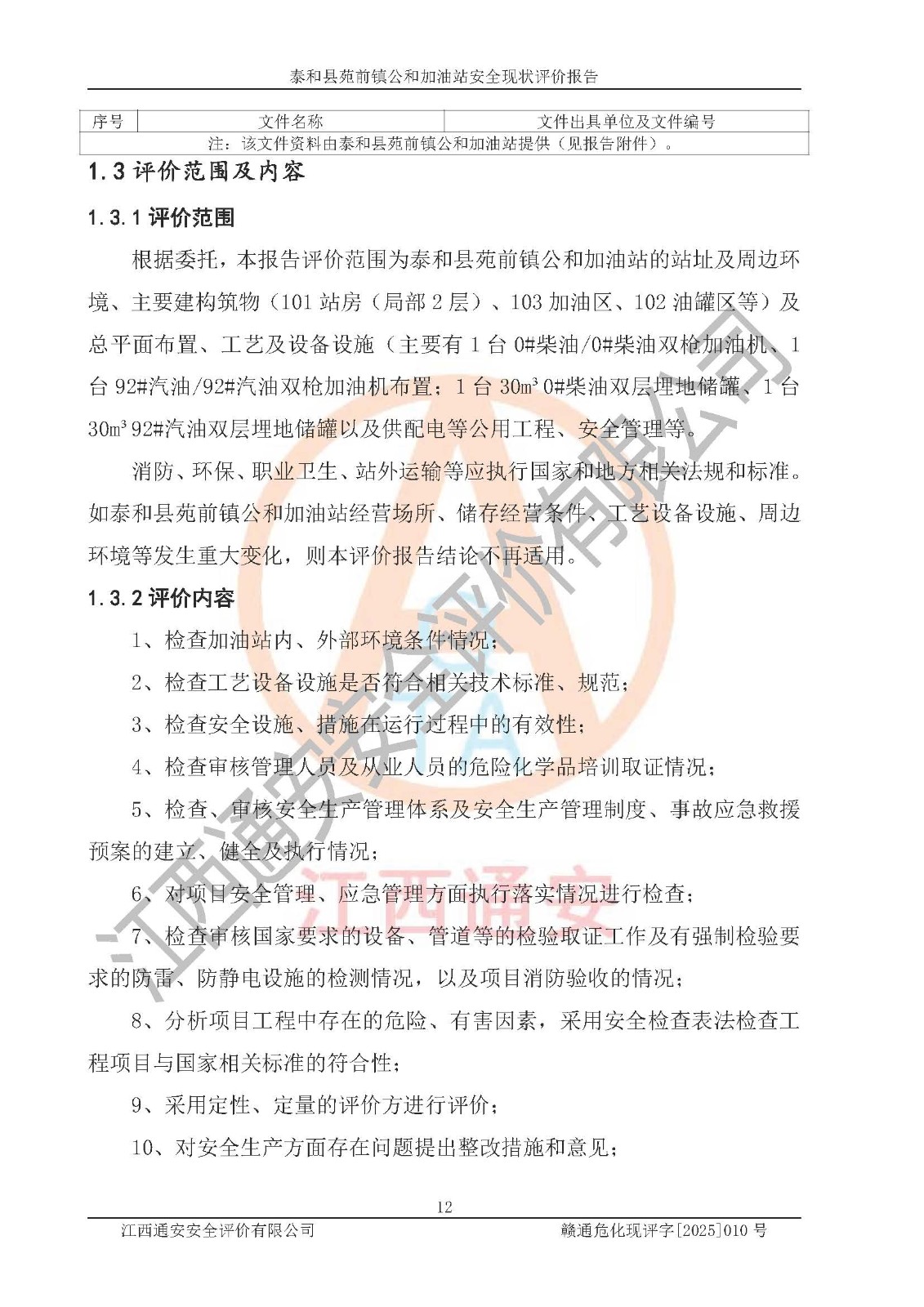 项目名称 | 泰和县苑前镇公和加油站安全现状评价报告 | ||||